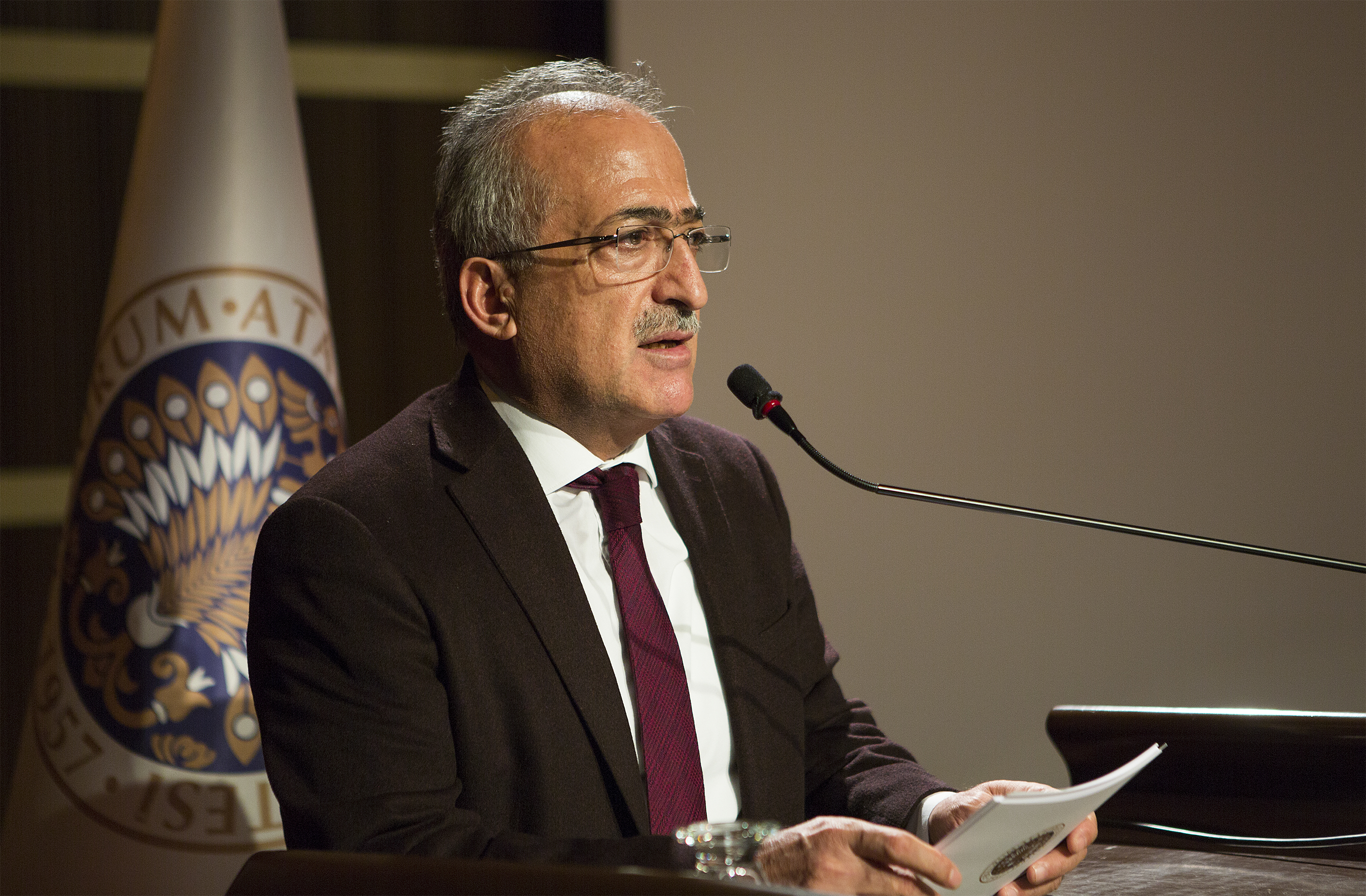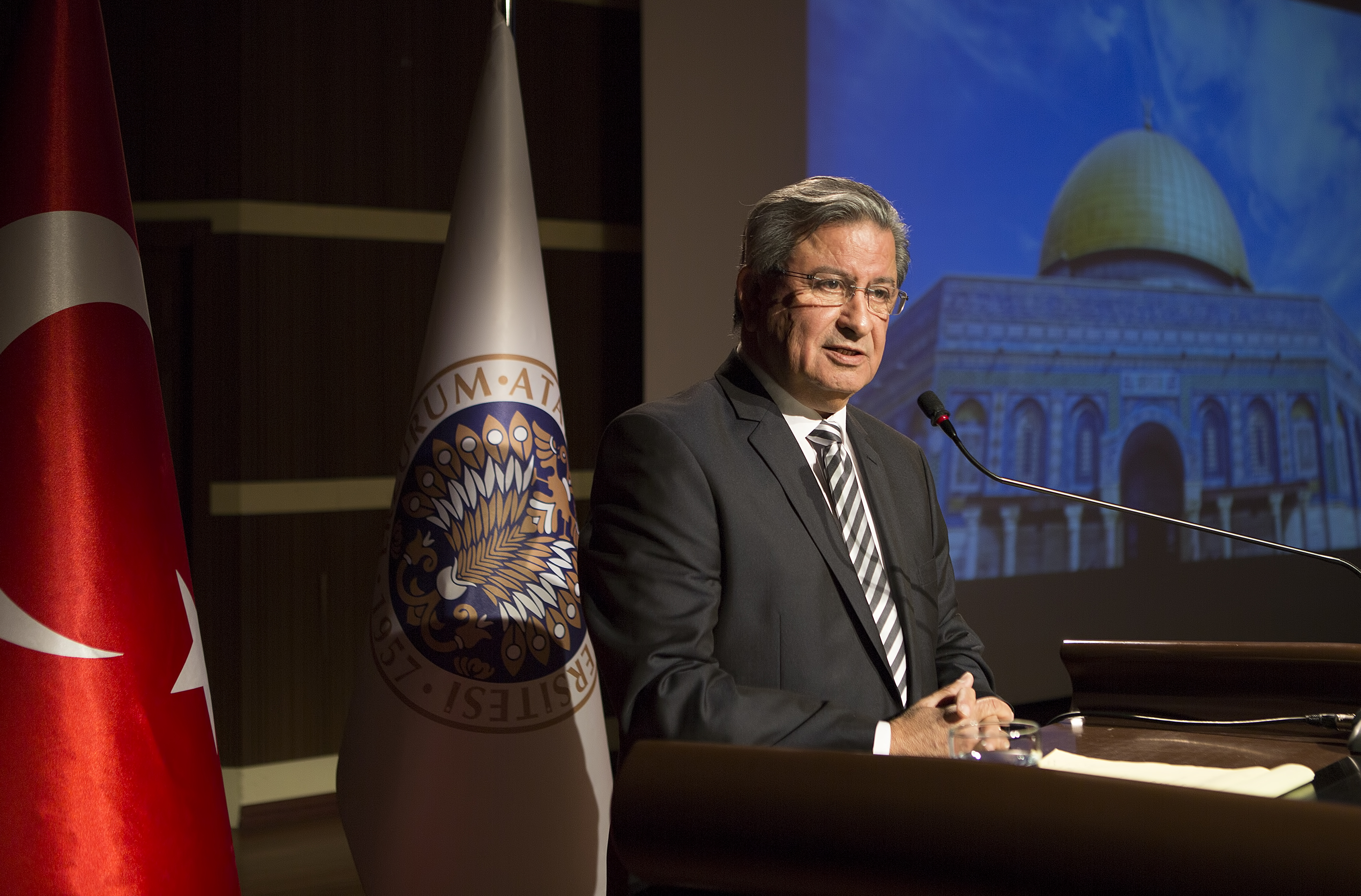Atatürk Üniversitesi Rektörü Prof. Dr. Ömer Çomaklı’nın davetlisi olarak Erzurum’a gelen Filistin Eski İstinaf Mahkemesi Başkanı Prof. Ahmad Natour tarafından verilen konferansa, Rektör Prof. Dr. Ömer Çomaklı, Erzurum Büyükşehir Belediye Başkanvekili Hüseyin Koçan, üniversite yönetimi, dekanlar, akademisyenler ve öğrenciler katıldı.