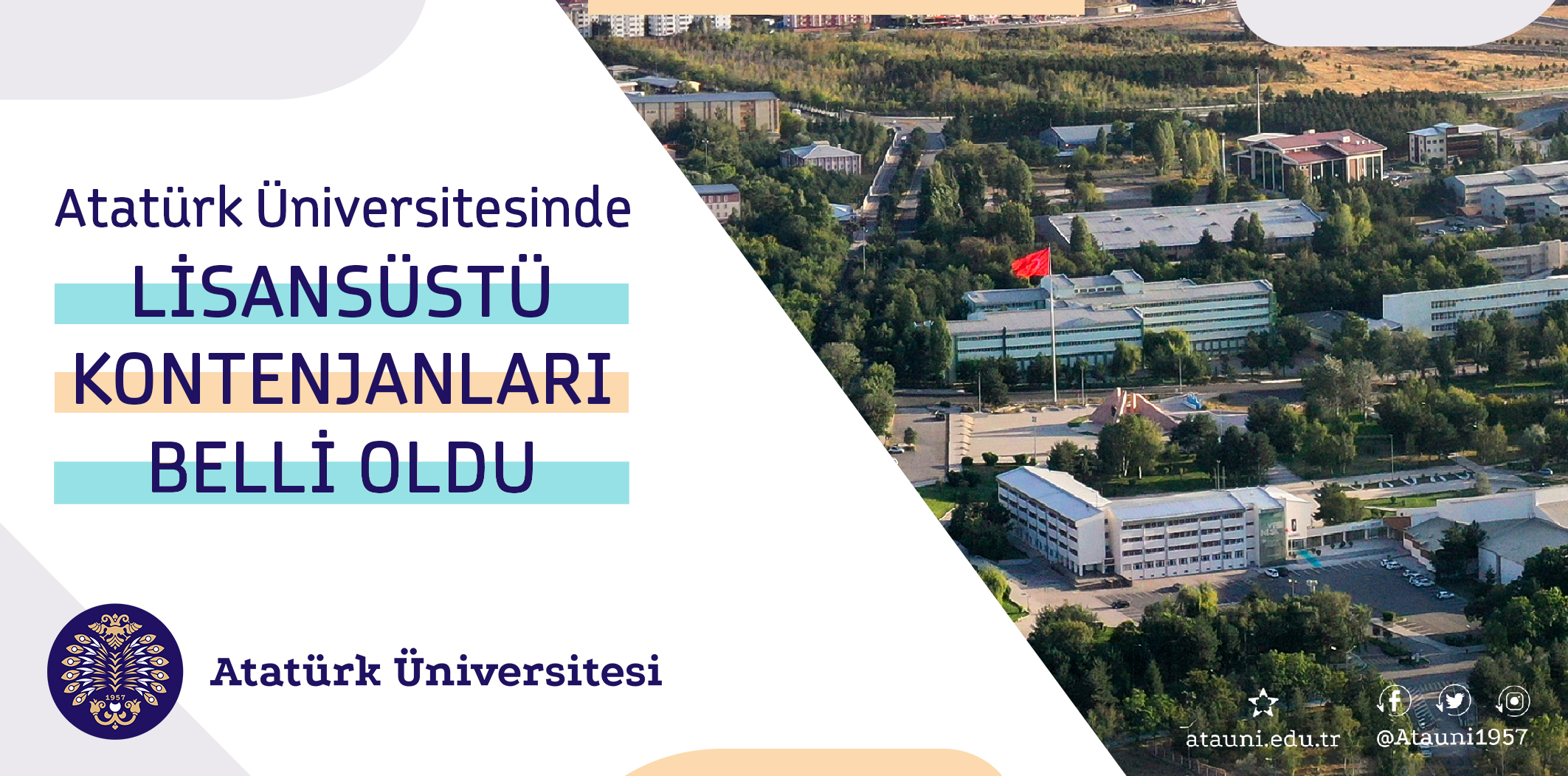 Akademik gelişmeyi önemseyen ve lisansüstü programlarla öğrencilerine akademik alanda ilerleme imkânı sunan; bu doğrultuda doktora, sanatta yeterlilik ile tezli ve tezsiz yüksek lisans düzeyinde eğitim görmek isteyen öğrencilere zengin ve nitelikli bir araştırma olanağı tanıyan Atatürk Üniversitesi, bu yıl tezli yüksek lisansa 4 bin 251, tezsiz yüksek lisansa 590, sanatta yeterliliğe 81 ve doktoraya ise 2 bin 386 olmak üzere toplamda 7 bin 308 öğrenci alacak.
