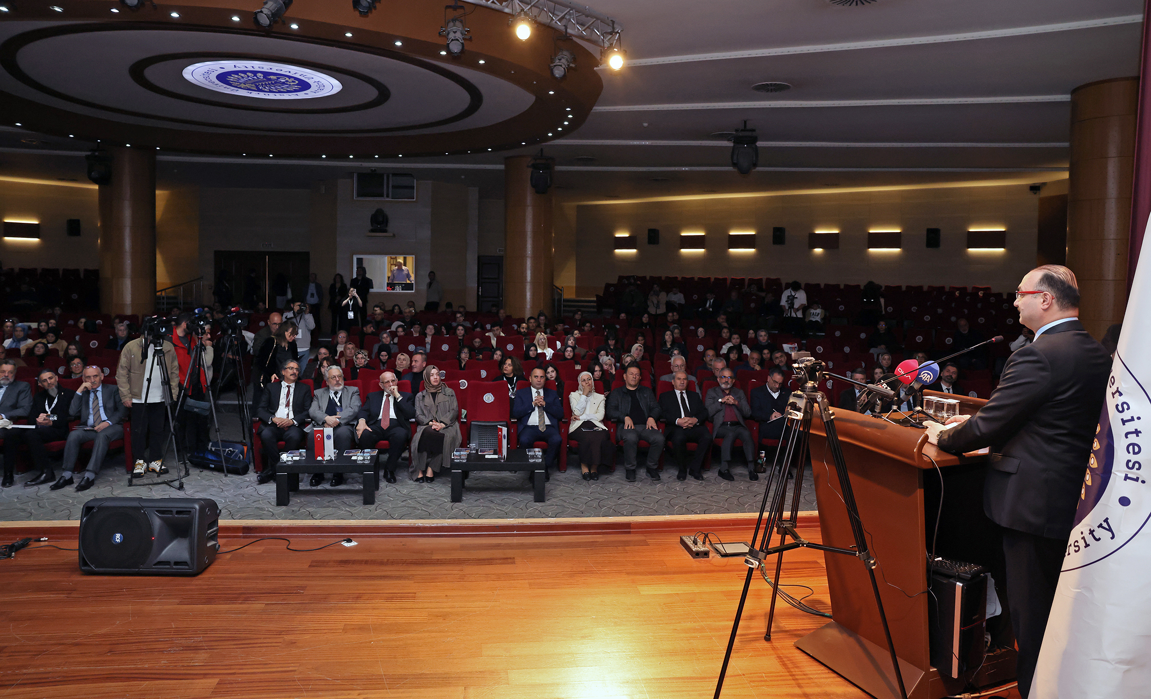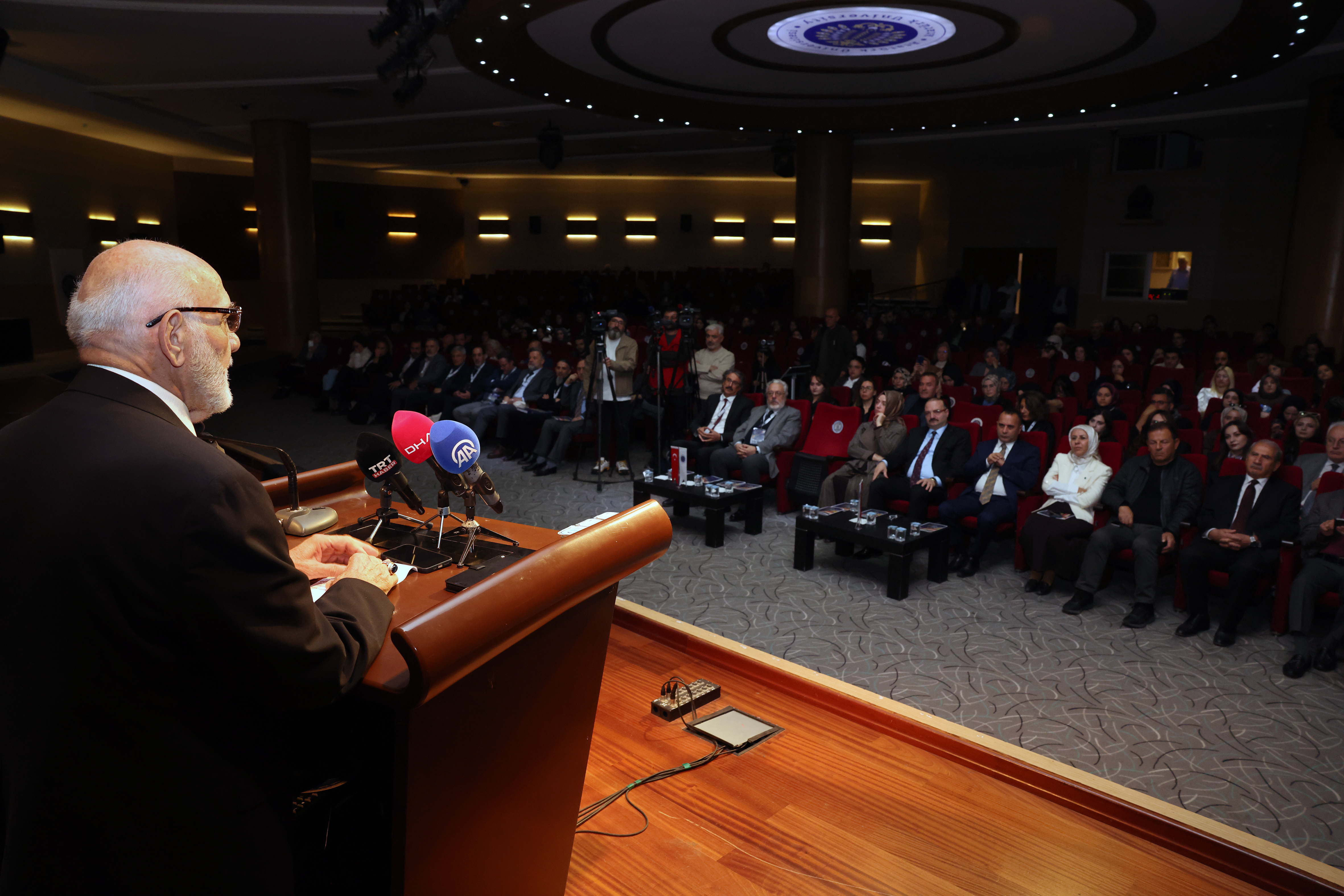 Açılışta konuşan Rektör Prof. Dr. Ahmet Hacımüftüoğlu, kongrenin “İslam’da sanatın anlamı” üzerine evrensel bir tartışma zemini oluşturduğunu belirterek: “İslam sadece bir inanç sistemi değil, aynı zamanda hayatı, güzelliği, hakikati ve estetiği kuşatan bir varlık tasavvurudur. Bu tasavvur, kimi zaman bir hat sanatında, kimi zaman cami avlularında yankılanan ezan sesinde kendini gösterir. Bu kongre, İslam sanatının geleceğe sözü olan dinamik bir bilinç alanı olduğunu ortaya koyacaktır” diye konuştu. Rektör Hacımüftüoğlu ayrıca, Filistin’de yaşanan insanlık dramına da değinerek, “Bu kongre sessizlerin sesi, yıkılan şehirlerin, yetim kalan çocukların dili ve hafızası olmalıdır” ifadelerini kullandı.