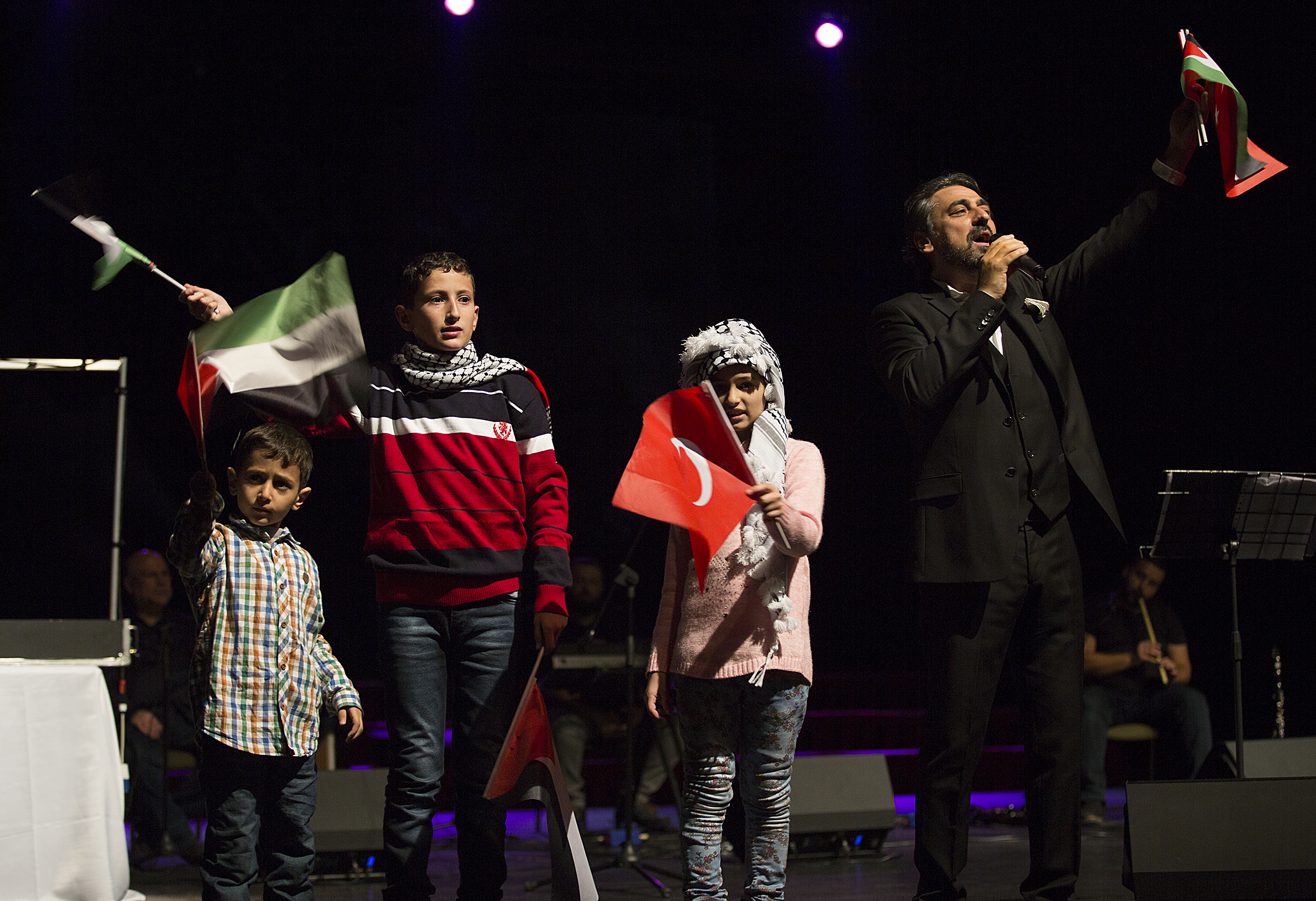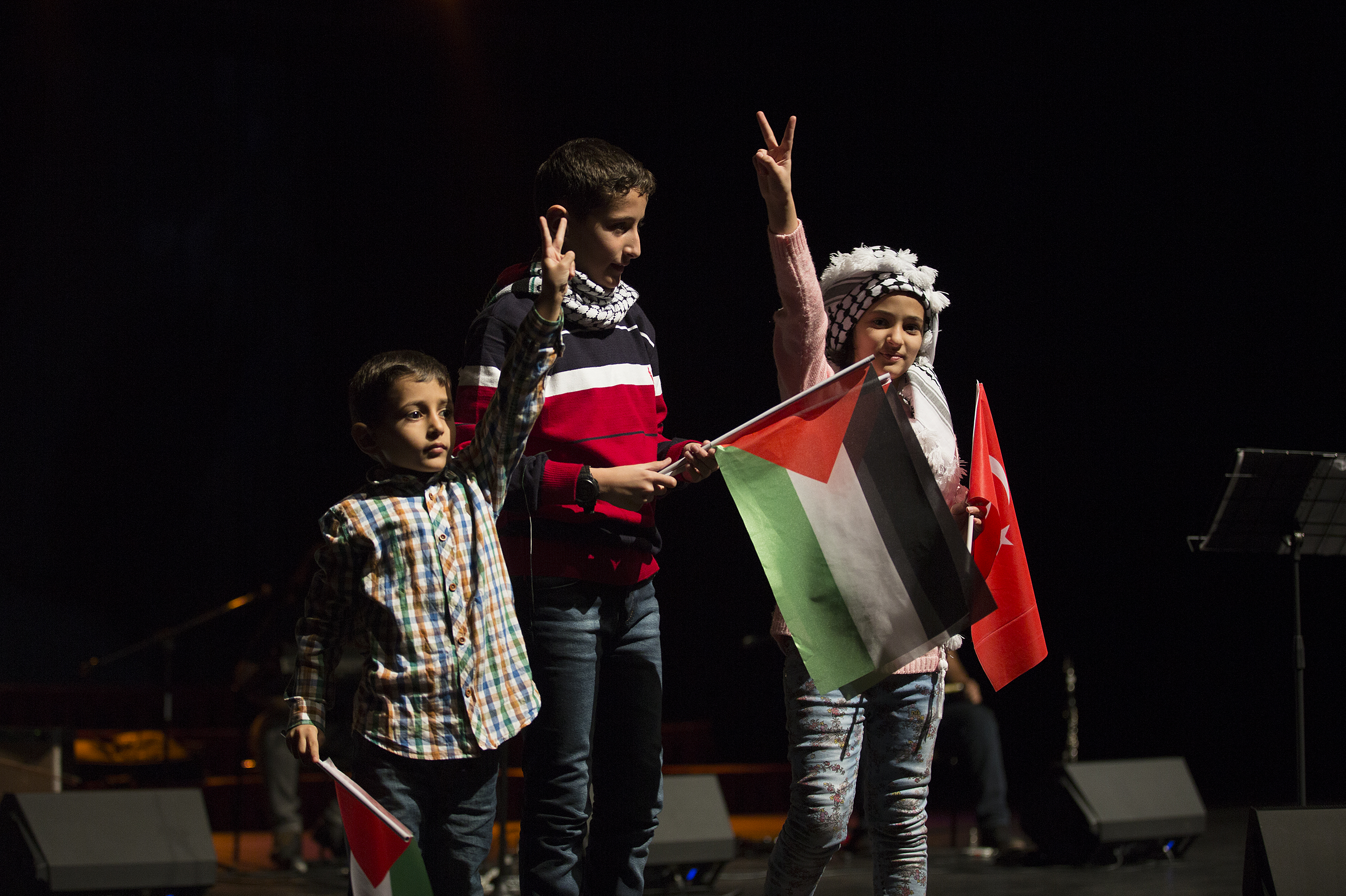 ‘Kutsal Emanet Kudüs’ programının son bölümde ise sahneye, Radyocu ve Müzisyen Eşref Ziya Terzi çıktı. Seslendirdiği ilahilerde Kudüs’ün manevi havasını salonda estiren Eşref Ziya, Filistinli bir aile ile ilahi okuyarak konuklara eşsiz bir dinleti sundu.
