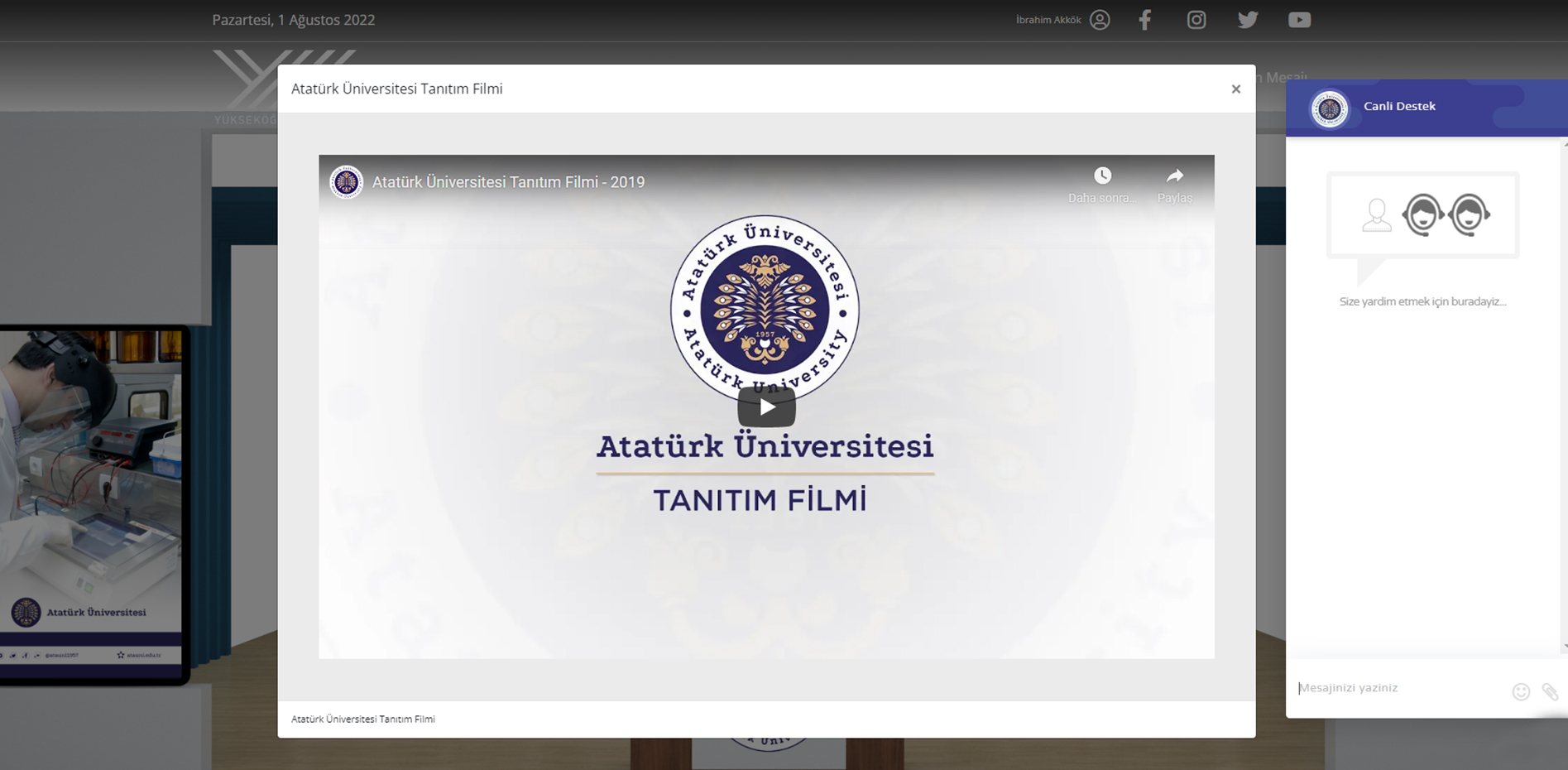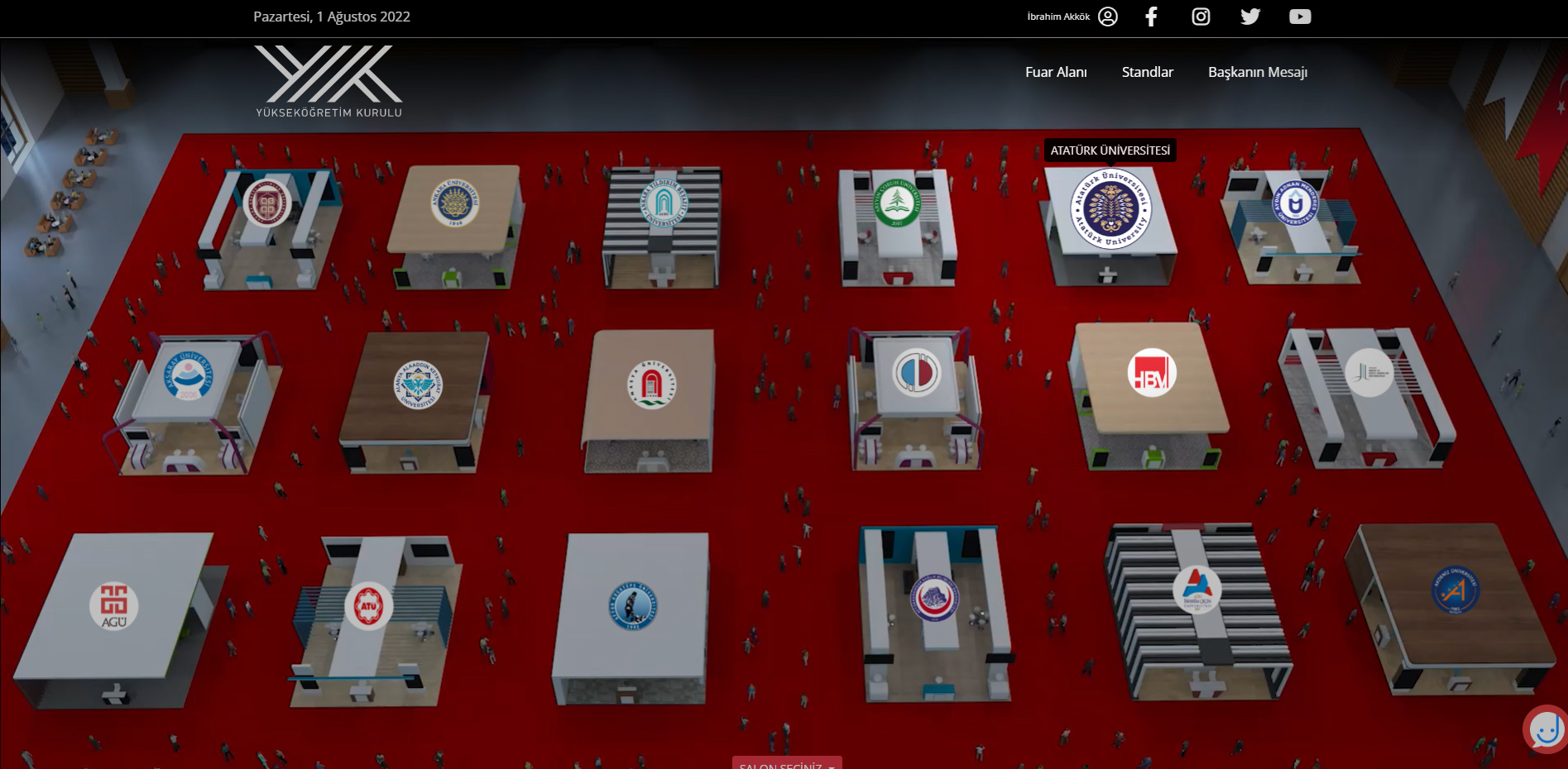 Yükseköğretim Kurulu (YÖK) tarafından, üniversite tercihi yapacak adaylar için süreci kolaylaştırmak amacıyla üniversitelerin ve programların tanıtılmasına yönelik olarak düzenlenen “Üniversiteni Keşfet YÖK Sanal Fuarı” başladı. Atatürk Üniversitesi de aday öğrencilere yönelik fakülte ve birimlerin tanıtımını yapmak üzere fuardaki yerini aldı.