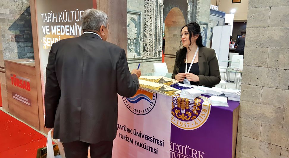 Öte yandan Atatürk Üniversitesi’ni dört gün boyunca temsil eden Turizm Fakültesi, farklı dillerde yaptığı tanıtımlarla büyük beğeni topladı. Atatürk Üniversitesi’nin tarihi, eğitim-öğretim faaliyetlerinin yanı sıra sportif, sosyal ve kültürel imkânları hakkında da standı ziyaret edenlere bilgiler verildi.