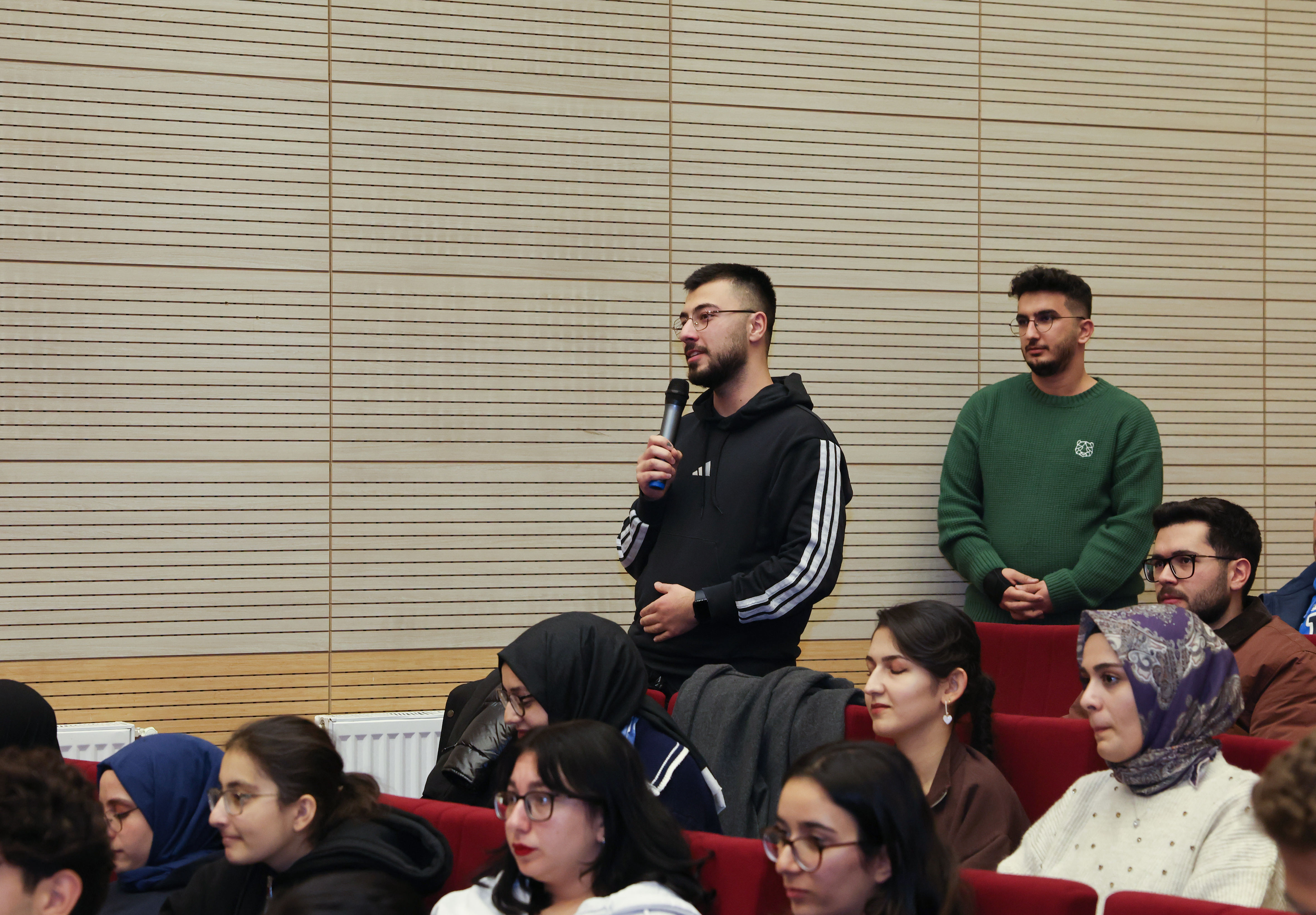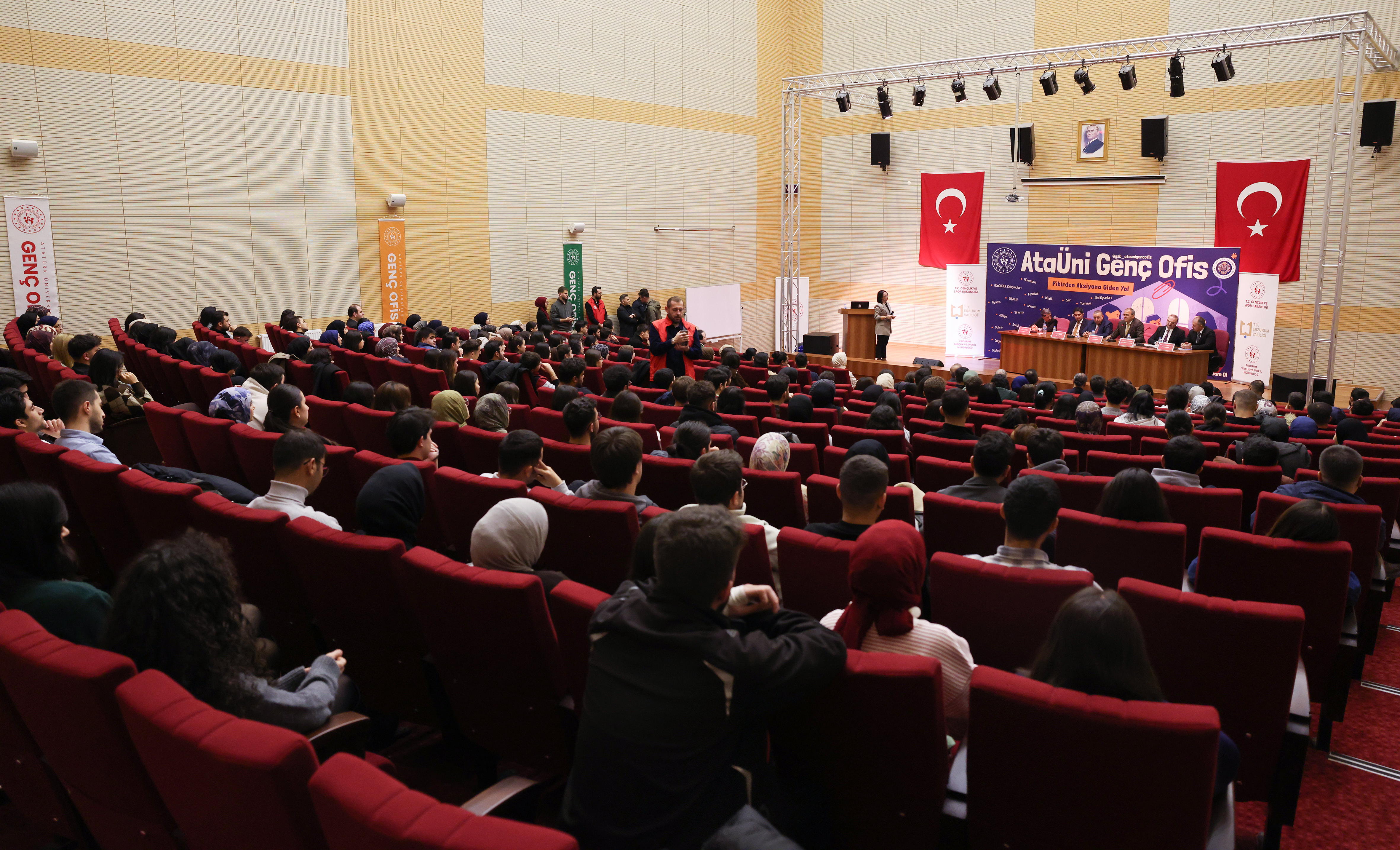 Soru-cevap bölümüyle devam eden etkinlik, öğrencilerin yoğun ilgisi ve aktif katılımıyla sona ererken, AtaÜni Genç Ofis çatısı altında gerçekleştirilen bu tür programların, gençlerin fikirlerini eyleme dönüştürme süreçlerinde önemli bir rol üstlendiği vurgulandı.