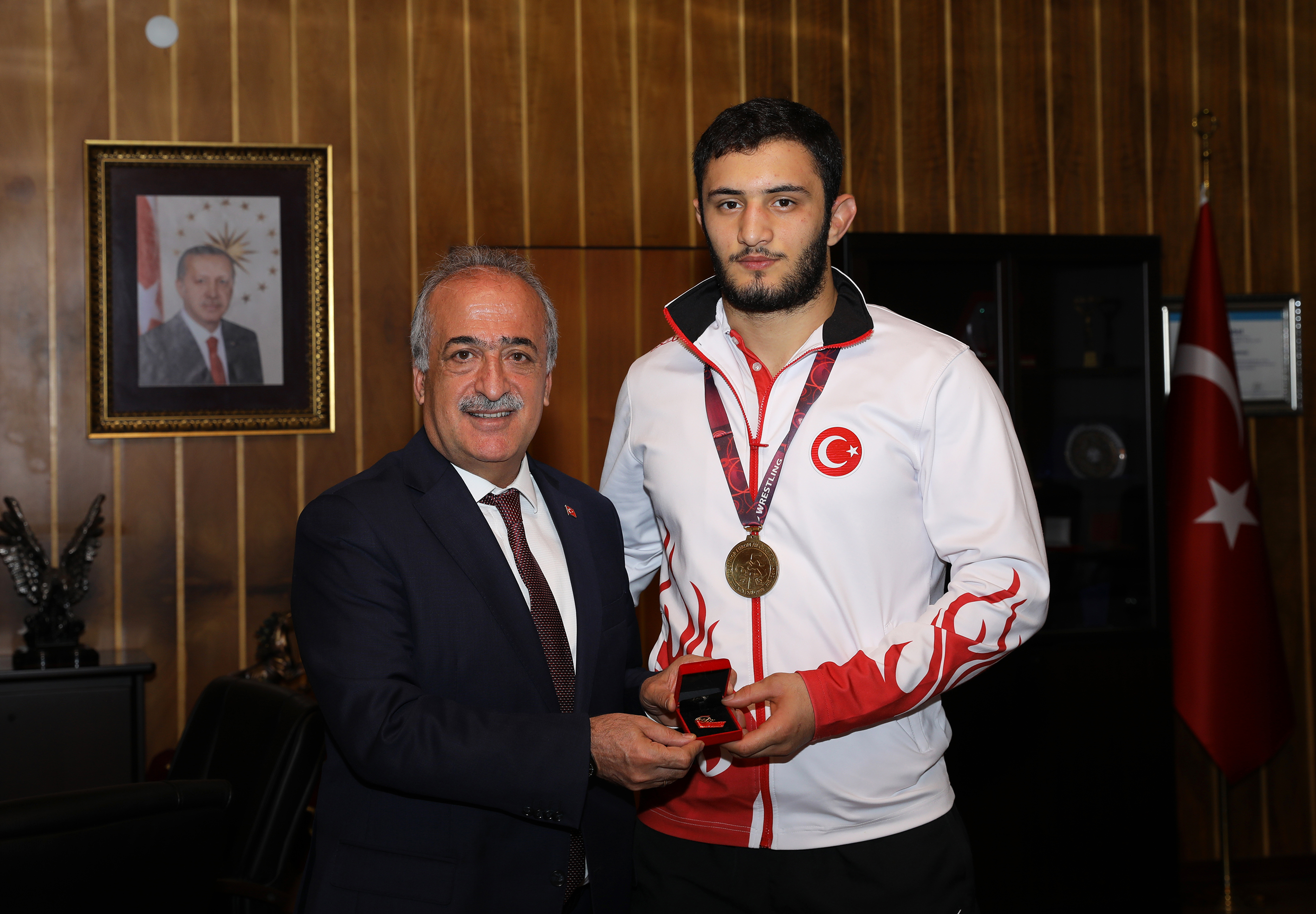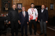 Ziyaret, Rektör Çomaklı’nın Avrupa Şampiyonu olan İbrahim Çitfçi’ye altın hediye etmesiyle son buldu.