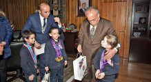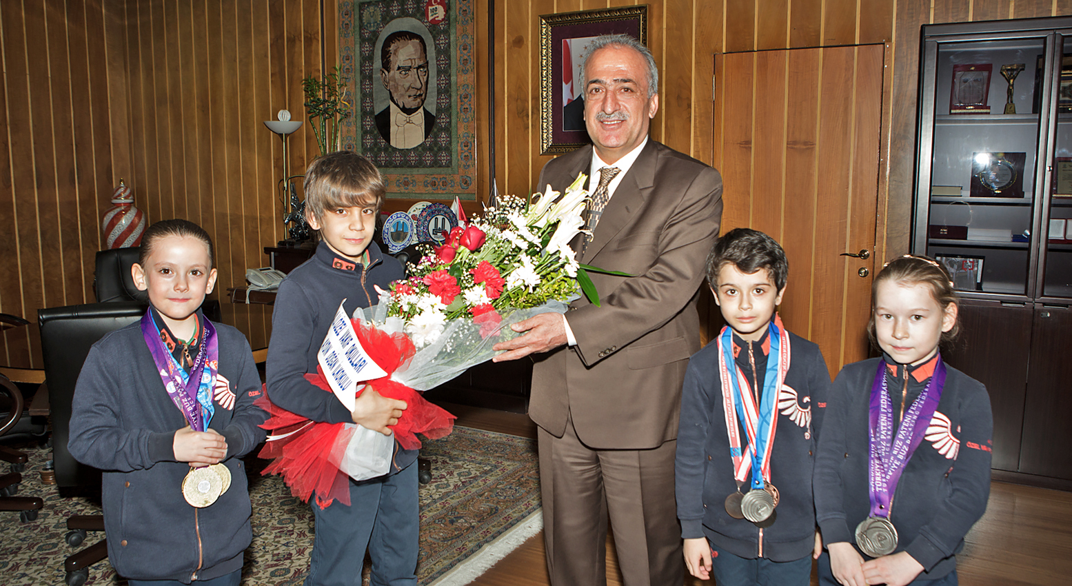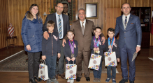Minik sporcular; elde ettikleri başarılı sonuçlardan dolayı kendilerine çeşitli hediyeler veren Rektör Çomaklı ile hatıra fotoğrafı çekilmeyi de ihmal etmedi.