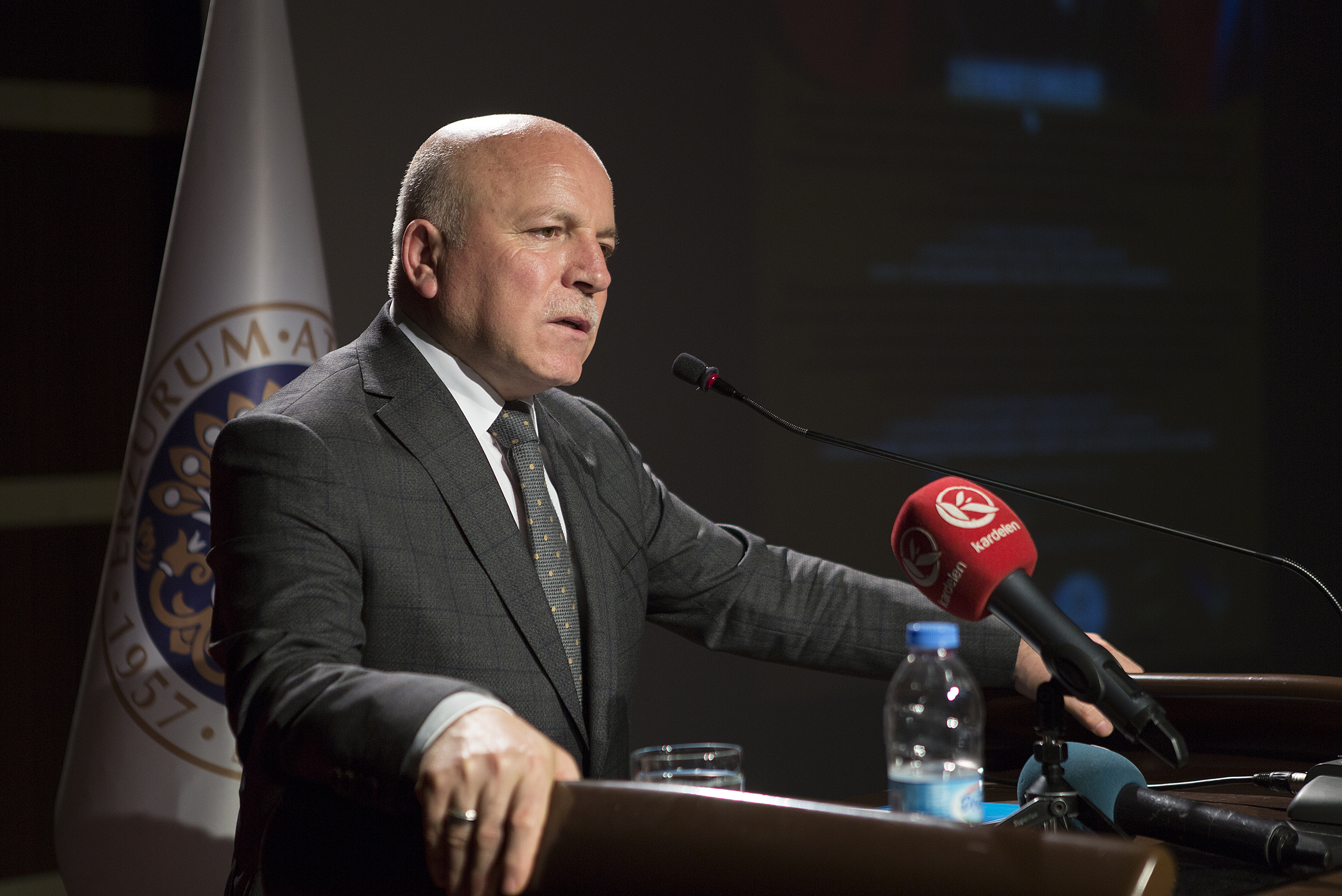 Sergi açılışının ardından konuşmasını yapmak üzere kürsüye çıkan Atatürk Üniversitesi Rektörü Prof. Dr. Ömer Çomaklı, Azerbaycan’da ve Türk dünyasında çok önemli bir yer edinmiş değerli devlet adamı Haydar Aliyev adına düzenlenen toplantının bir ayağının da Üniversitemizde gerçekleştiriliyor olmasından mutluluk duyduğunu dile getirdi.