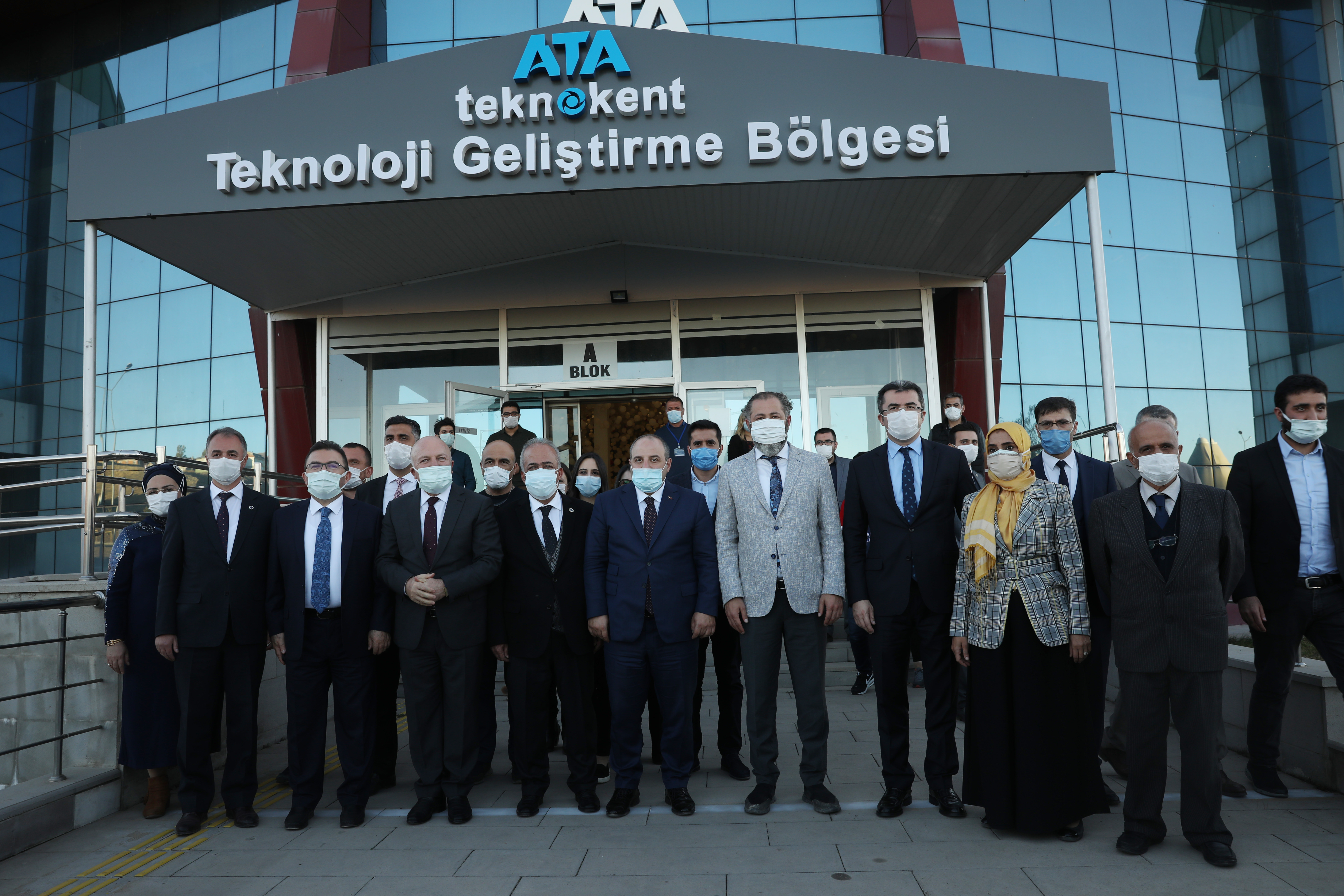 Atatürk Üniversitesi ziyaretinin sonunda ATA TEKNOKENT’e gelen Bakan Mustafa Varank, burada TEKNOKENT’te üretim yapan firmalarla bir araya geldi. TEKNOKENT Genel Müdürü Doç. Dr. Ersin Karaman’ın eşlik ettiği Bakan Varank, firma temsilcileri ve teknolojik çalışma yapan Atatürk Üniversitesi öğrencilerinin çalışmalarını inceledi. Gerçekleştirilen proje ve çalışmaları ilgiyle takip eden Bakan Varank, kullanıma sunulan birçok projenin desteklenerek daha da geliştirilebileceğini söyledi.