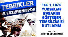 TFF 1. Lig'e yükselme başarısı gösteren temsilcimiz BB Erzurumspor'u tebrik eder başarılarının devamını dilerim.