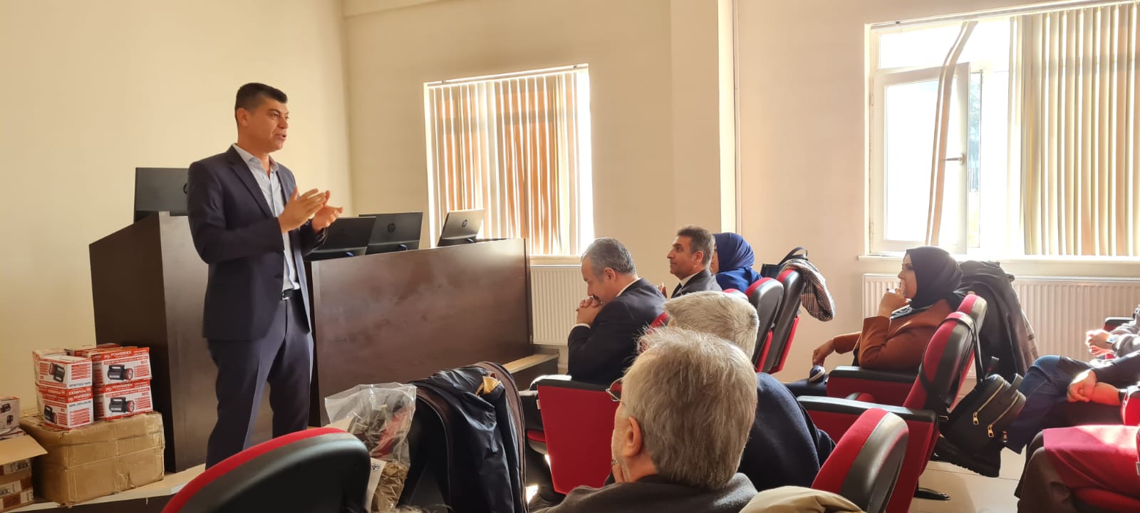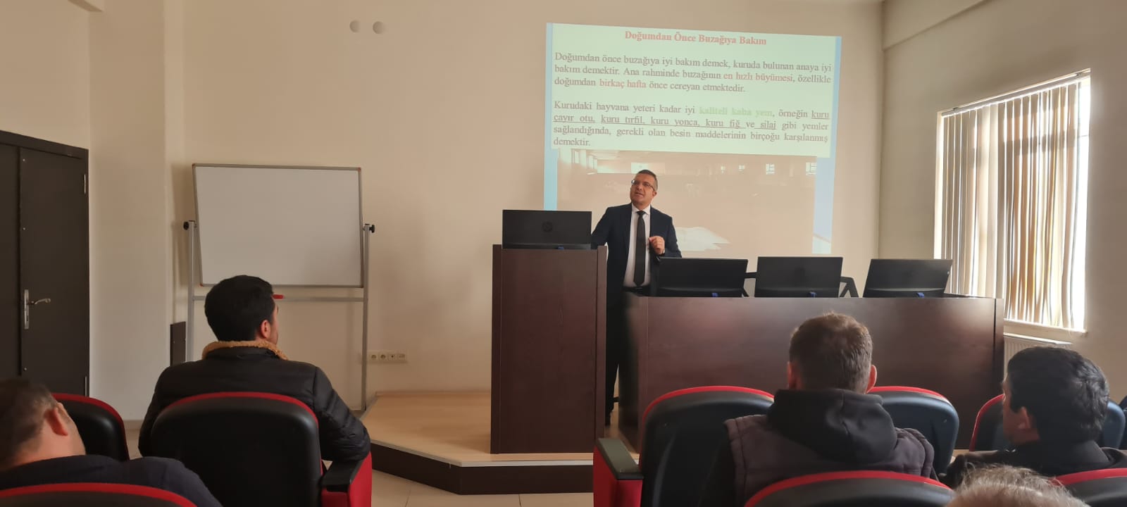 Eğitimin son etabında ilçe ve mahalle muhtarlarına “Büyükbaş Hayvan Yetiştiriciliğinde Barınaklar, Hayvan Besleme, Büyükbaş Hayvan Yetiştiriciliğinde Yem Bitkilerinin Önemi, Hayvan Hastalıkları, Kompost Yapımı ve Kullanım Alanları ile Tarımsal Destek ve Hibeler” konularında bilgiler verilerek Veteriner Fakültesi Hayvan Hastanesi de ziyaret edildi.