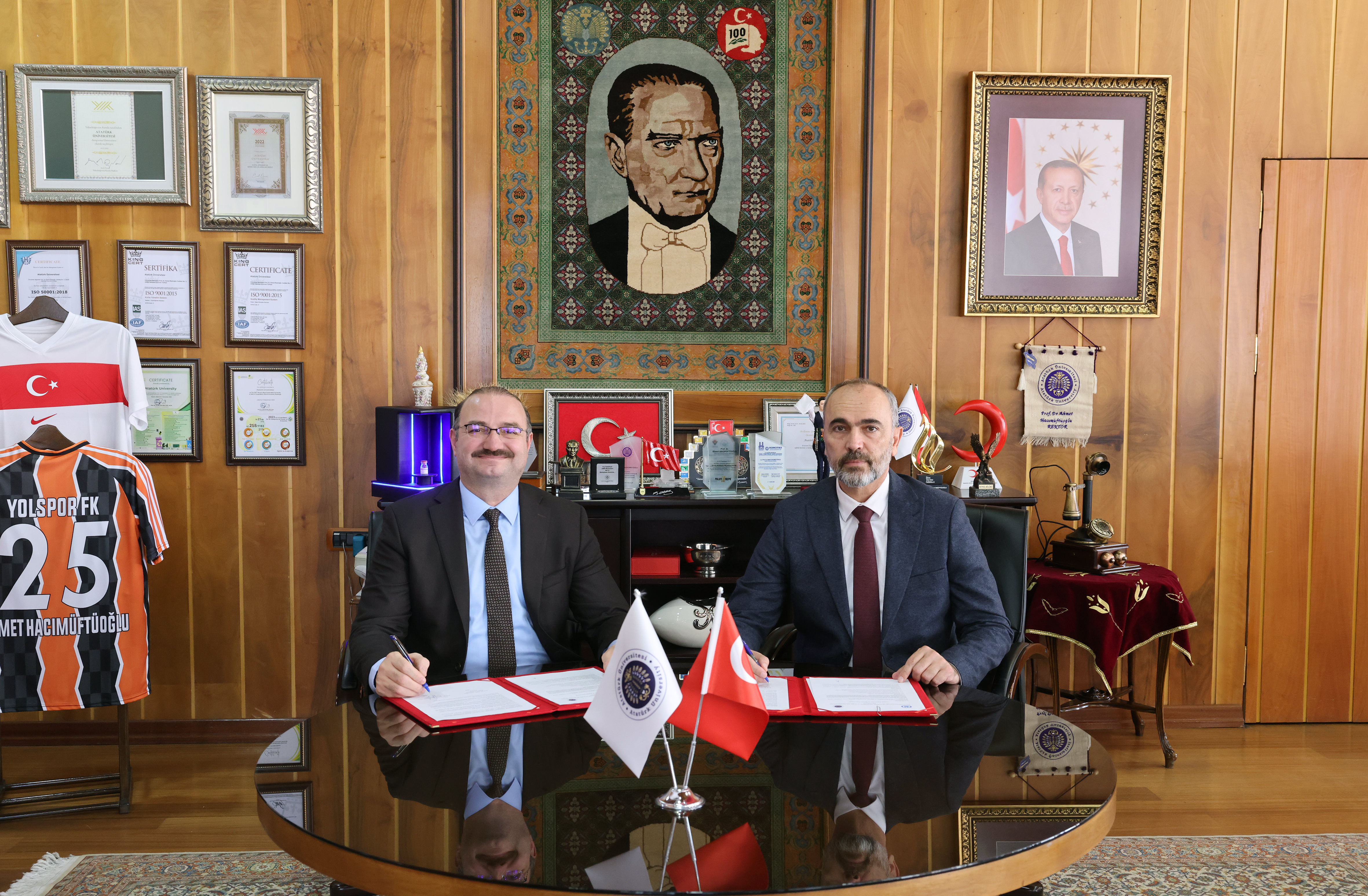 Atatürk Üniversitesi Rektörü Prof. Dr. Ahmet Hacımüftüoğlu’nun ev sahipliğinde; Erzurum Teknik Üniversitesi Rektörü Prof. Dr. Bülent Çakmak ile Bayburt Üniversitesi Rektörü Prof. Dr. Mutlu Türkmen’in katılımıyla imzalanan bu stratejik protokol; araştırma kapasitesinin güçlendirilmesi, akademik iş birliklerinin artırılması, ortak projelerin teşvik edilmesi ve bilimsel çıktıların ulusal ve uluslararası düzeyde görünürlüğünün artırılmasını hedefliyor.
