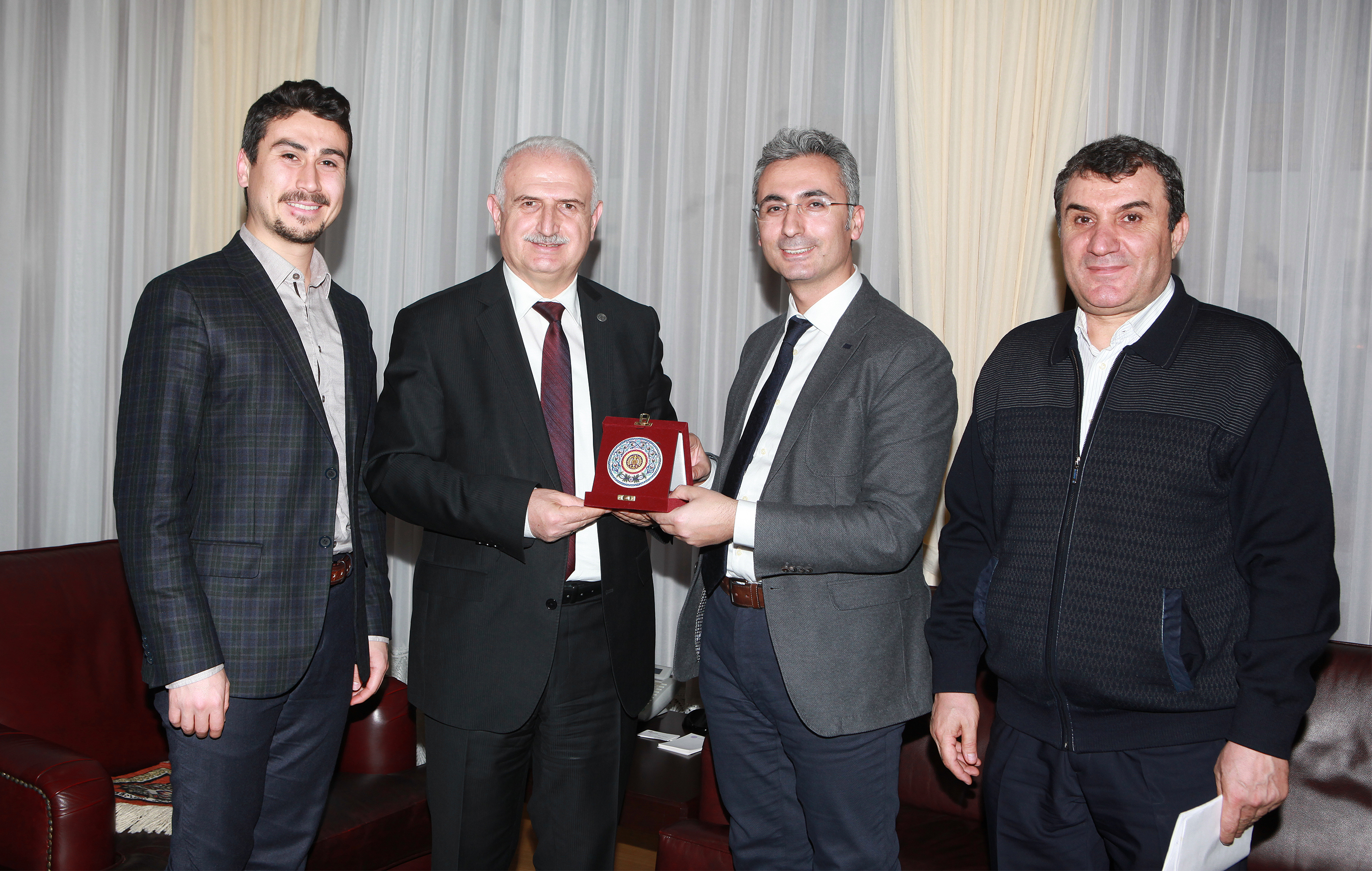 ATA Teknokent Yönetim Kurulu Başkanı Prof. Dr. Recep Sadeler nezaretinde ATA Teknokent firmaları ile yapılan ziyaretten sonra misafirler, Üniversitemiz Rektörü Sayın Prof. Dr. Hikmet Koçak’ı makamında ziyaret ederek konu hakkında değerlendirmede bulundular.