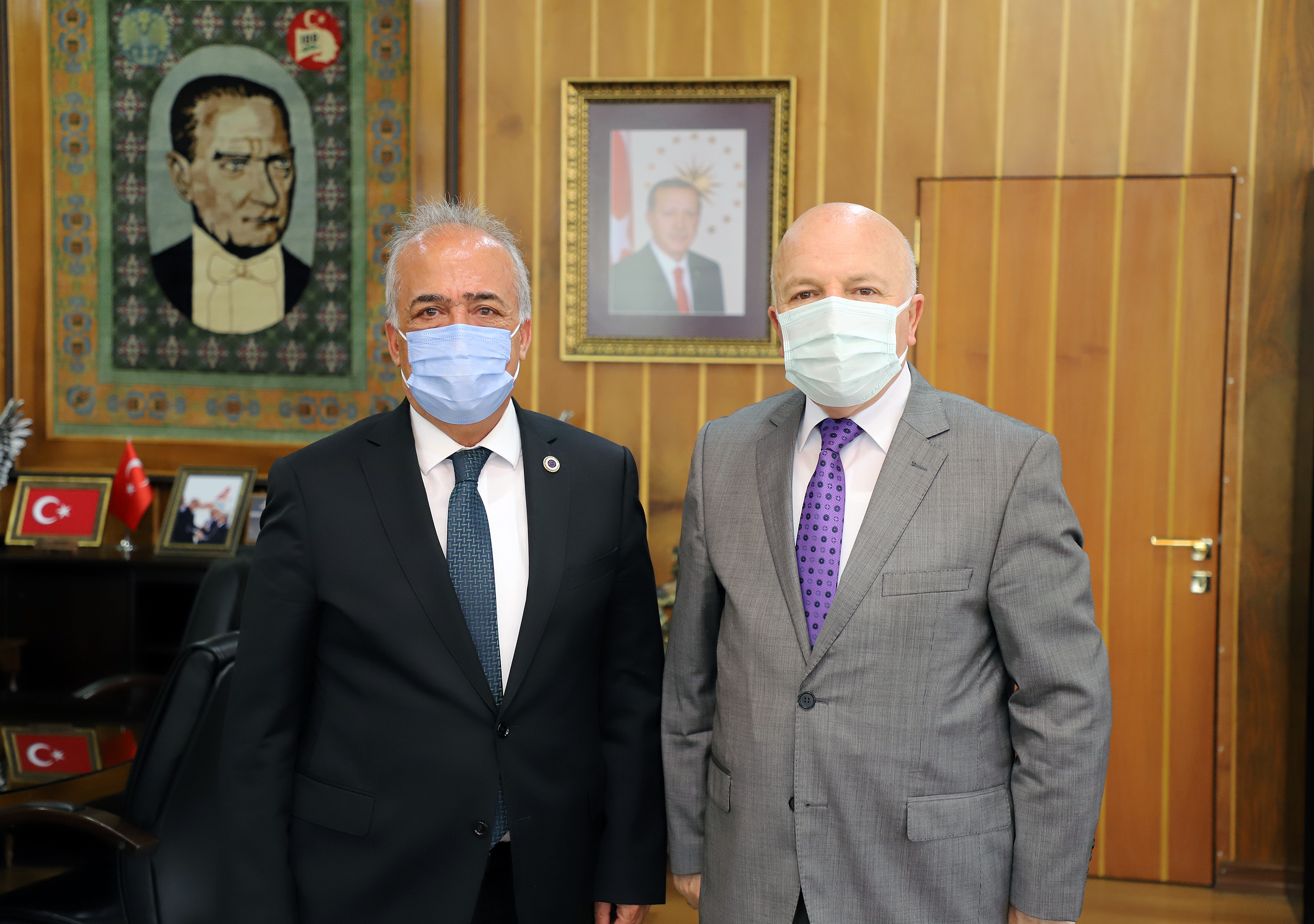 Erzurum Büyükşehir Belediyesi Başkanı Mehmet Sekmen kurumların Erzurum için hayata geçirdikleri çalışmaları gözden geçirmek ve yeni oluşturulacak projeler hakkında görüş alışverişinde bulunmak üzere, Atatürk Üniversitesi Rektörü Prof. Dr. Ömer Çomaklı'yı ziyaret etti.