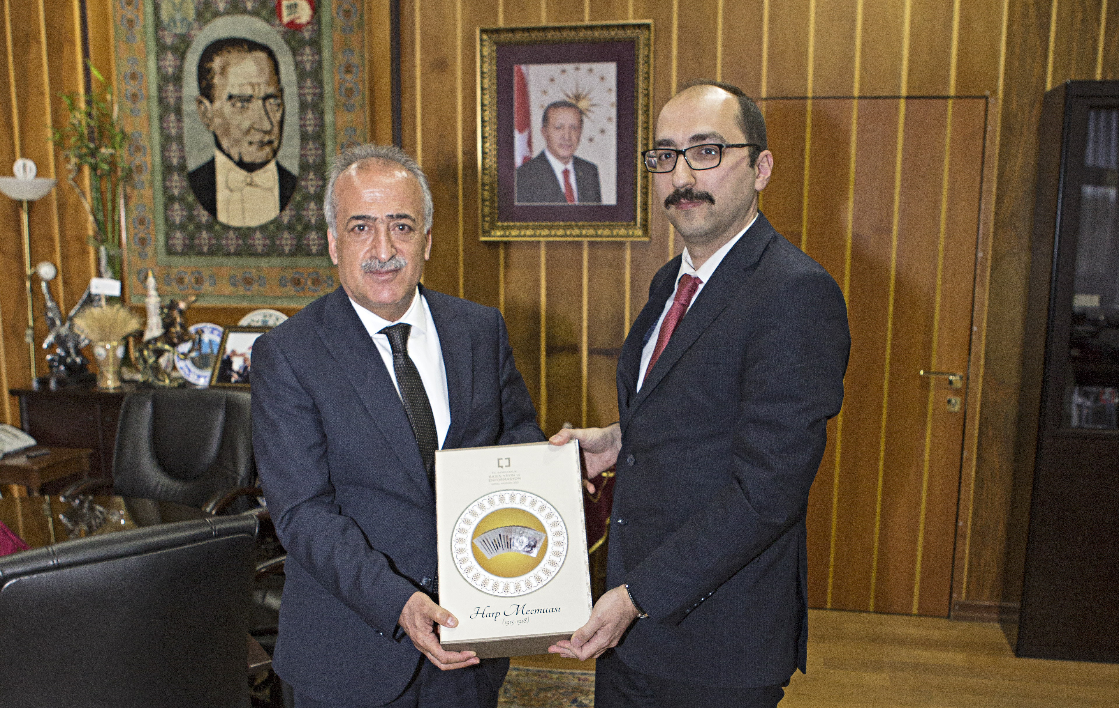 Görüşmenin ardından BYEGM Erzurum İl Müdürü Recep Küçükece, Rektör Çomaklı’ya Basın Yayın Enformasyon Genel Müdürlüğü tarafından hazırlanan "Türkiye 2017" adlı fotoğraf arşivini ve "Harp Mecmuası"nı takdim etti.