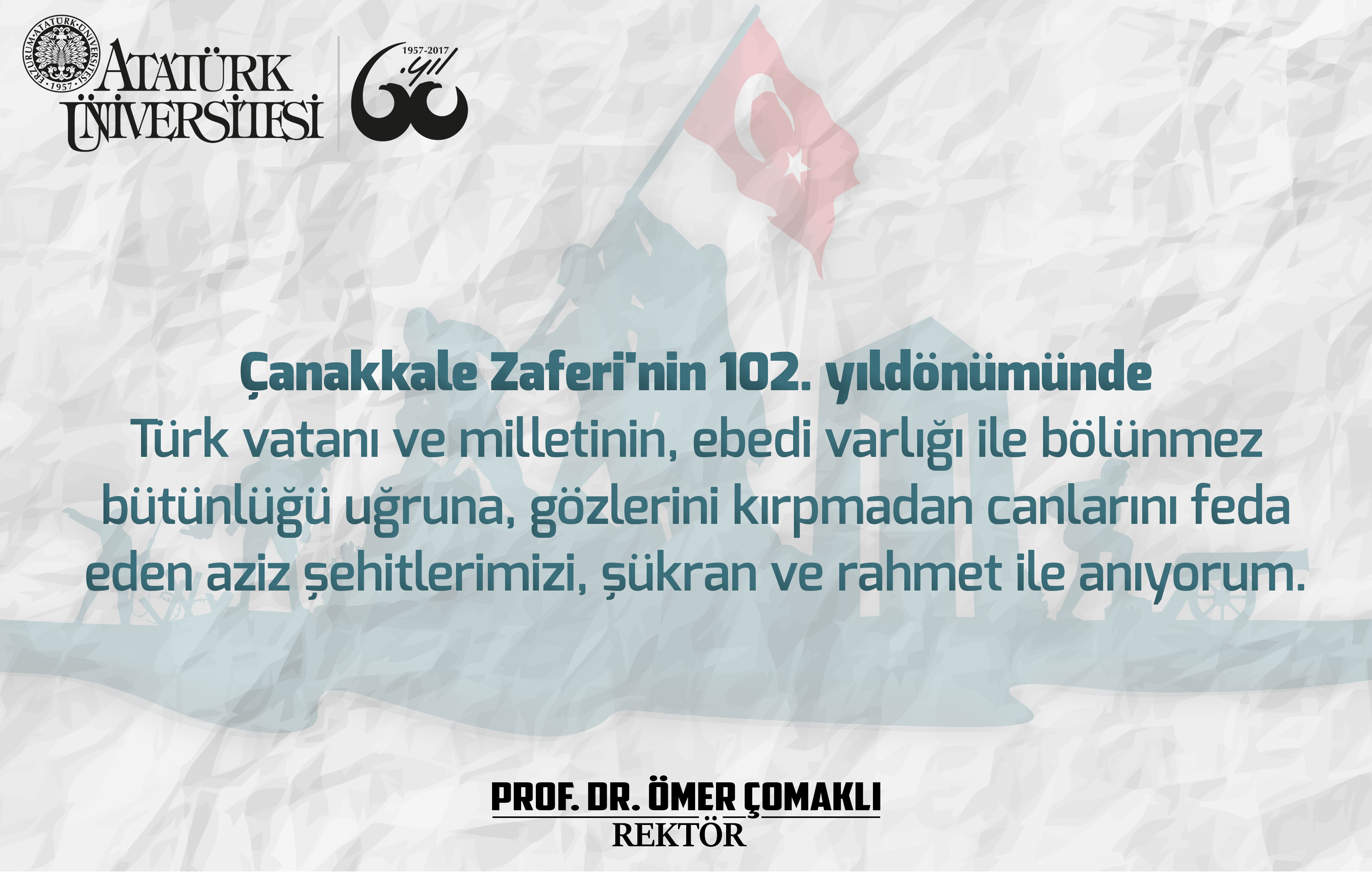 Çanakkale Zaferi’nin 102. yıldönümünde Türk vatanı ve milletinin, ebedi varlığı ile bölünmez bütünlüğü uğruna, gözlerini kırpmadan canlarını feda eden aziz şehitlerimizi, şükran ve rahmet ile anıyorum.