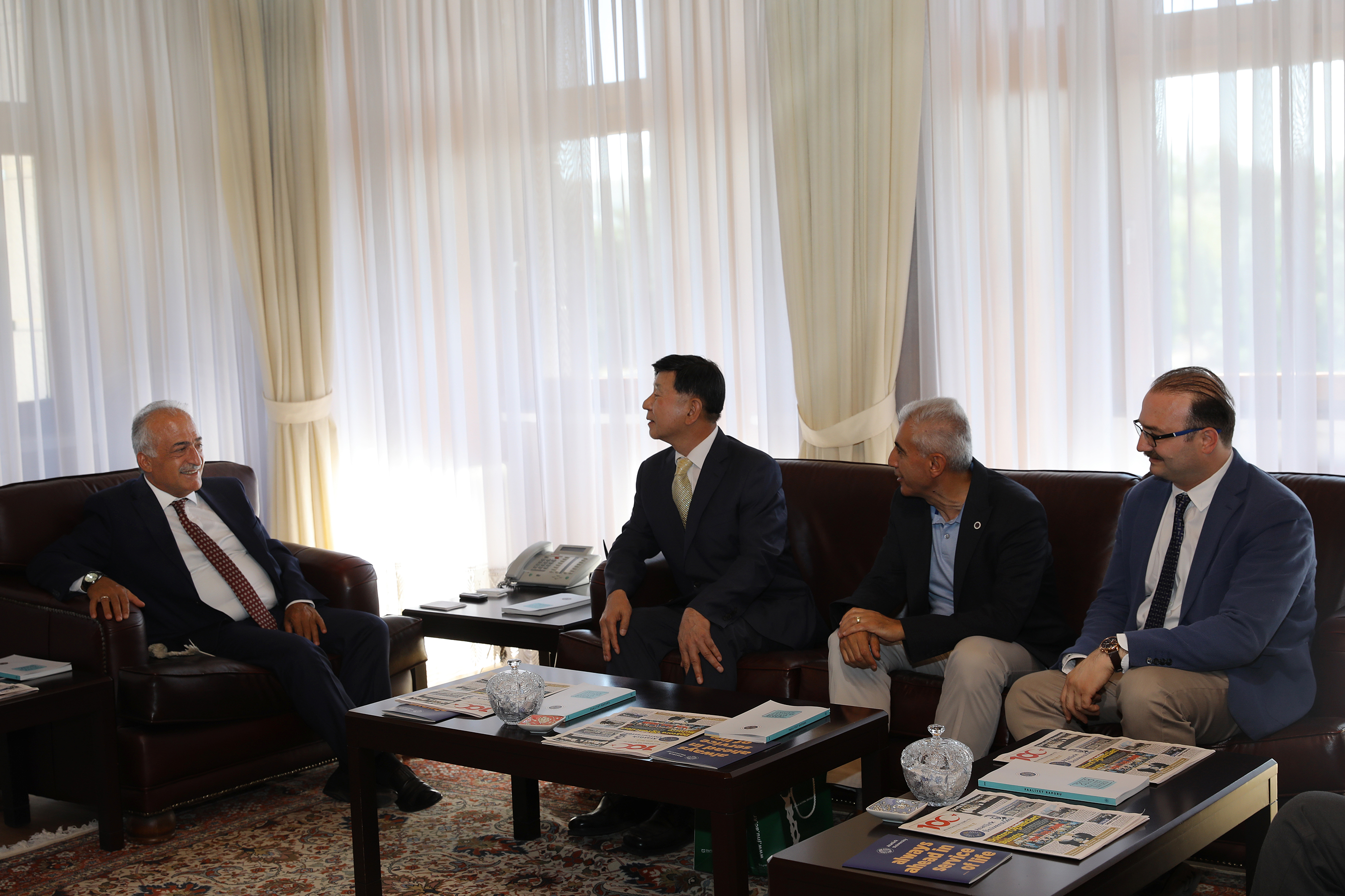 İmza töreni için Erzurum’a gelen Chonnam Ulusal Üniversitesi Rektör Vekili Prof. Jae Han Shim, Rektör Prof. Ömer Çomaklı’yı ziyaret ederek bilimsel yönde gerçekleşecek ikili iş birliği anlaşmasının detaylarını görüştü. Prof. Shim’e Atatürk Üniversitesi Tıp Fakültesi Tıbbi Farmakoloji Anabilim Dalı Başkanı Prof. Dr. Ahmet Hacımüftüoğlu, Tıp Fakültesi Tıbbi Farmakoloji Öğretim Üyesi Prof. A.M. Abd El-Aty ve Dış İlişkiler Ofisi Müdürü Prof. Dr. Taşkın Öztaş refakat etti.