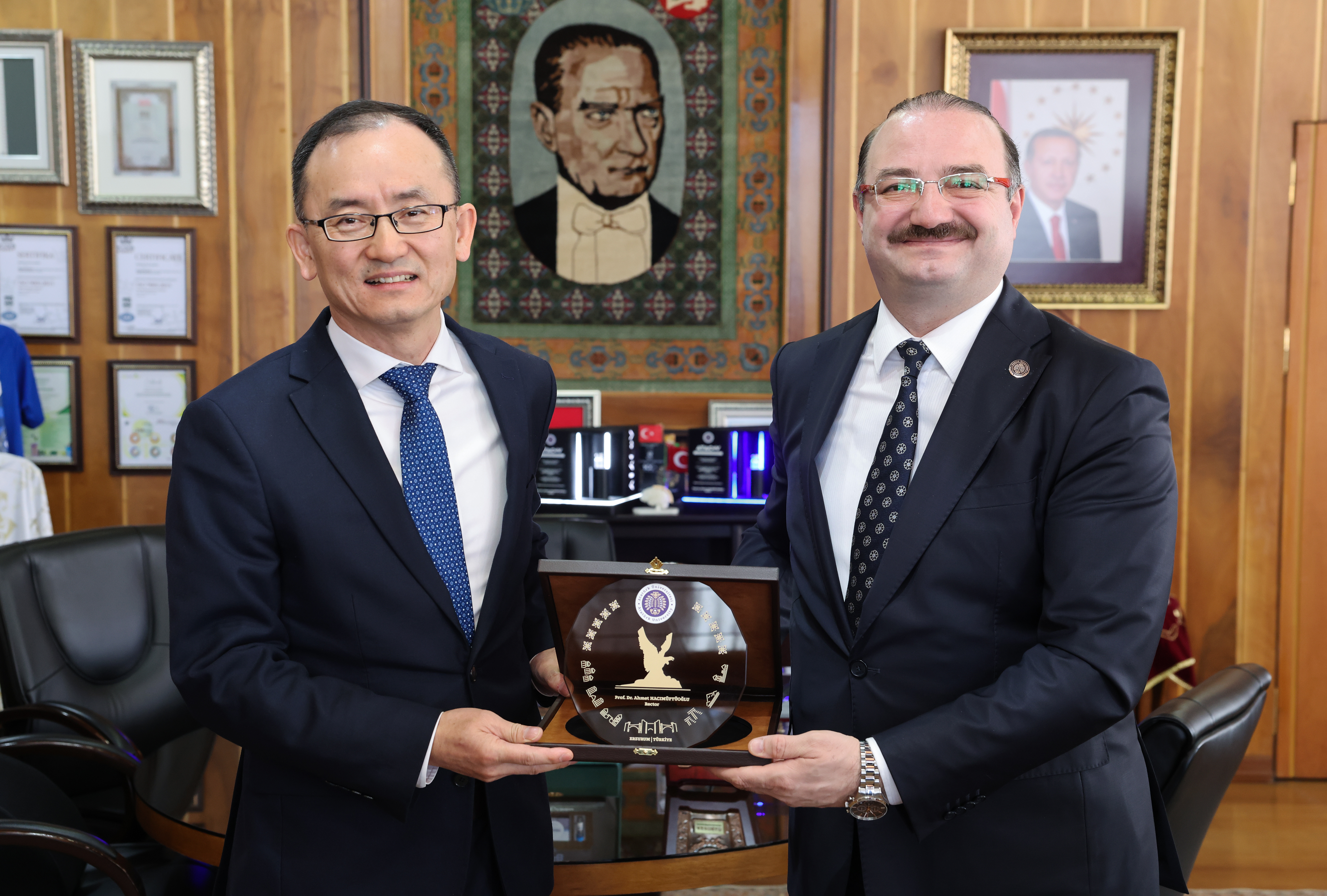 Asya-Pasifik bölgesinin özellikle teknoloji ve bilim alanındaki hızlı gelişimine vurgu yapan Prof. Dr. Hacımüftüoğlu şunları aktardı: “Çin ve Japonya başta olmak üzere bu bölgedeki ülkelerin teknolojik ilerlemeleri yakından takip edilmesi gereken bir dinamizm barındırıyor. Atatürk Üniversitesi olarak; öğrenci değişim programları, akademik hareketlilik ve ortak araştırma projeleriyle bu ülkelerle ilişkilerimizi her geçen gün daha da güçlendiriyoruz. Sayın Büyükelçinin üniversitemize gerçekleştirdiği bu ziyaretin, mevcut iş birliklerimizi derinleştirecek ve yeni projelere zemin hazırlayacak önemli katkılar sağlayacağına inanıyorum” dedi.