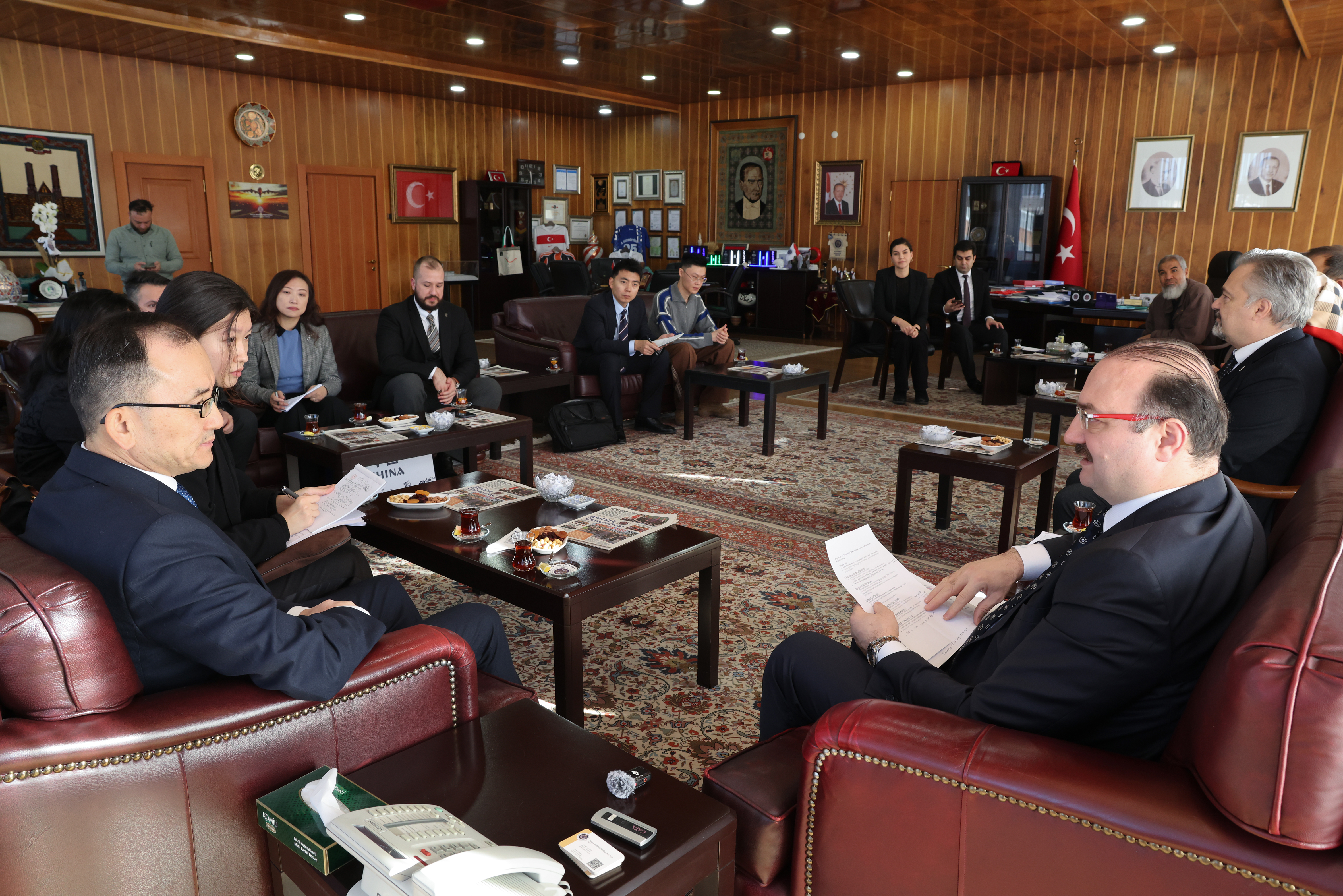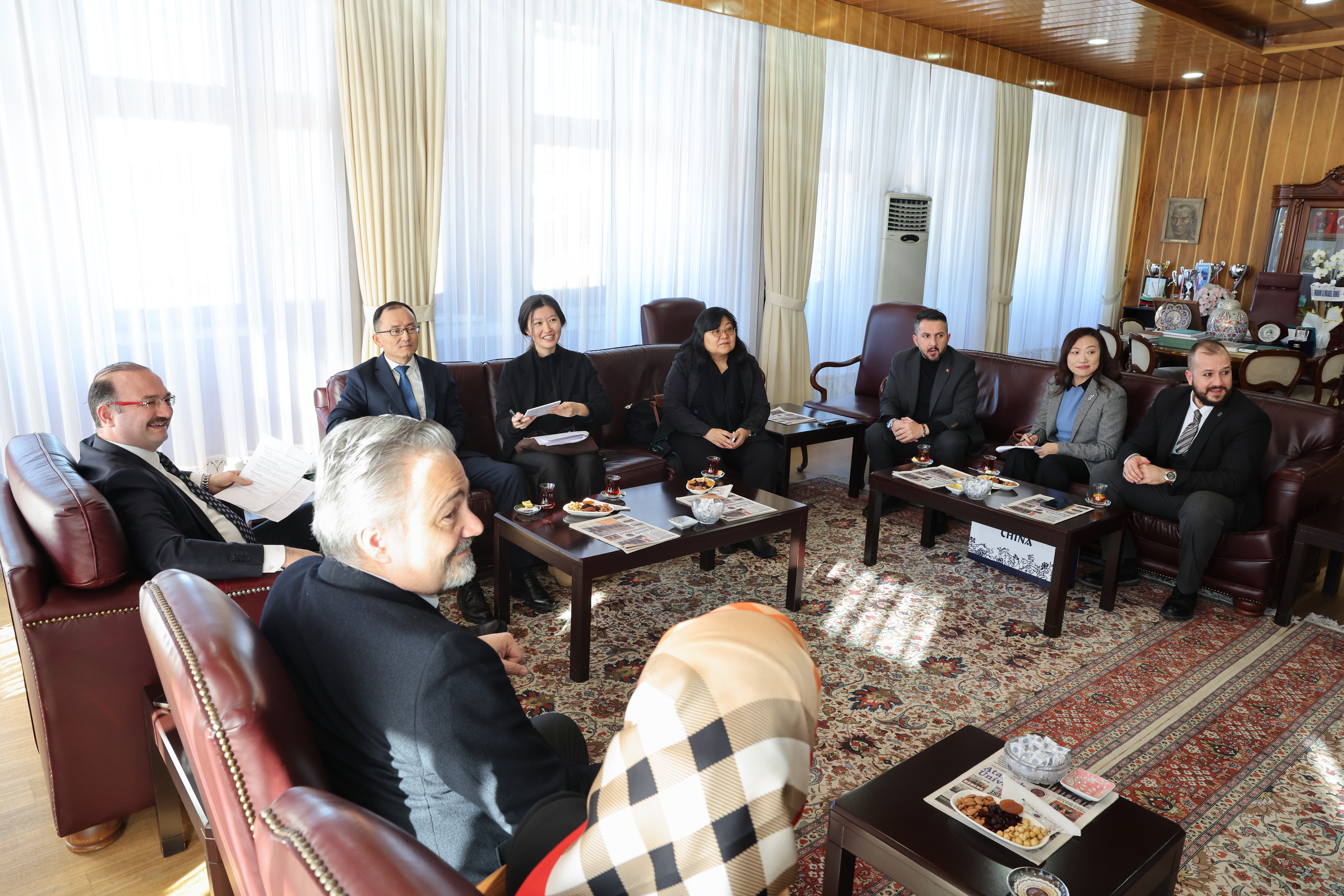 Çin Halk Cumhuriyeti Ankara Büyükelçisi Jiang Xuebin ve beraberindeki heyet, Atatürk Üniversitesini ziyaret etti. Ziyarette Büyükelçi Xuebin’e; Erzurum Büyükşehir Belediyesi Turizm ve Gastronomi Müdürü Resul Parlak ile Avrupa Birliği ve Dış İlişkiler Müdürü Eren İzcioğlu eşlik etti. Gerçekleştirilen görüşmelerde, Türkiye ile Çin Halk Cumhuriyeti üniversiteleri arasındaki akademik, bilimsel ve kültürel iş birliklerinin geliştirilmesine yönelik değerlendirmelerde bulunuldu.