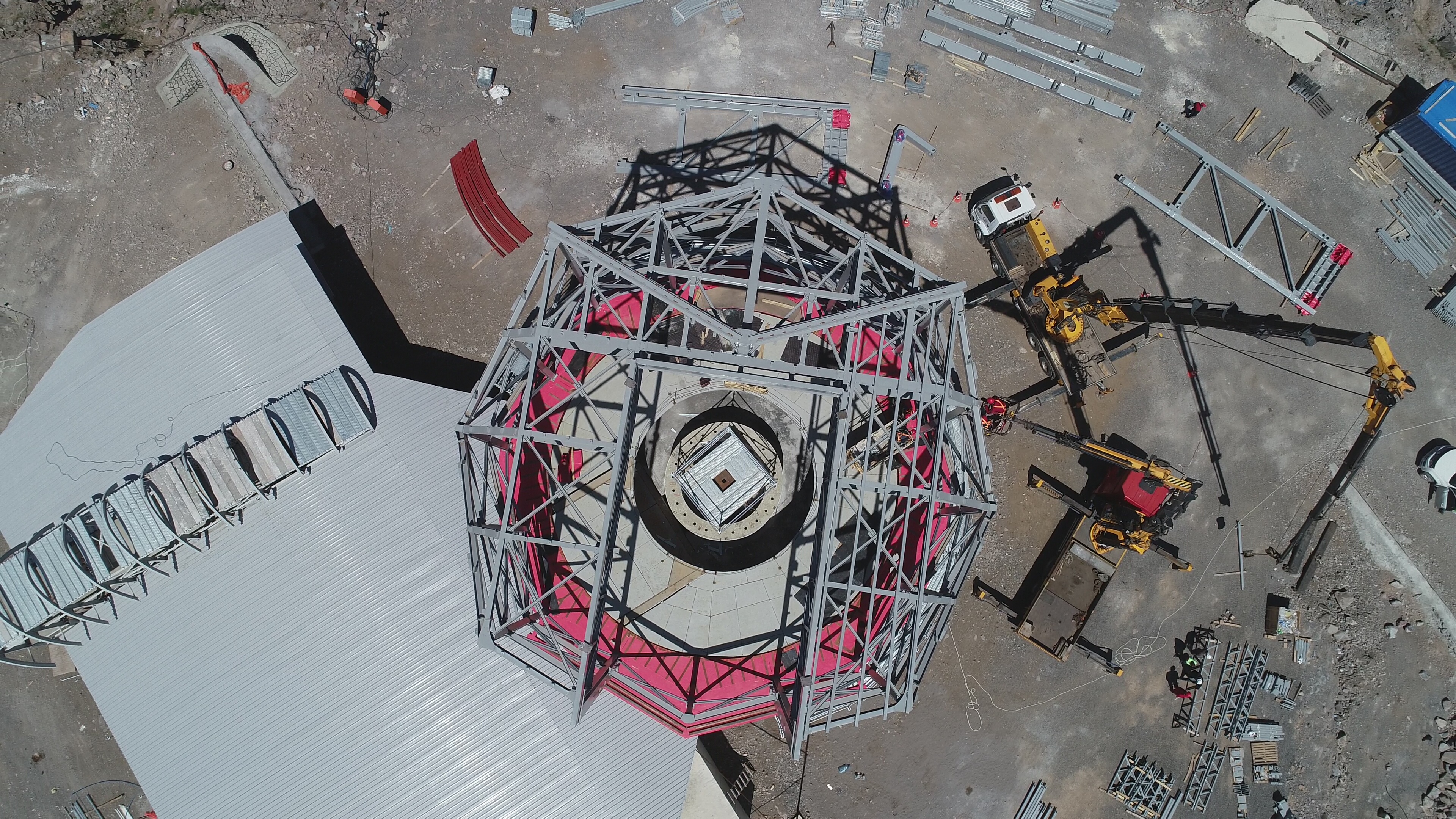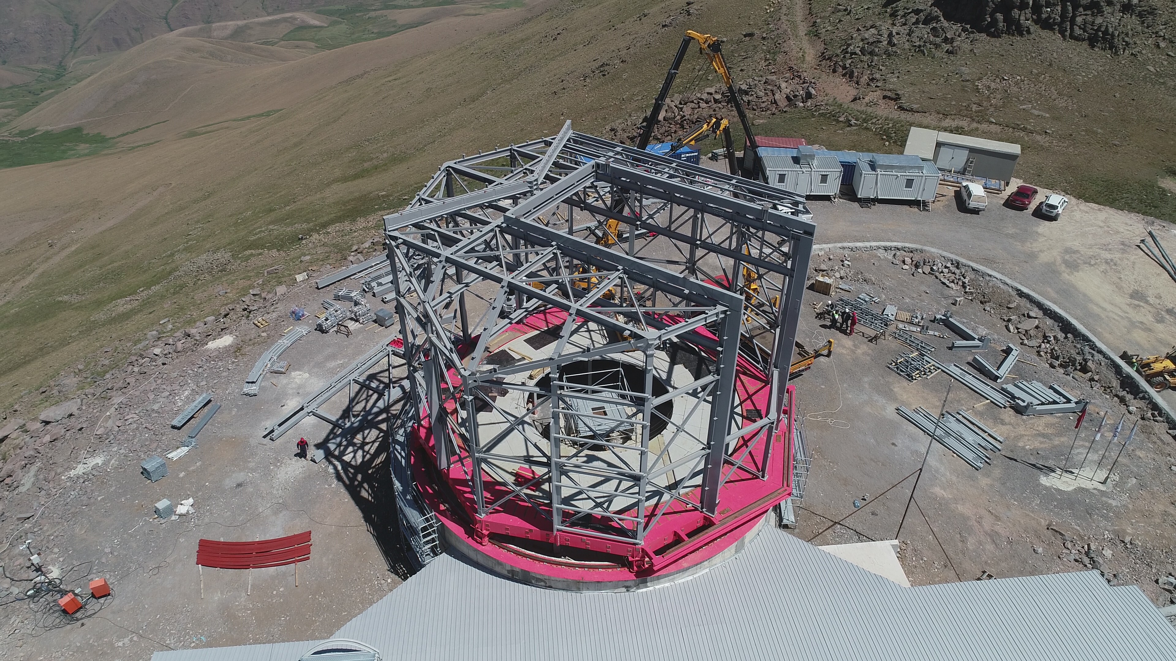 Geçen yıl çelik konstrüksiyonunu ve kaba inşaatını bitirdiğimiz binayı bu yıl personelin de barınacağı şekilde tamamlayarak kubbeyi dışarıdan tamamen giydirerek örtüyoruz. Bu kış su, sızdırmazlık ve donma testlerini devam ettirerek tamamlamayı planlıyoruz. Teleskop için daha önce Rektörümüz Prof. Dr. Ömer Çomaklı ve Yardımcısı Prof. Dr. Ayhan Çelik ile birlikte İtalya'ya giderek fabrika kurulumunu yerinde gördük ve onay verdik. Şimdi test aşaması başlayacak. Elektronik, mekanik, optik, takip ve yönlenme testleri yapılacak. Ardından bir lego gibi sökülerek ülkemize getirme aşamasına geçilecek. Bunun için beklediğimiz şey esasen kubbenin üstünün kapatılmasıydı. Kubbe kapatıldıktan sonra İtalya ve Belçika'dan gelen parçalar tekrar burada birleştirilecek. En son ise Rusya'dan teleskobun aynası gelecek ve sonunda ilk ışığı almaya başlayacağız.”