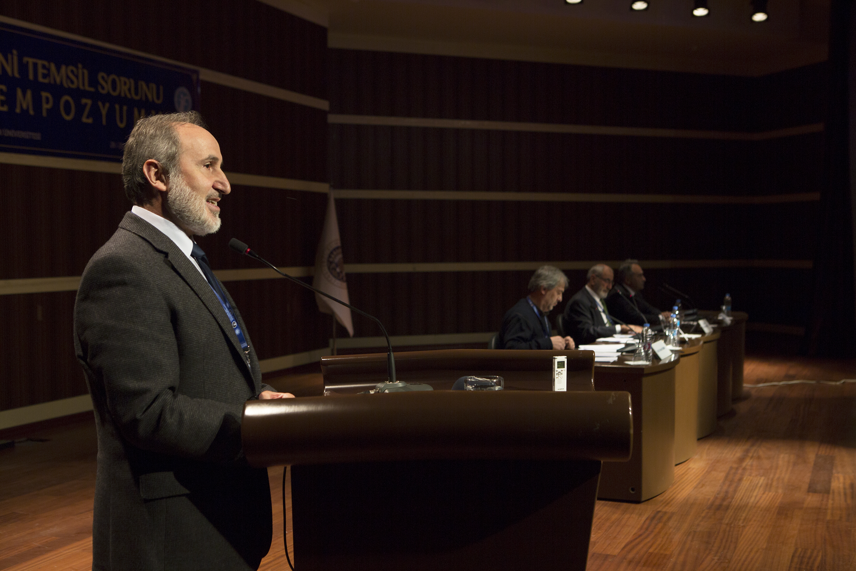 Ülkemizin en köklü kurumlarından biri olan Atatürk Üniversitesi olarak bu sorumluluğumuzun farkındayız. Ülkemizin ve dünyanın problemlerini tespit, değerlendirme ve çözüm üretme noktasında yapılanmalarımız, teşvik ve desteklerimiz artarak devam etmektedir. Bu bağlamda, İlahiyat Fakültemiz tarafından düzenlenen Dini Temsil Sorunu Sempozyumu’nun söz konusu sorumluluğun gereği olarak son derece önemli olduğu kanaatindeyim. Hem ele alınan konu hem de davet edilen değerli bilim adamlarının niteliği bakımından alanına çok ciddi katkılar sunacağına inanıyorum. Bu nedenle böyle bir programı hazırlayan ve icra eden İlahiyat Fakültemizi tebrik ediyor, bu tür çalışmaların devamını diliyorum. Ayrıca ülkemizin değişik Üniversitelerinden sempozyuma iştirak eden ve alanında söz sahibi olan siz kıymetli bilim adamlarını şehrimizde ve Üniversitemizde misafir etmekten onur duyduğumu ifade etmek isterim. Bu duygularla, sempozyumun ülkemiz ve tüm dünya için farkındalık oluşturacak ve ufuk açacak sonuçlar doğurmasını temenni ediyorum” şeklinde konuştu.