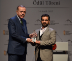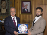 Gerçekleştirilen ödül töreninde birincilik ödülünü Cumhurbaşkanı Recep Tayyip Erdoğan’ın elinden alan Doç. Dr. Abdulvahap Özsoy, Rektör Prof. Dr. Ömer Çomaklı’yı ziyaret ederek mutluluğunu paylaştı.