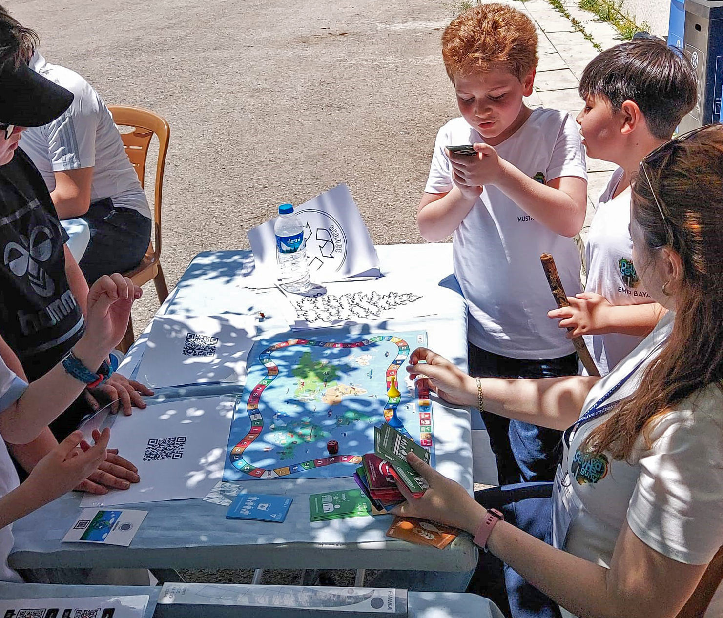 İlk ve ortaokul öğrencilerine yönelik yapılan diğer bir etkinlikte ise; önceden karışık olarak toplanmış geri dönüştürülebilen / dönüştürülemeyen atıklar ile etkinlik süresince oluşan organik atıklar, üçlü ayırma konteynerlerine (mavi-siyah-kahverengi) uygulamalı olarak ayrıştırıldı ve bu konuyla alakalı bilinçlendirici videolar içeren QR Kodlu Kartlar dağıtıldı. Ayrıca, bu yaş grubuna 17 temel SKA’nın anlatıldığı “Dünyanın Geleceği” isimli oyun oynatılarak, SKA ile ilgili bilinçlendirmeler yapıldı.