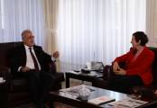 Konuğu Funda Sivrikaya Şerifoğlu’na Yeni Nesil Üniversite Tasarım ve Dönüşüm Projesi hakkında bilgi veren Rektör Çomaklı, Kariyer Merkezinin de Yeni Nesil Üniversite Projesi kapsamında kurulan etkin birimlerden biri olduğuna vurgu yaptı.