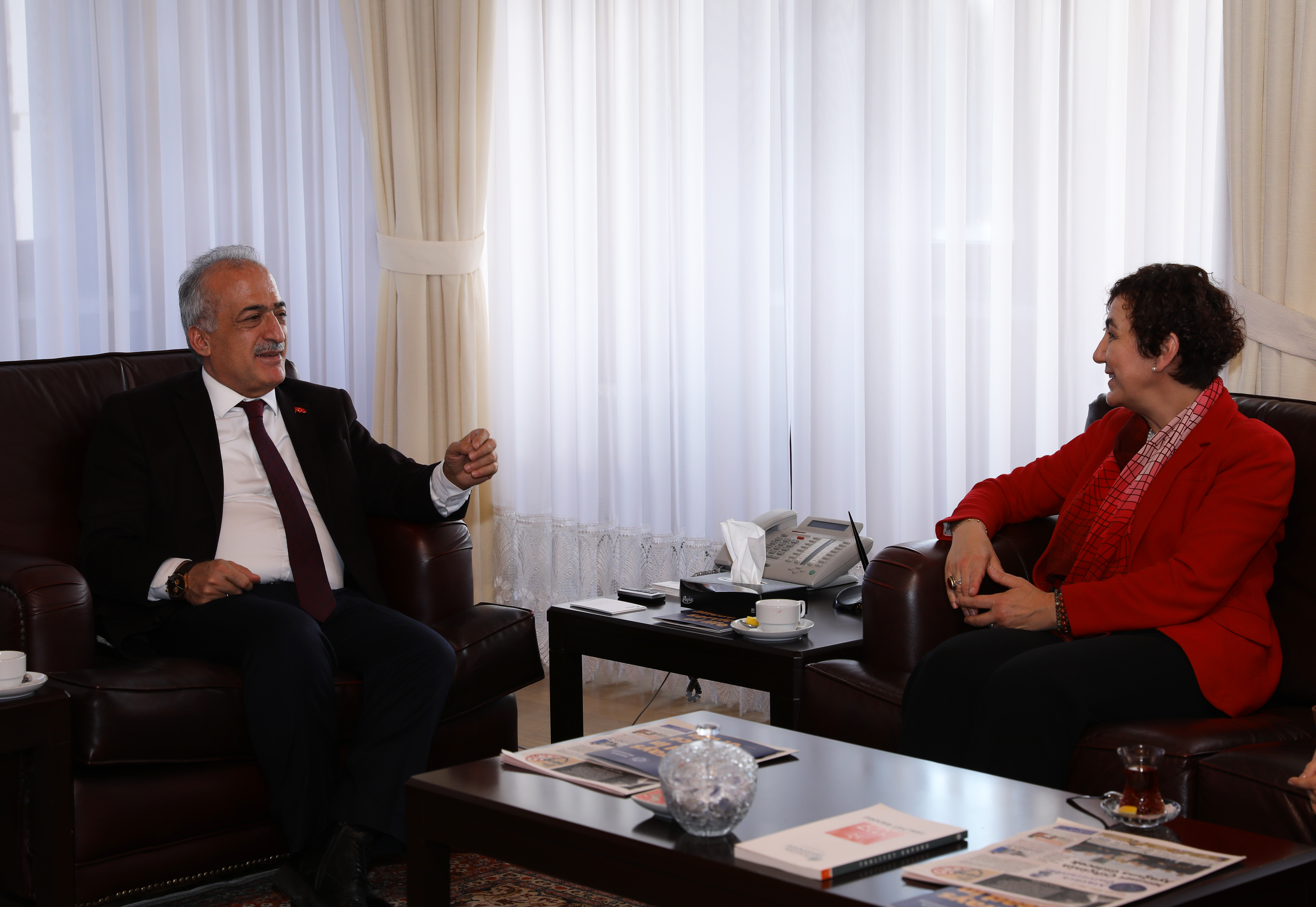 Atatürk Üniversitesi Kariyer Merkezi tarafından düzenlenen “İyiliğin ve Sevginin Artması İçin Değer Üretmek” konulu konferans vermek üzere Atatürk Üniversitesine gelen Düzce Üniversitesi Kurucu Rektörü Prof. Dr. Funda Sivrikaya Şerifoğlu, Rektör Prof. Dr. Ömer Çomaklı’yı ziyaret etti.