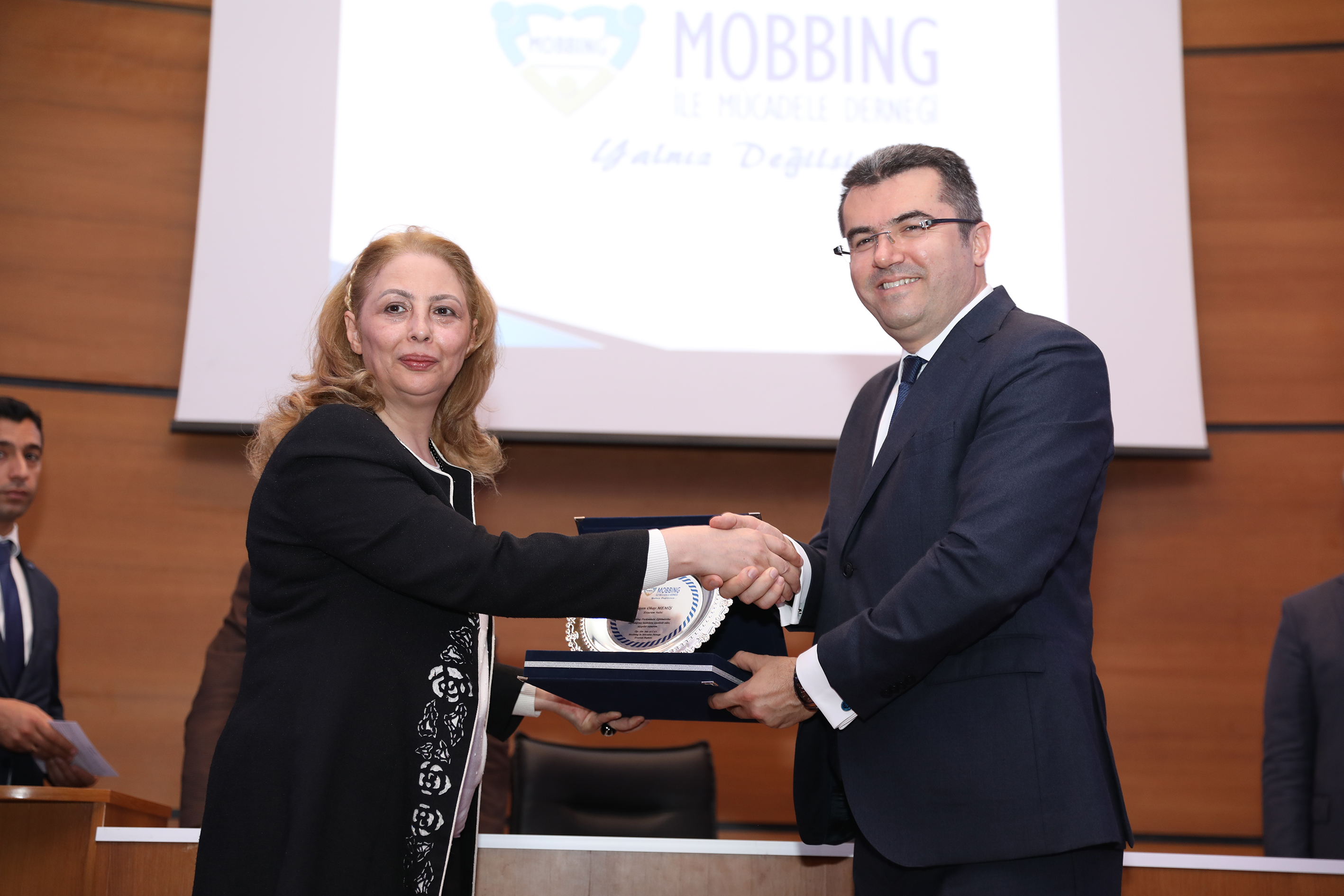 “Mülkün Temeli Adalettir” sözünden yola çıkarak kurum ve kuruluşların mutlak surette adalet ile idare edilmesi gerektiğini aktaran Çomaklı: “Şahsım ve yönetimdeki ilgili birim ve kişiler kul hakkına riayet etmeyi ilke kabul edinerek, iş yeri huzurunun temini için yoğun gayret sarf etmekteyiz. Bu bağlamda çalışma ortamı ahengini tesis etmeye yönelik faaliyetlerde bulunan her türlü bilimsel çalışma, vakıf, dernek ve sosyal toplum kuruluşları ile yakinen temas halindeyiz. Mobbing ile Mücadele Derneği ve Üniversitemiz bu amaçlar doğrultusunda istişareli bir şekilde çalışmalara devam edecektir. Mobbing, temelde bir insan hakkı ihlalidir. Mobbingin önlenmesi ile ilgili 2011/2 Sayılı Başbakanlık Genelgesi dönemin Başbakanı Sayın Cumhurbaşkanı Recep Tayyip Erdoğan tarafından yayımlanmıştır” hatırlatmasında bulundu.