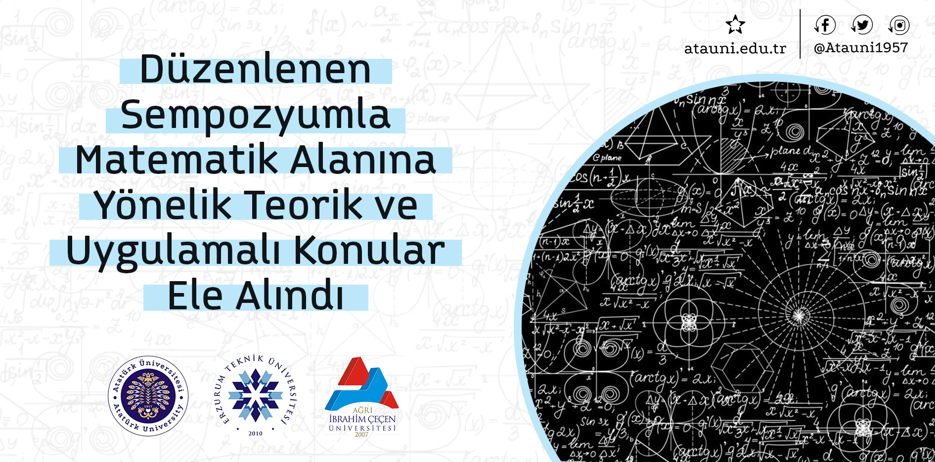 23-25 Mayıs tarihlerinde çevrim içi olarak yürütülen, yerli ve yabancı birçok bilim insanının konuşmacı olarak görev aldığı, matematik alanına yönelik çeşitli sunumların ortaya konularak teorik ve uygulamalı konuların ele alındığı sempozyumun açılış konuşmaları sırasıyla; Atatürk Üniversitesi adına Rektör Yardımcısı Prof. Dr. Ayşe Bayrakçeken Yurtcan, Erzurum Teknik Üniversitesi adına Rektör Prof. Dr. Bülent Çakmak ve Ağrı İbrahim Çeçen Üniversitesi adına Rektör Yardımcısı Prof. Dr. Önder Şimşek tarafından yapıldı.