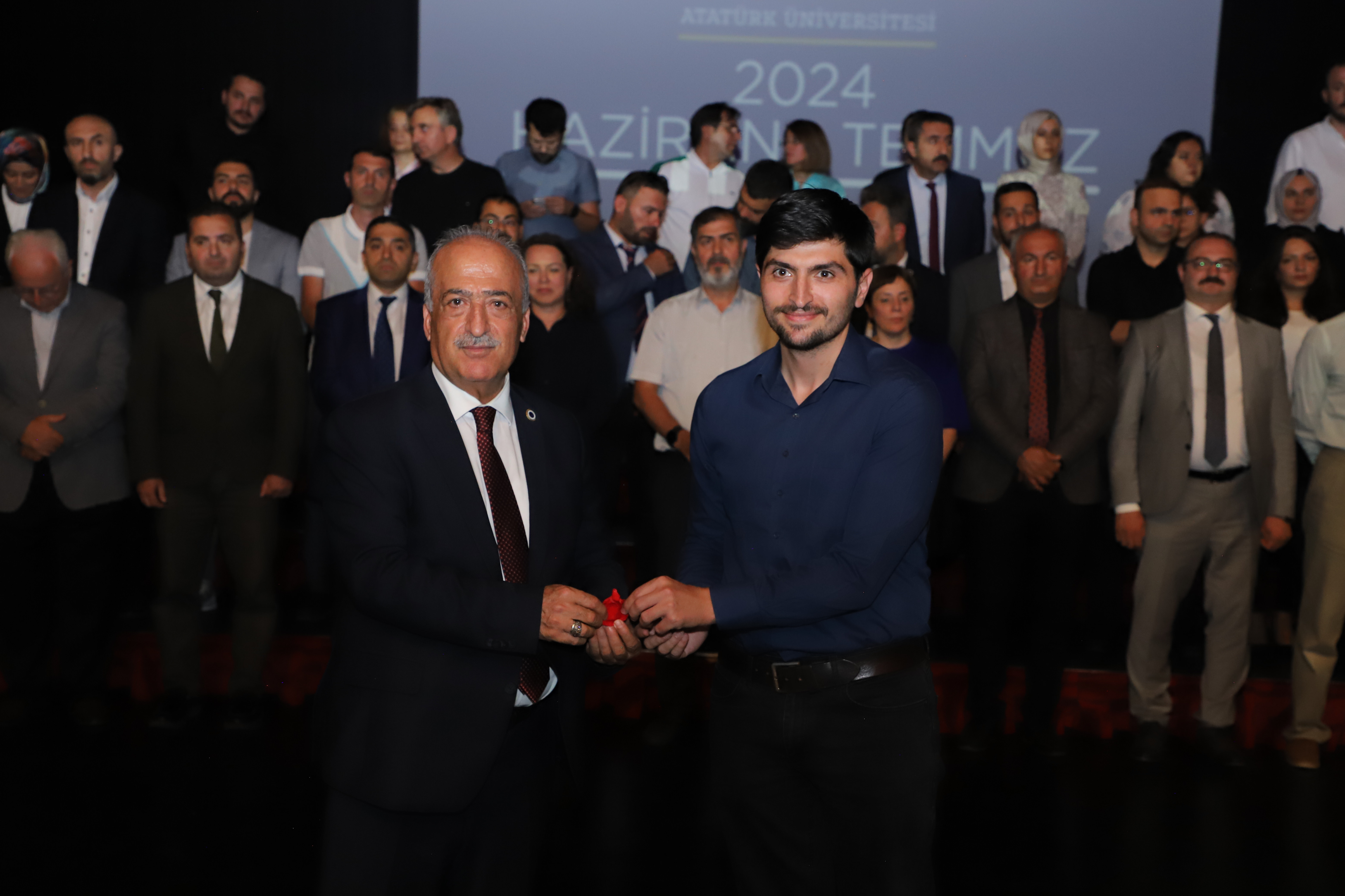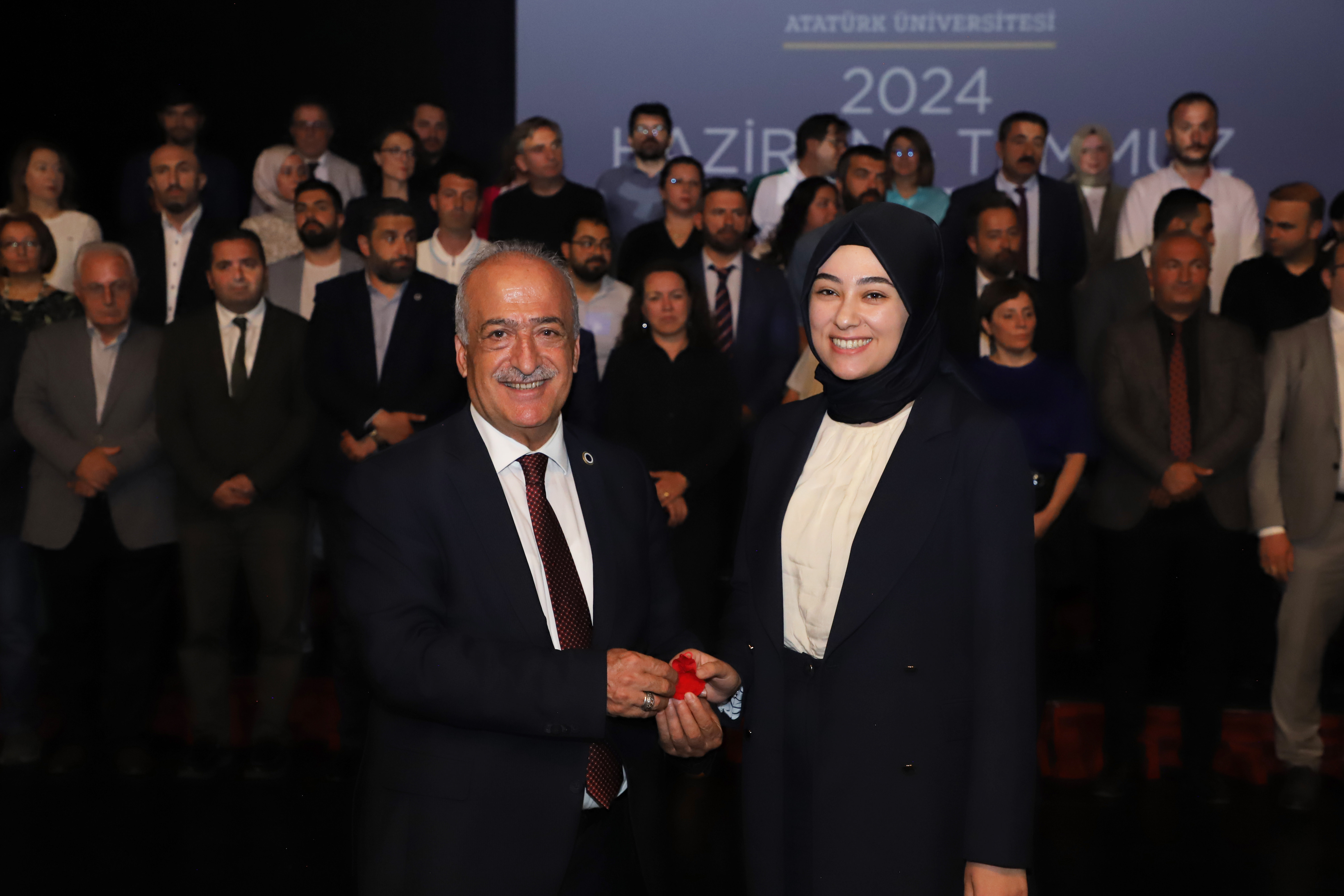 Professor Dr. Ömer Çomaklı, the Rector of Atatürk University, presented the awards to the faculty members who submitted applications in June and July for their research activities within the New Generation University Design and Transformation Project.
