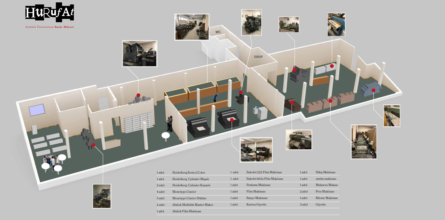 Established on an area of 700 m² and consisting of exhibition and printing sections, the museum includes a total of 32 pre-printing, printing and post-printing machines. In addition, thousands of hurufat (metal letters) and printing materials will be exhibited in the museum. The fact that most of these materials are in good condition and that there are almost no similar ones left further emphasises the value of the museum collection.