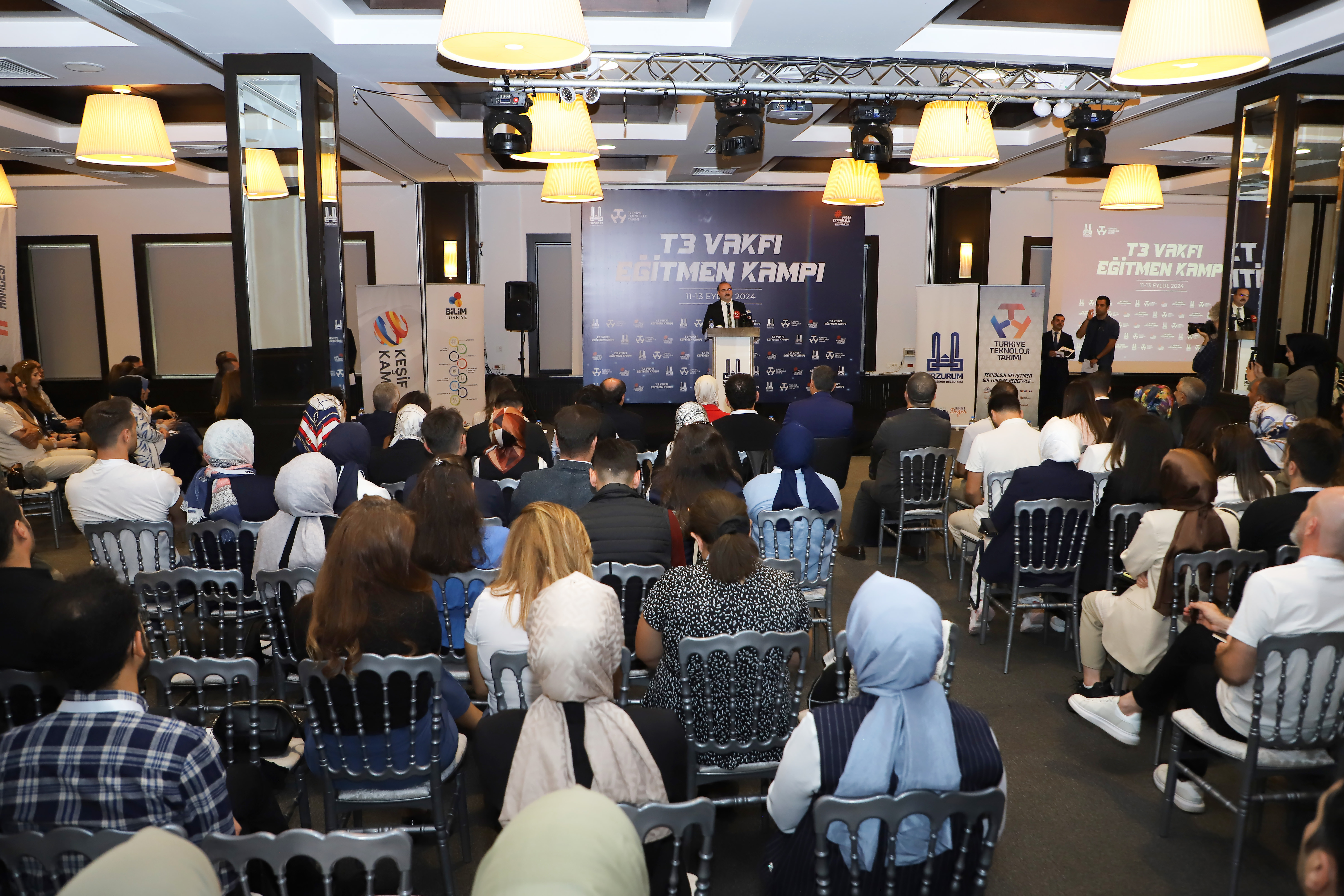 Rector Hacımüftüoğlu stated that as Atatürk University, they always support innovative projects in order to carry science and education to the highest level and said: ‘In this context, this programme, which was held with the participation of 125 trainers and 25 centre managers from Turkey, Cyprus and Azerbaijan, is extremely valuable in terms of sharing knowledge and experience at the international level. The pedagogical trainings given on the first day of the training and the field-based trainings to be held on the second and third days will take your competence in your field one step further. I sincerely believe that these trainings, which will be offered in a wide range of fields from educational sciences to technology, from mathematics to entrepreneurship, will make significant contributions to raising the scientists and technologists of the future. On this occasion, I would like to take this opportunity to thank the T3 Foundation and all stakeholders who contributed to the realisation of this programme. I hope that the knowledge and experience you, esteemed trainers, will gain in this camp will be a source of inspiration for the centres where you work and your students. I am very honoured to welcome you in Erzurum and I wish you a successful training process.’