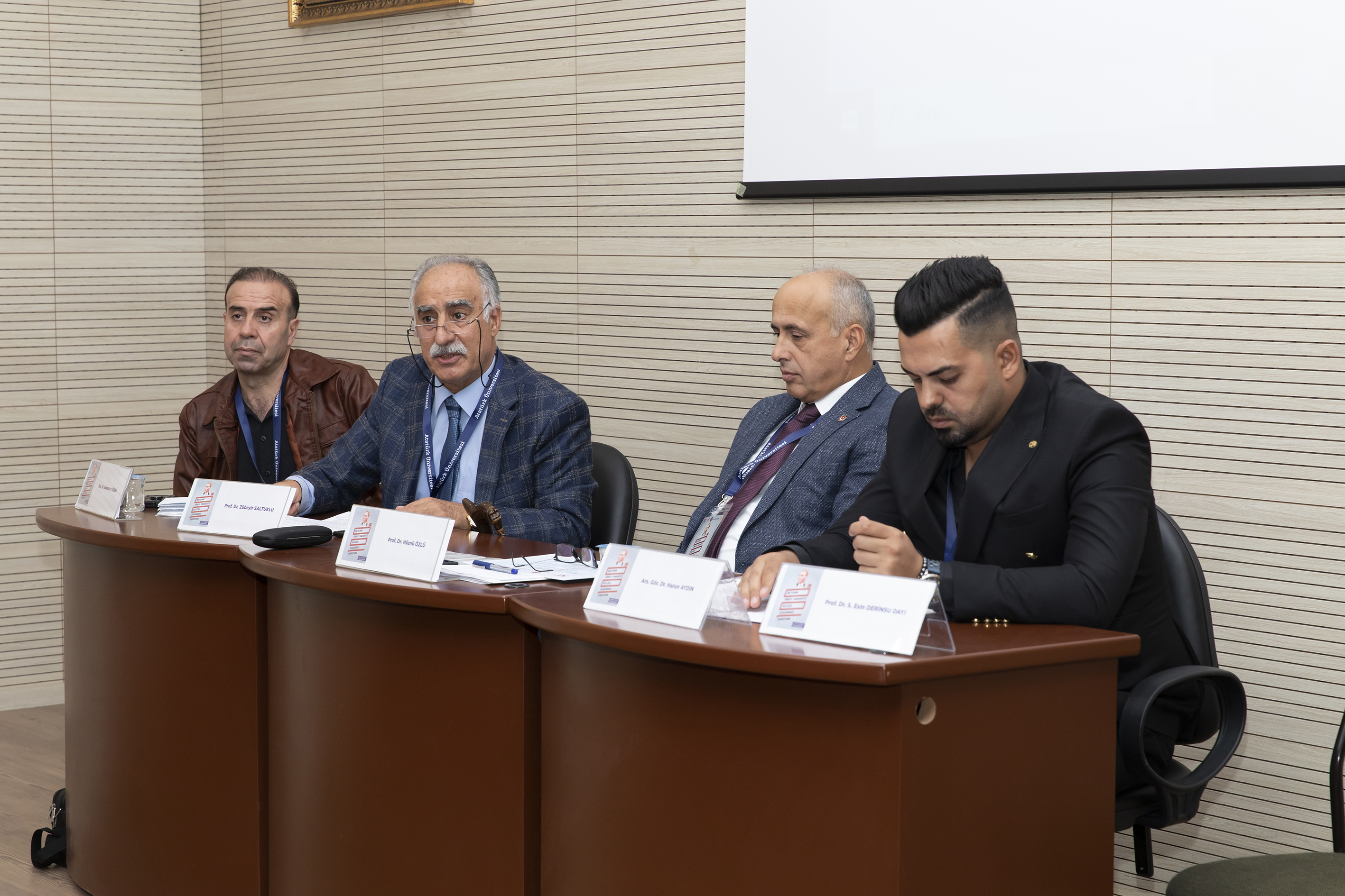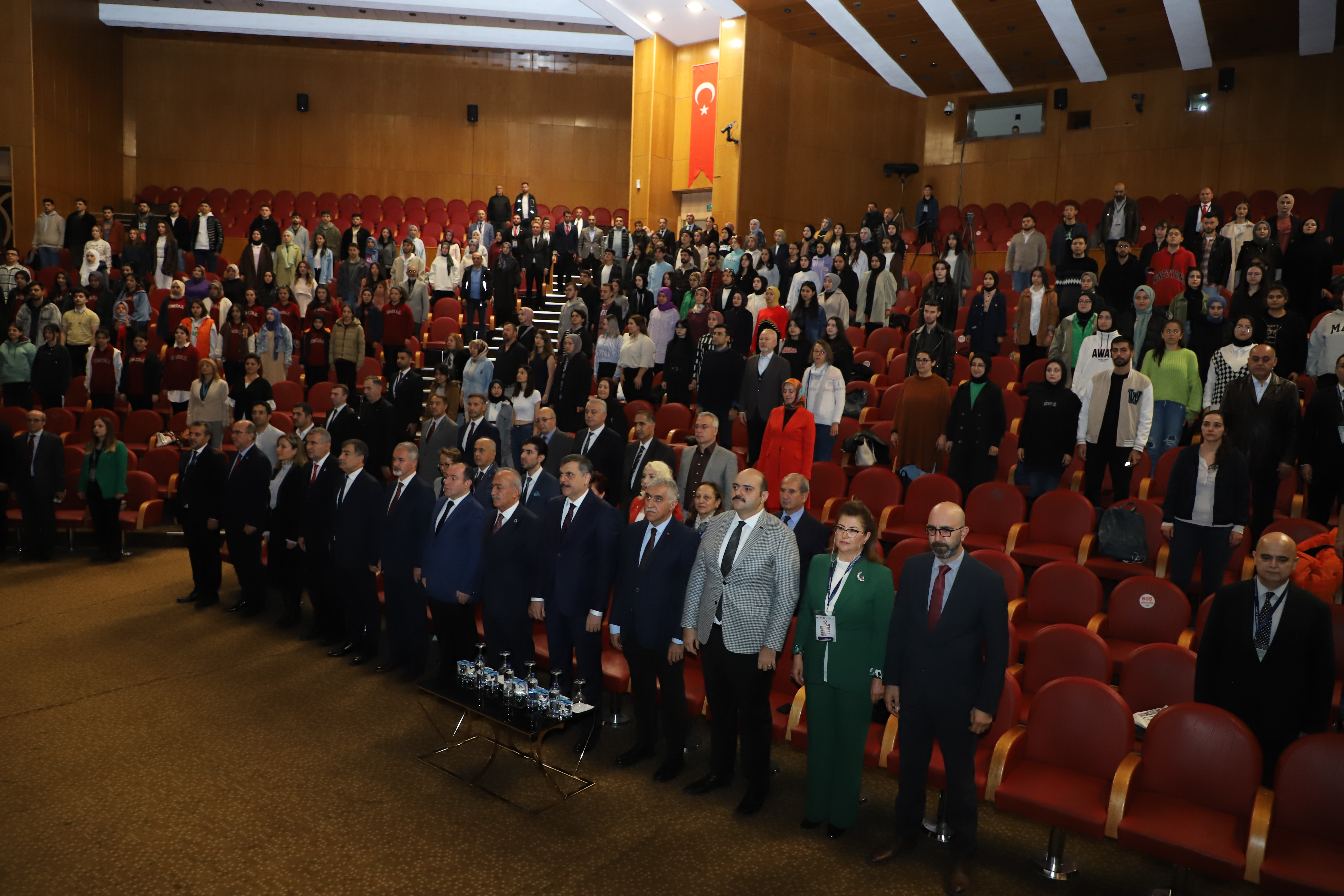 Erzurum Governor Mustafa Çiftçi, Atatürk University Rector Prof. Dr. Ömer Çomaklı, Vice Rectors, Provincial Director of National Education Yakup Yıldız, Representative of the Atatürk Culture, Language and History High Institution Research Center Ömer Orhan, Mayor of Aziziye M. Cevdet Orhan, and Metropolitan Municipality Deputy Mayor Zafer Aynal all attended the opening ceremony of the symposium commemorating the 100th anniversary of the Republic of Turkey.