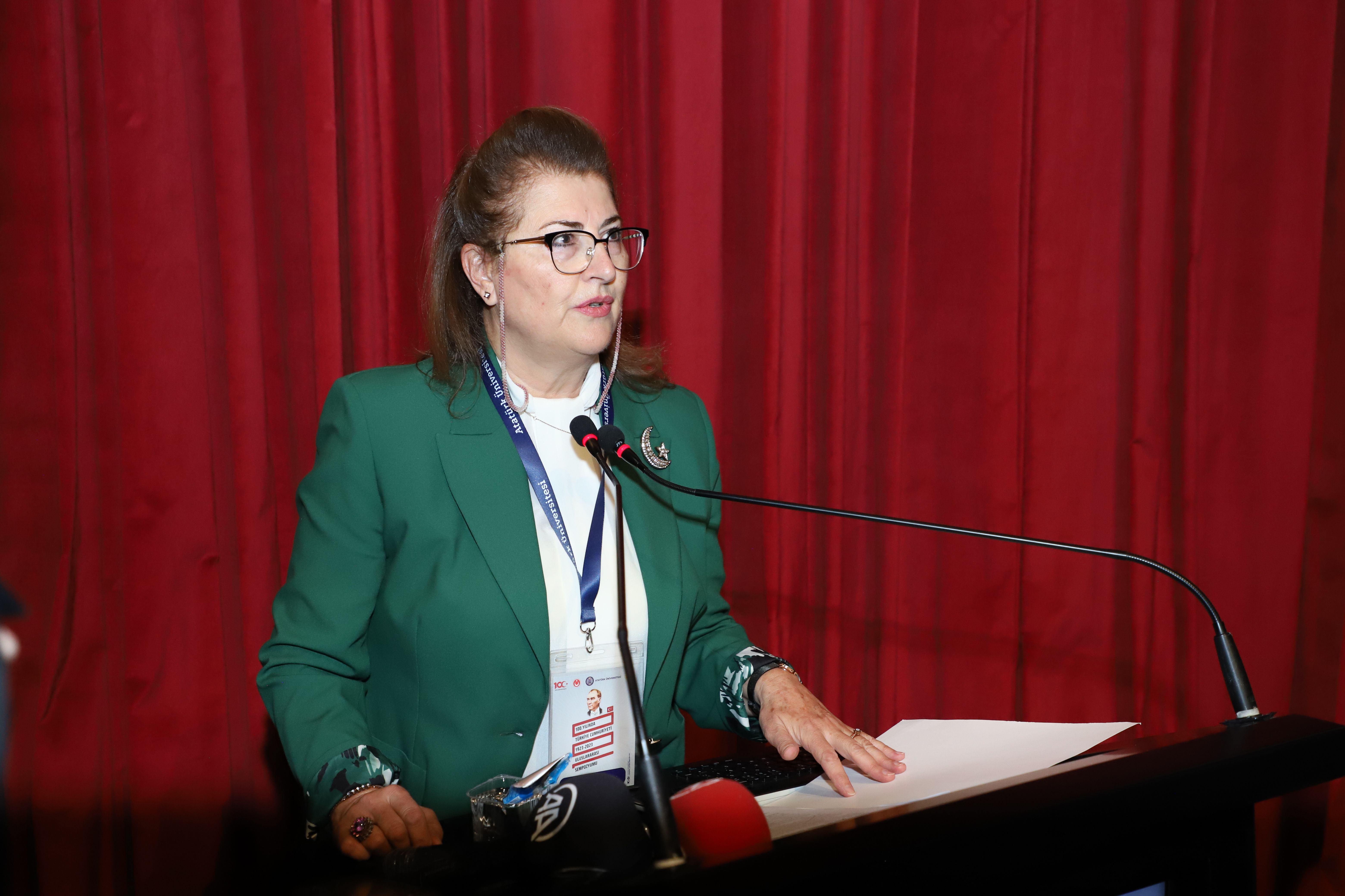 Prof. Dr. Esin Derinsu Dayı, a professor from the Atatürk Principles and Revolution History Institute began her introductory remarks at the symposium by extending well-wishes for the Republic's eternal and joyous centennial. She said it was a privilege to be present for this momentous occasion that possesses spiritual, national, and historical significance.