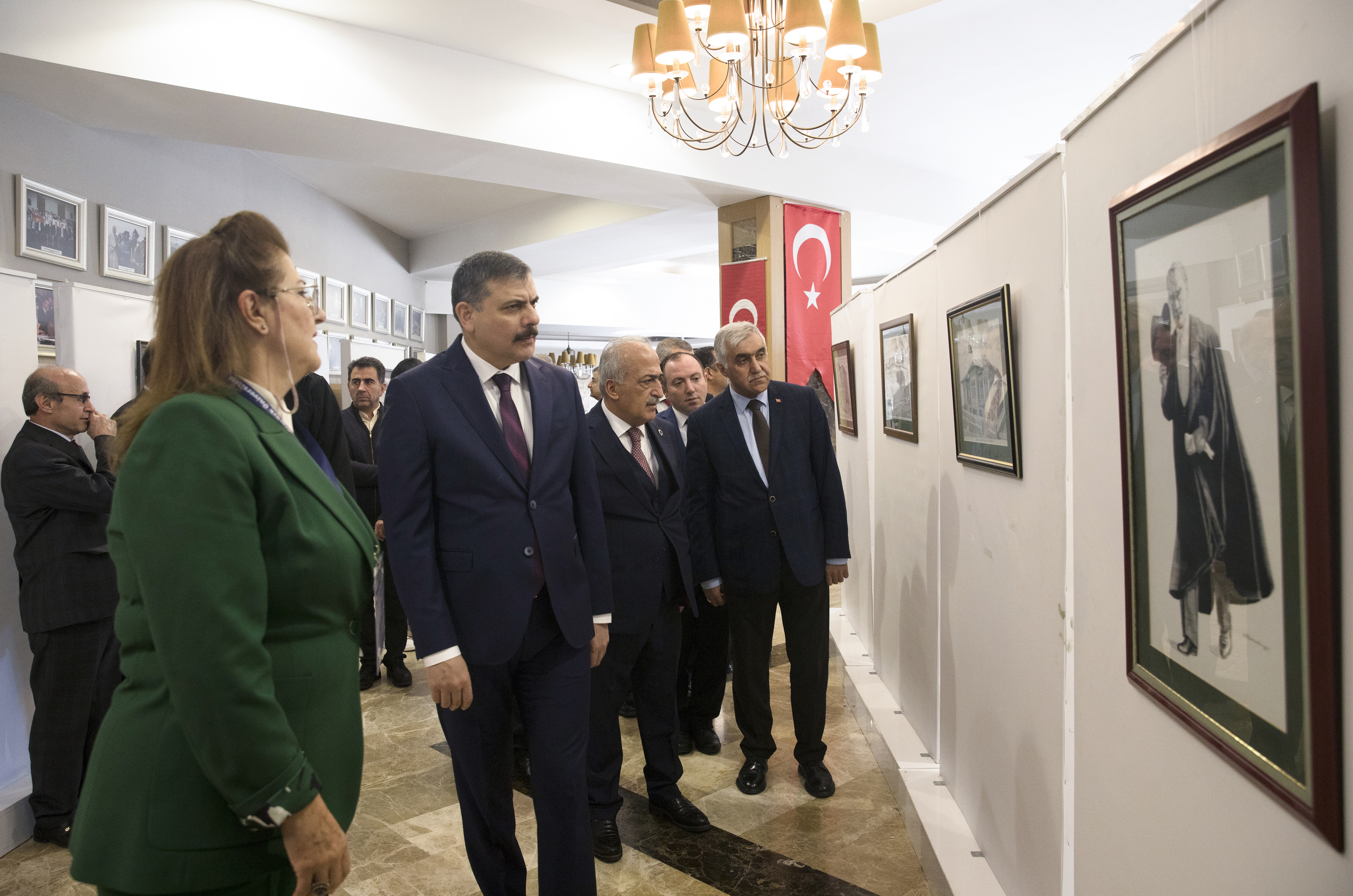 The "Atatürk and the Republic" painting exhibition, curated by the Atatürk Principles and Revolution History Institute, was inaugurated by Governor Çiftci and Rector Çomaklı prior to the commencement of the international symposium at the National Will Hall on July 15.