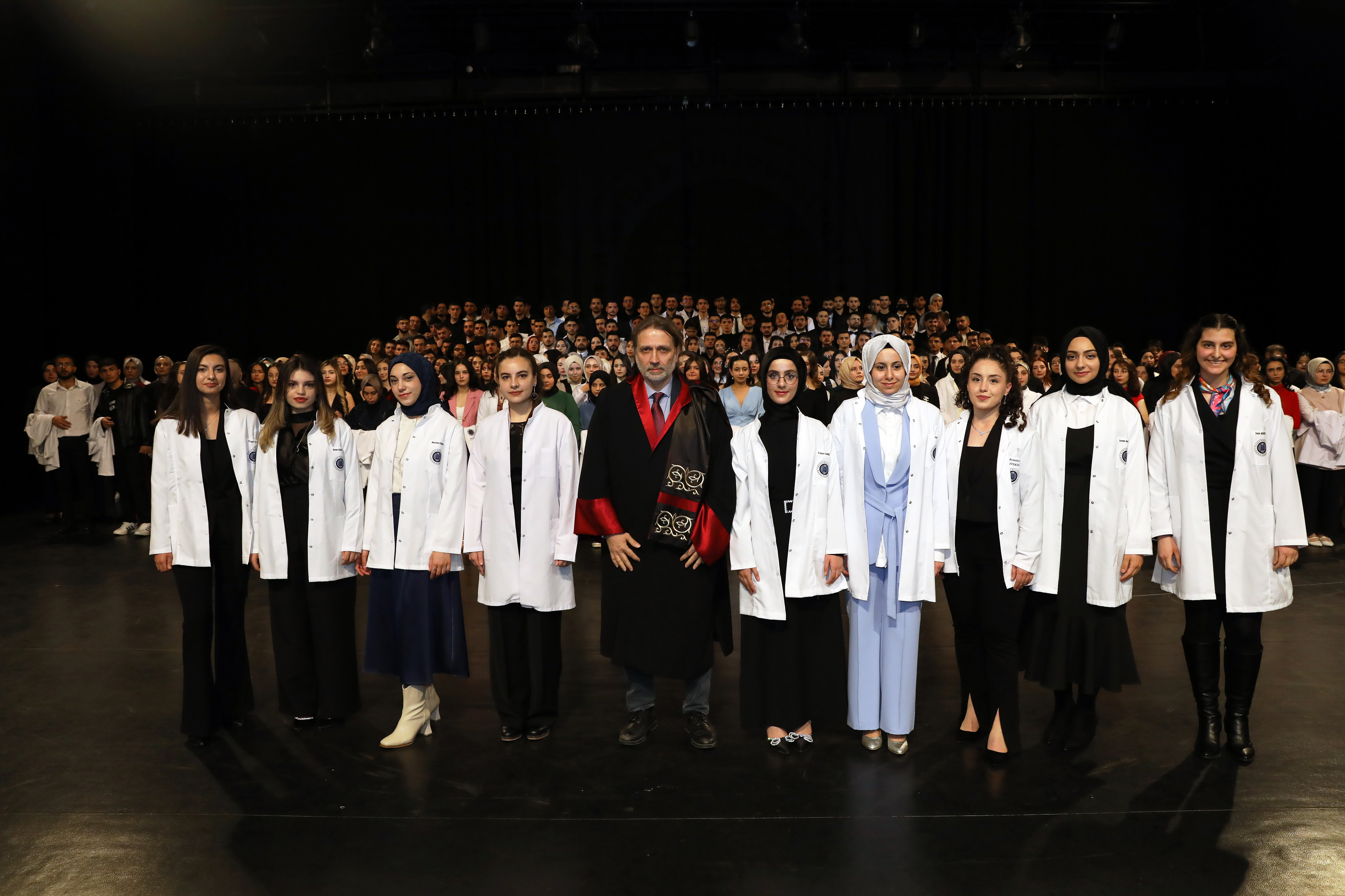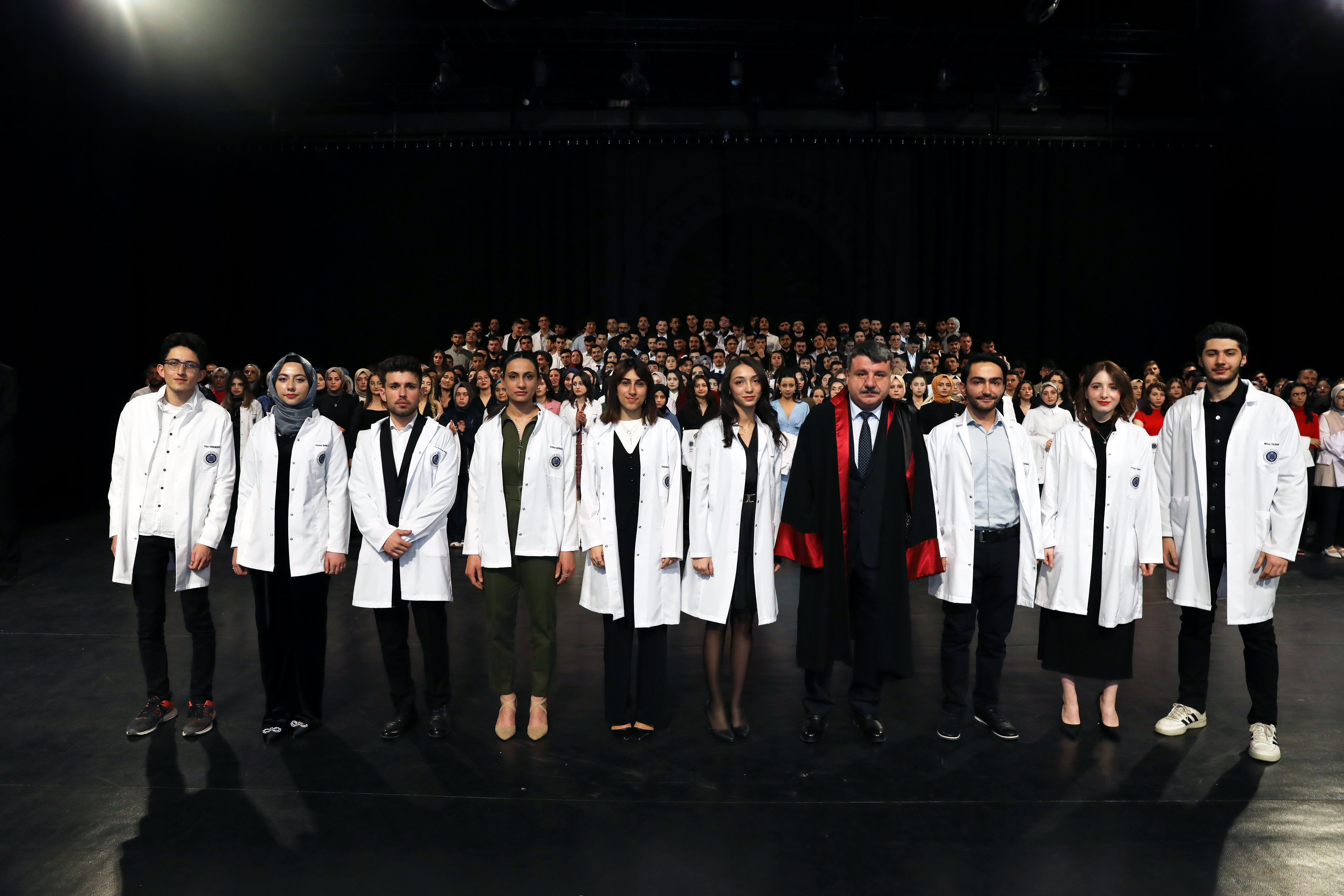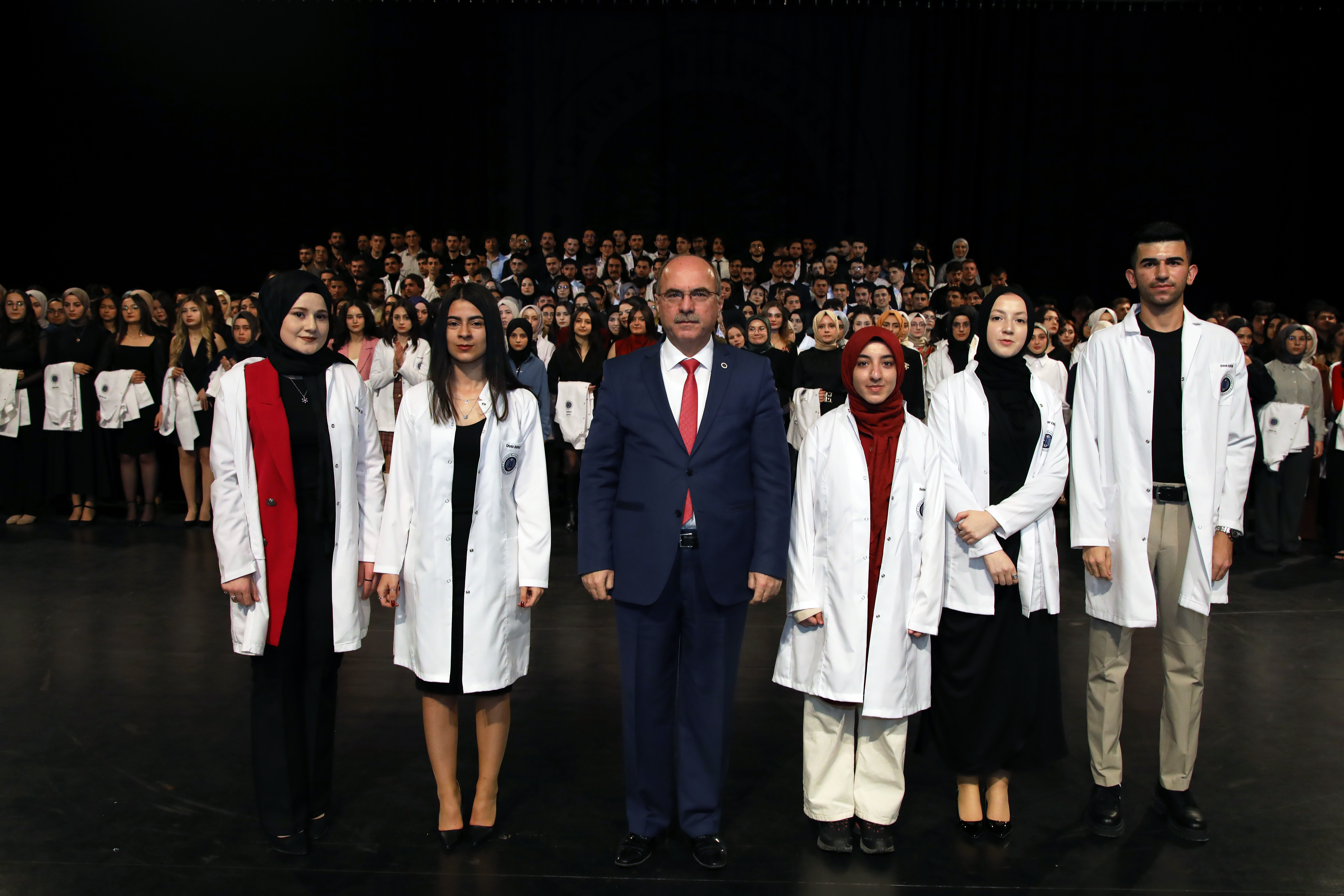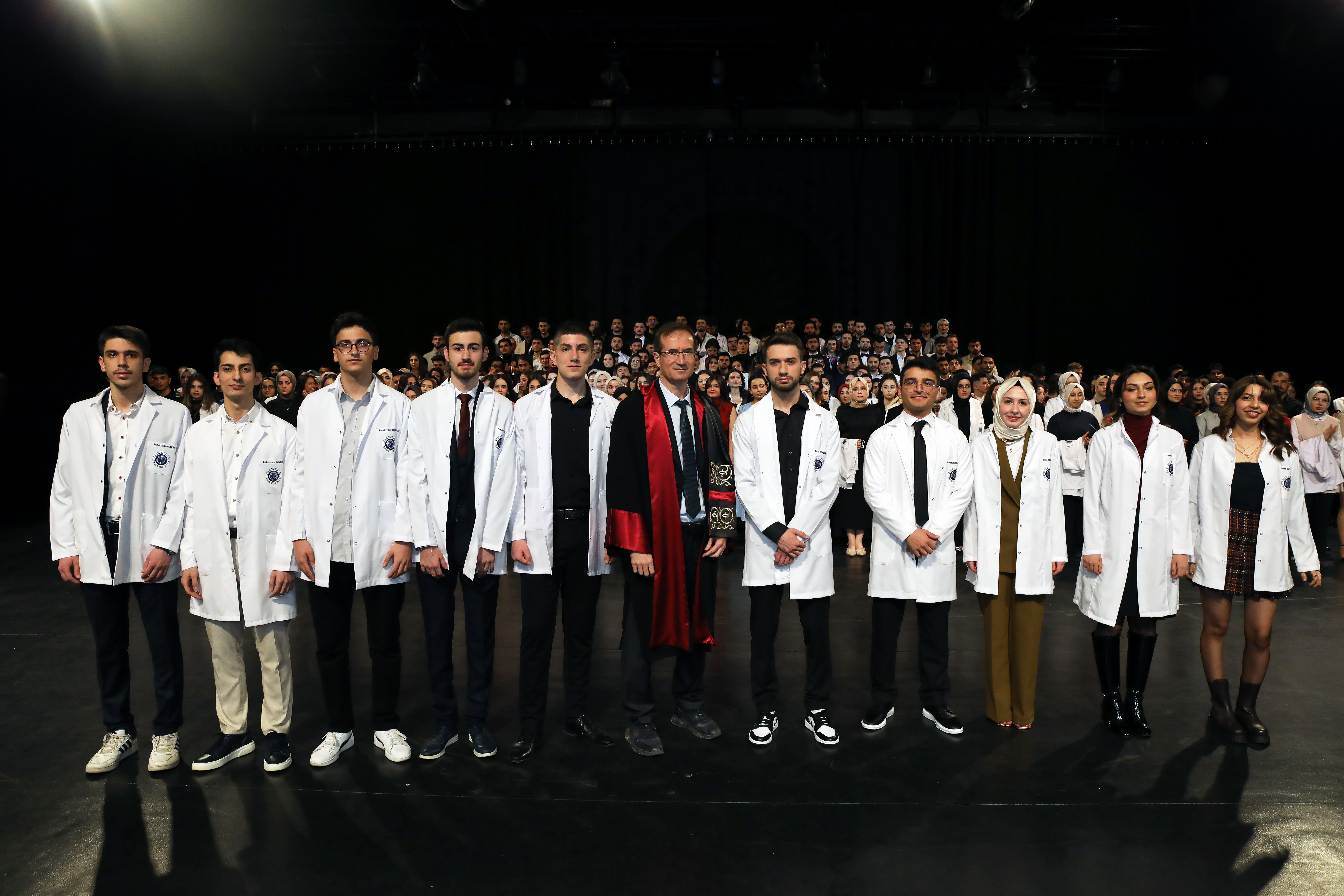 In attendance at the ceremony were 713 students from the Faculty of Medicine donning blazers, including the Rector Prof. Dr. Ömer Çomaklı. In attendance were academicians, students, and their families, as well as Erzurum Metropolitan Municipality Secretary General Zafer Aynal, Faculty of Medicine Dean Prof. Dr. Fatih Albayrak, Vice Rectors, and Deputy Deans.