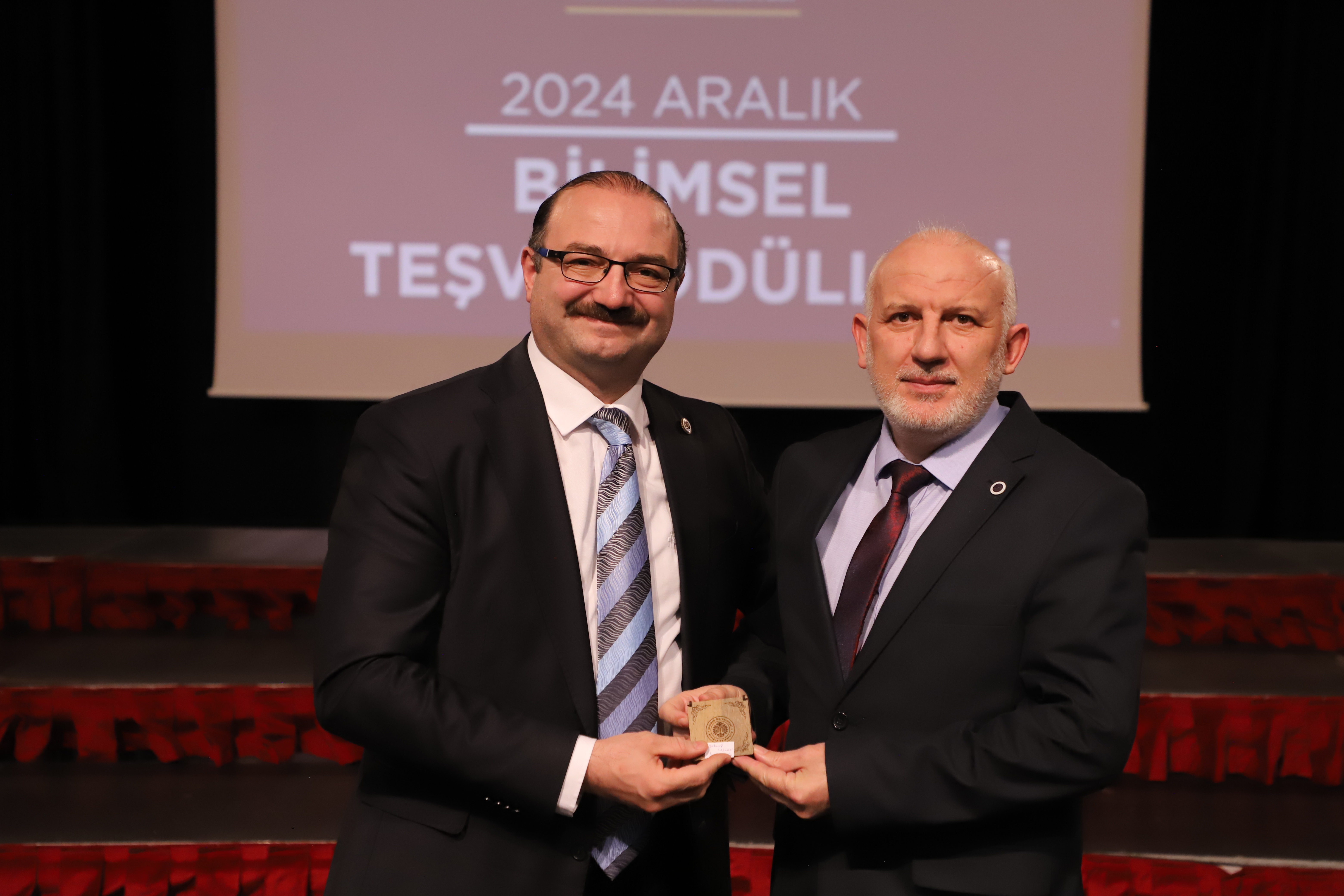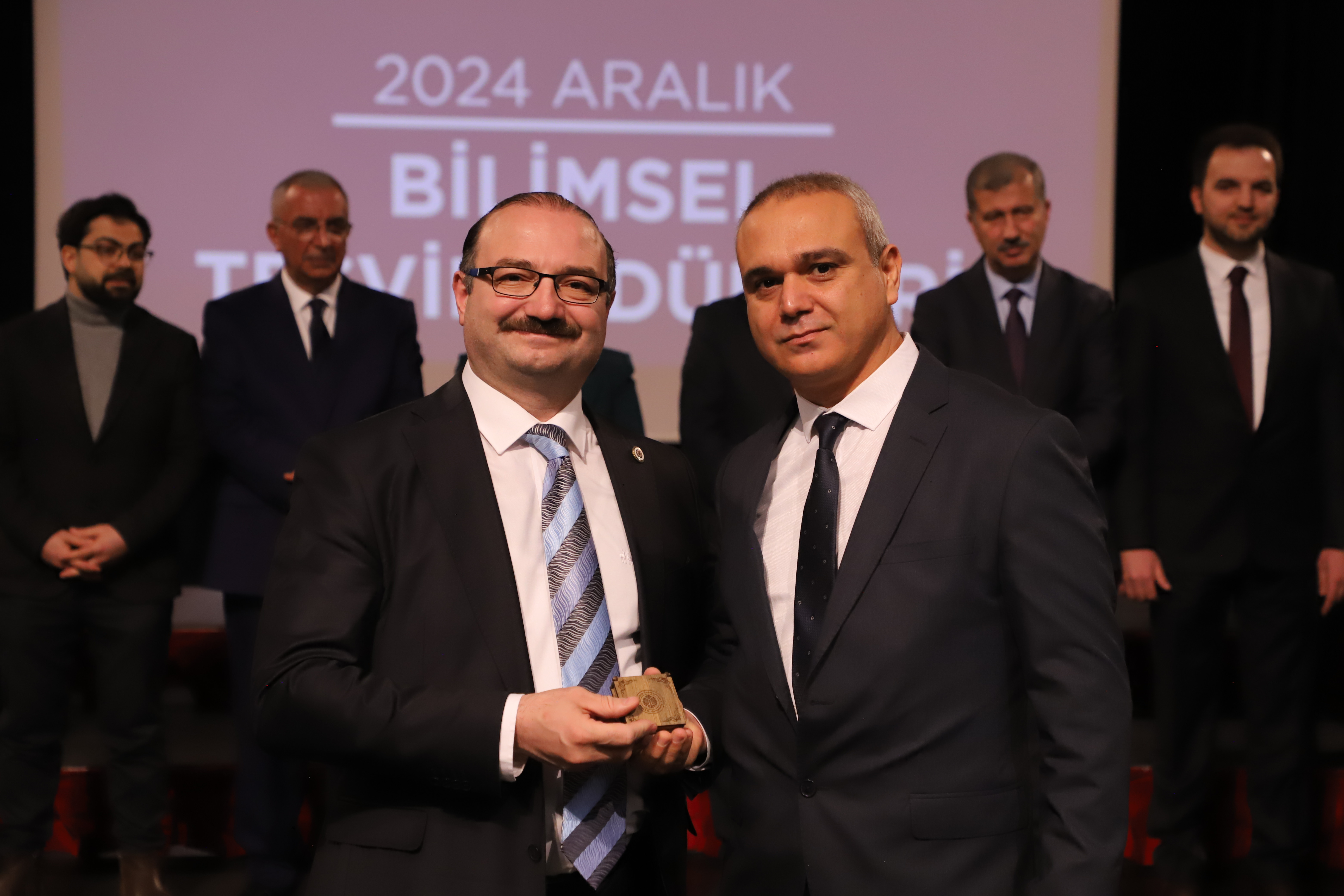 Atatürk University Rector Prof. Dr. Ahmet Hacımüftüoğlu presented the awards to the academicians who submitted applications for December's research activities in 2024.