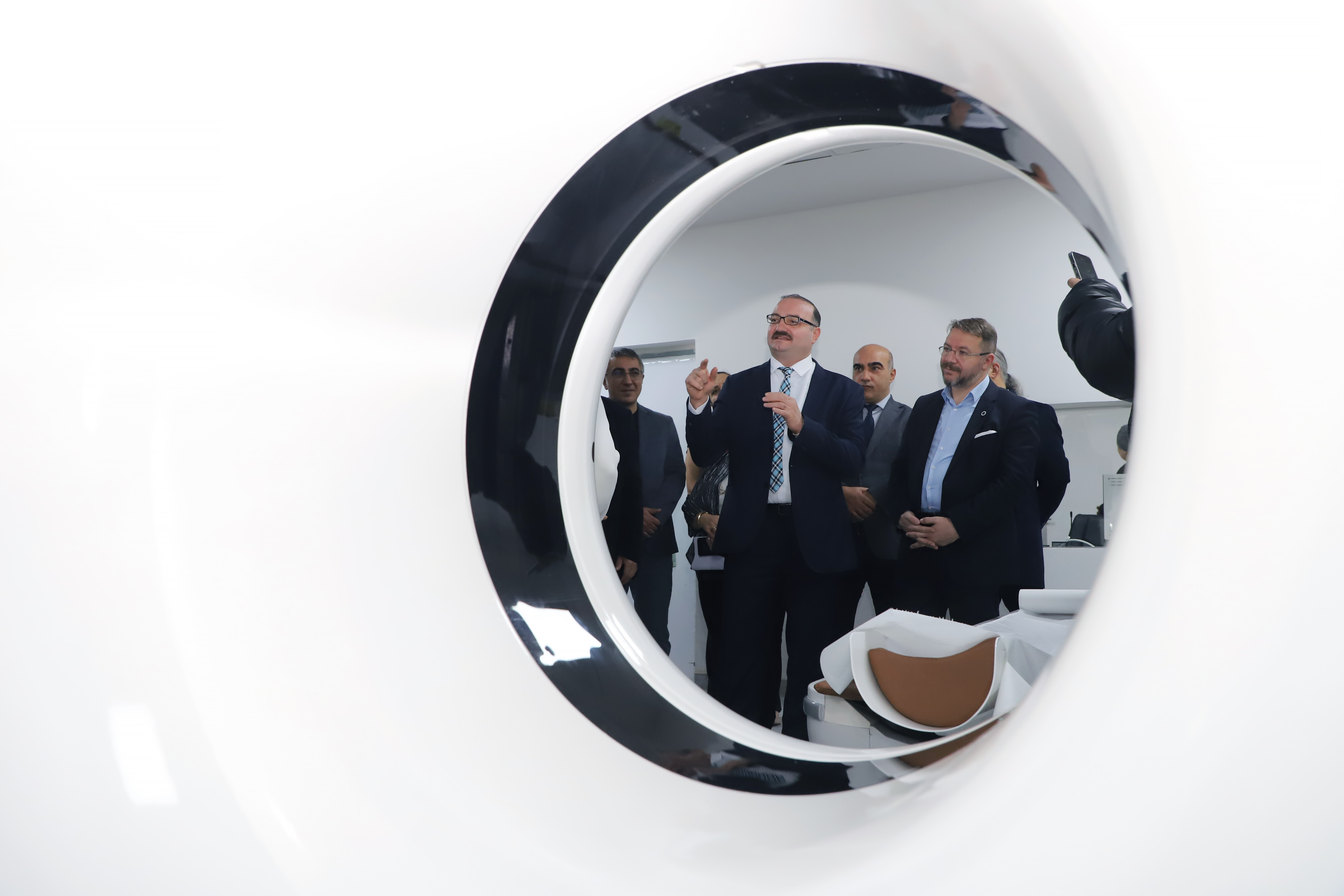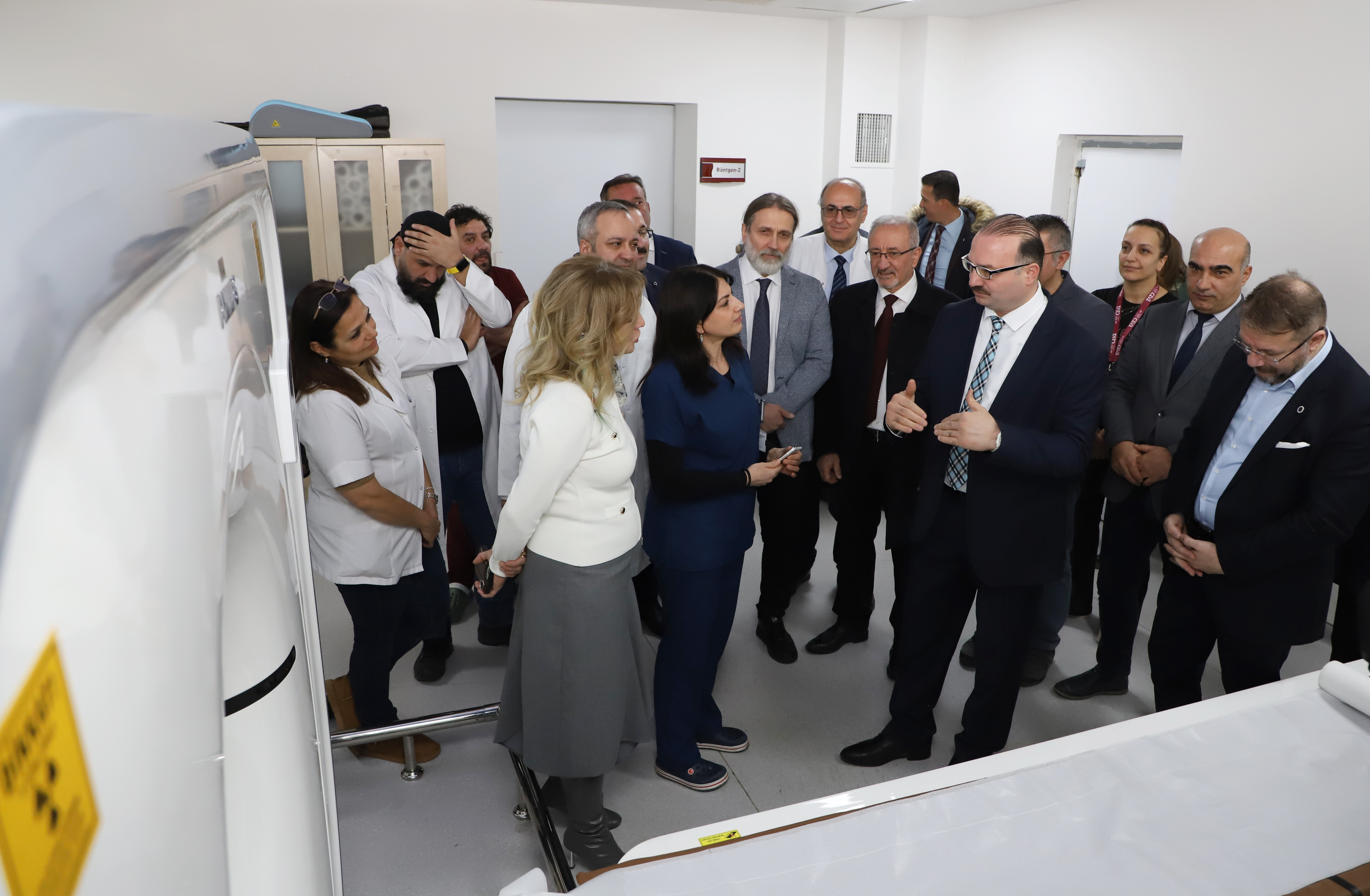 Vice Rector Prof. Dr. Hasan Türkez, Chief Physician of the Research Hospital Prof. Dr. Bilgehan Erkut, Secretary General Assoc. Prof. Dr. Ufuk Okkay, and Head of the Department of Emergency Medicine Prof. Dr. The hospital visit, which was attended by Zeynep Çakır, Head of Radiology Department Prof. Dr. Fatih Alper, BAP Coordinator Prof. Dr. Erol Akpınar, Hospital Director Fedli Dumlu, and department academics and employees, concluded with the exchange of information regarding the device's intended applications.