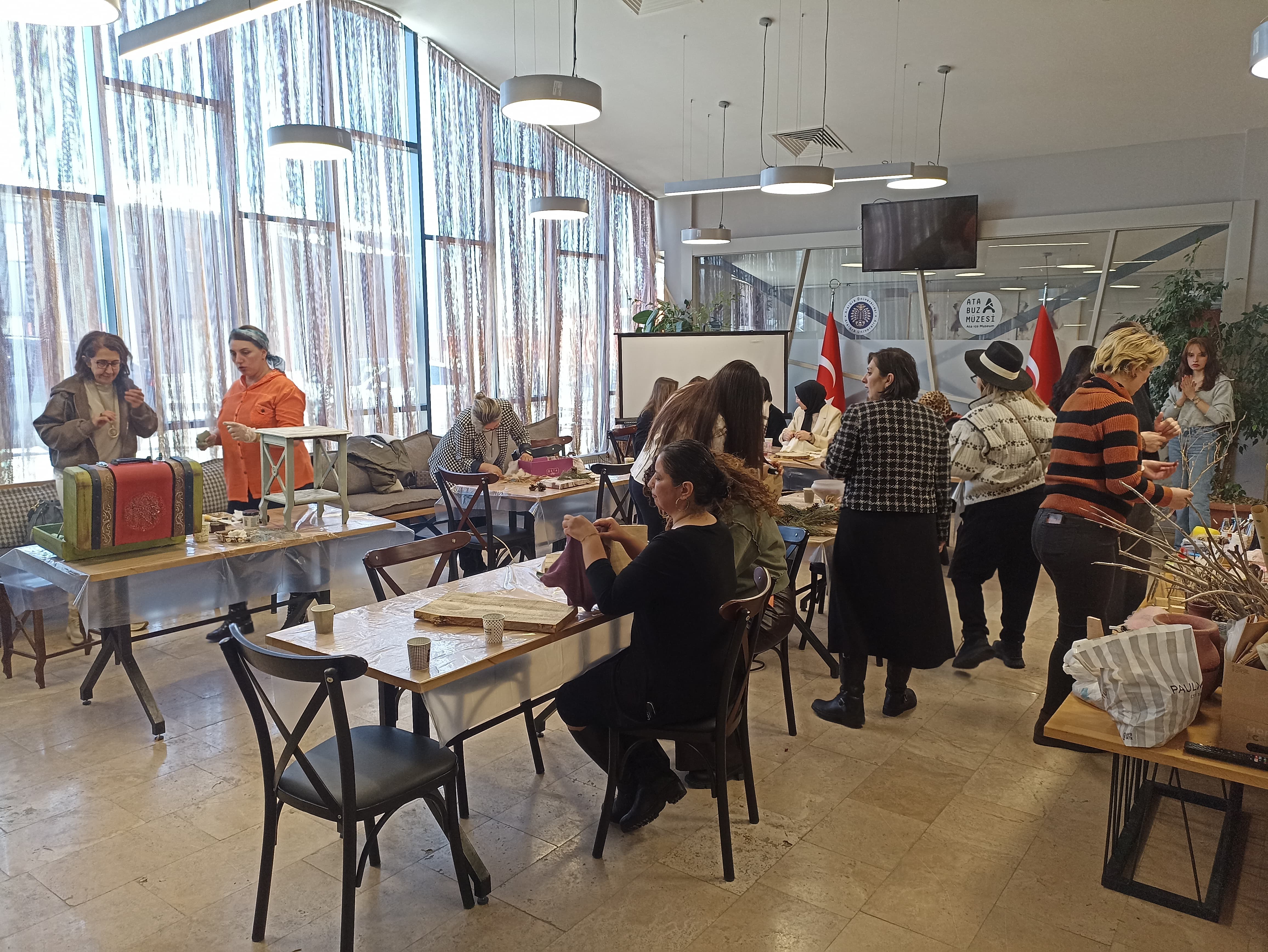 Art events also played a significant role in the festivities. The Faculty of Fine Arts hosted a workshop entitled "...And the Woman's Hand Touched" at the Ata Ice Museum. Environmental awareness was prominently featured in the workshop led by the Deputy Coordinator of Coordination at the Ata Ice Museum, Research Assist. Serap Bulat, where the theme of "sustainability" and women's perceptions of art and aesthetics were discussed as part of the event's scope that encouraged women to express their strong opinions and feelings. The occasion, which showcased the diligence, ingenuity, and aesthetic sensibility of women, garnered the interest of considerable crowds through its emphasis on the significance and meaning of the day.