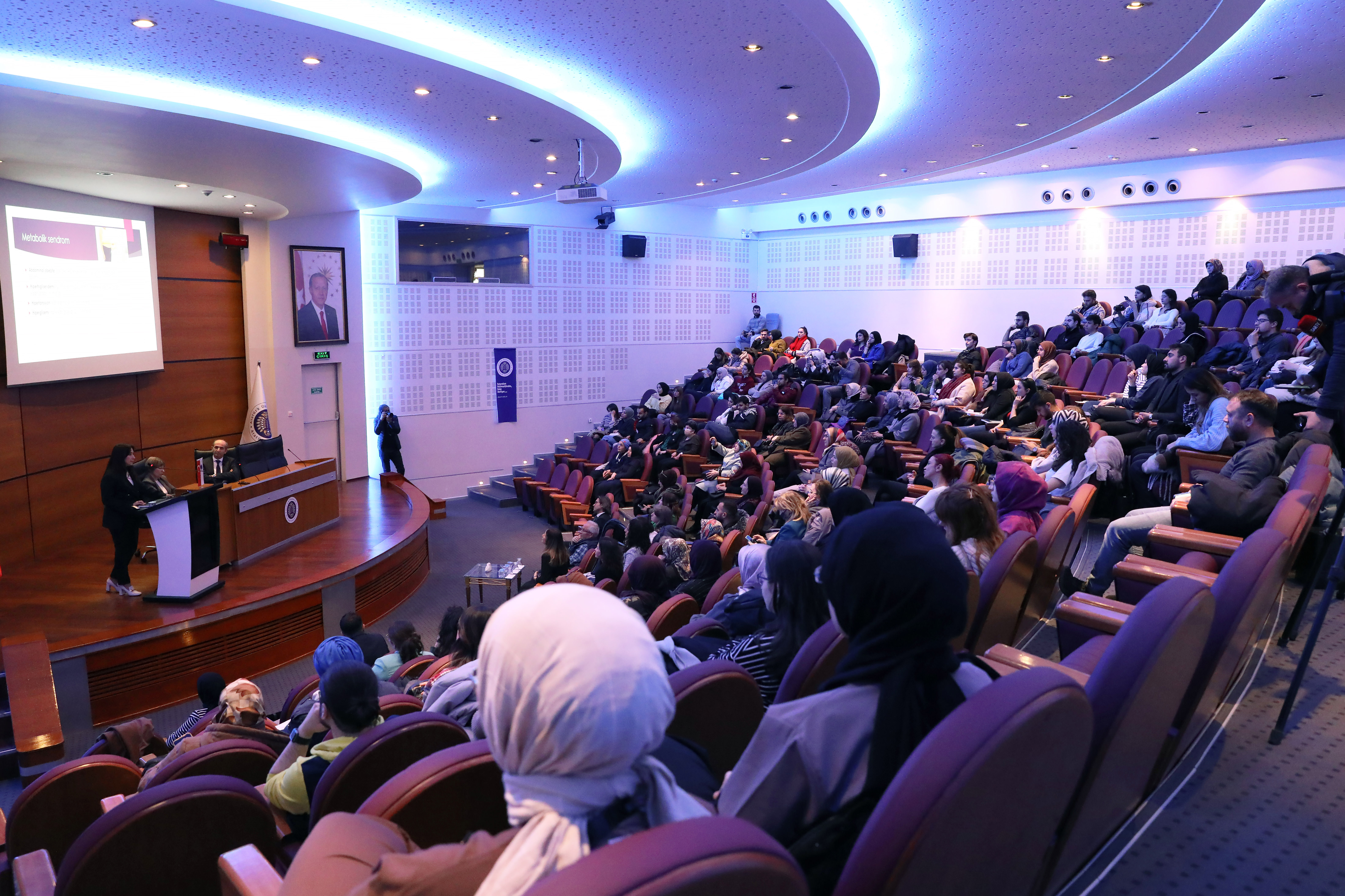 Prof. Dr. Şule Karakelleoğlu and Prof. Dr. Serdar Sevimli served as moderators of the program. Assoc. Prof. Arzu Bilen delivered a speech entitled "Diabetes, Obesity, and Heart in Women." Assist. Prof. Dr. Alperen Aksakal discussed "Smoking, Sleep Apnea, and Heart." Assoc. Prof. Dr. Gamze Nur Cimilli Şenocak examined "The Effects of Menopause on the Female Heart." Lastly, Assoc. Prof. Gamze Nur Cimilli Şenocak addressed "Hypertension in Women." Presentations were given by Yavuzer Koza and Serdar Sevimli, while Prof. Dr. Sevimli delivered a speech entitled "What Should I Do If I Develop Palpitations?"