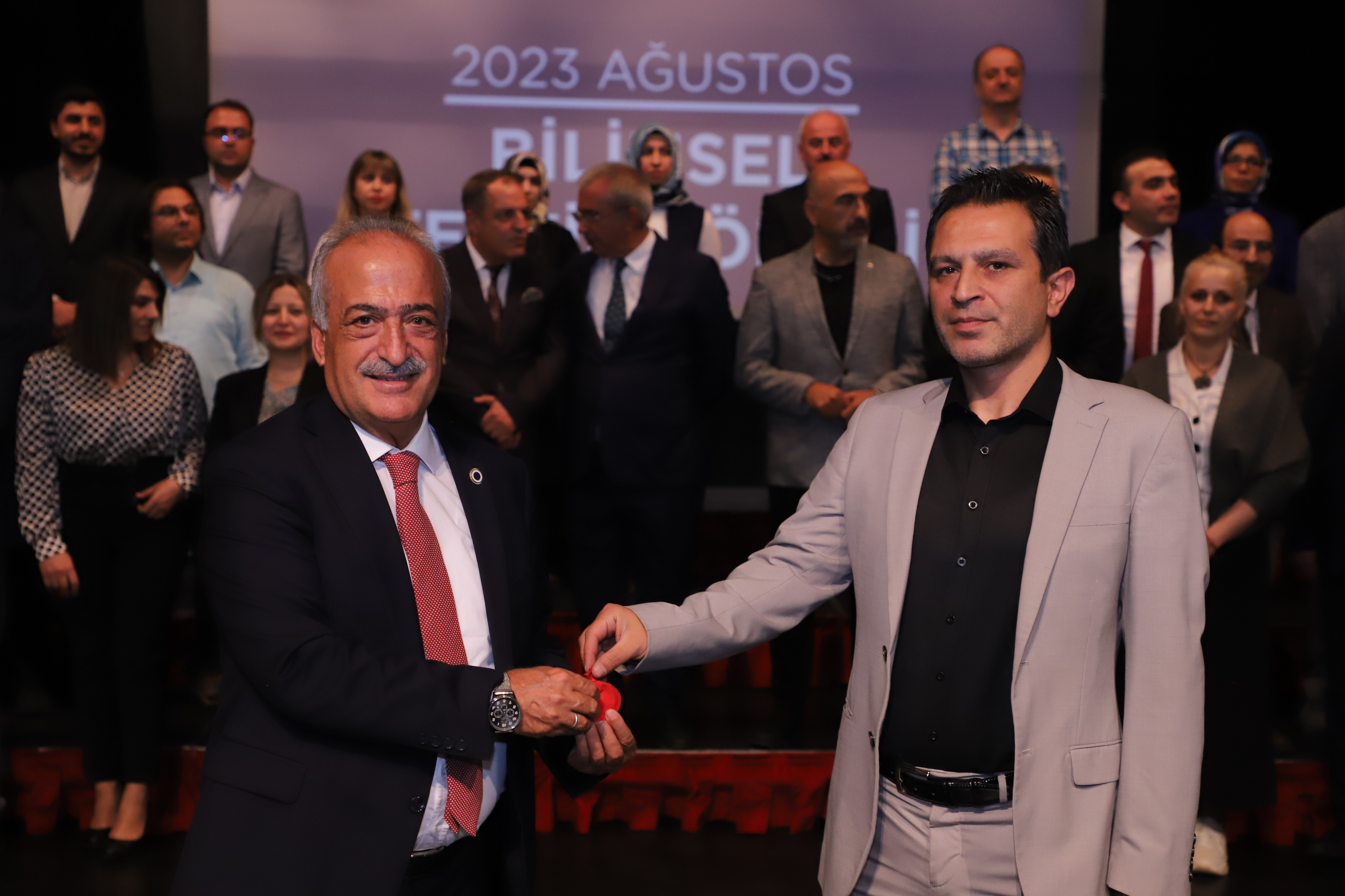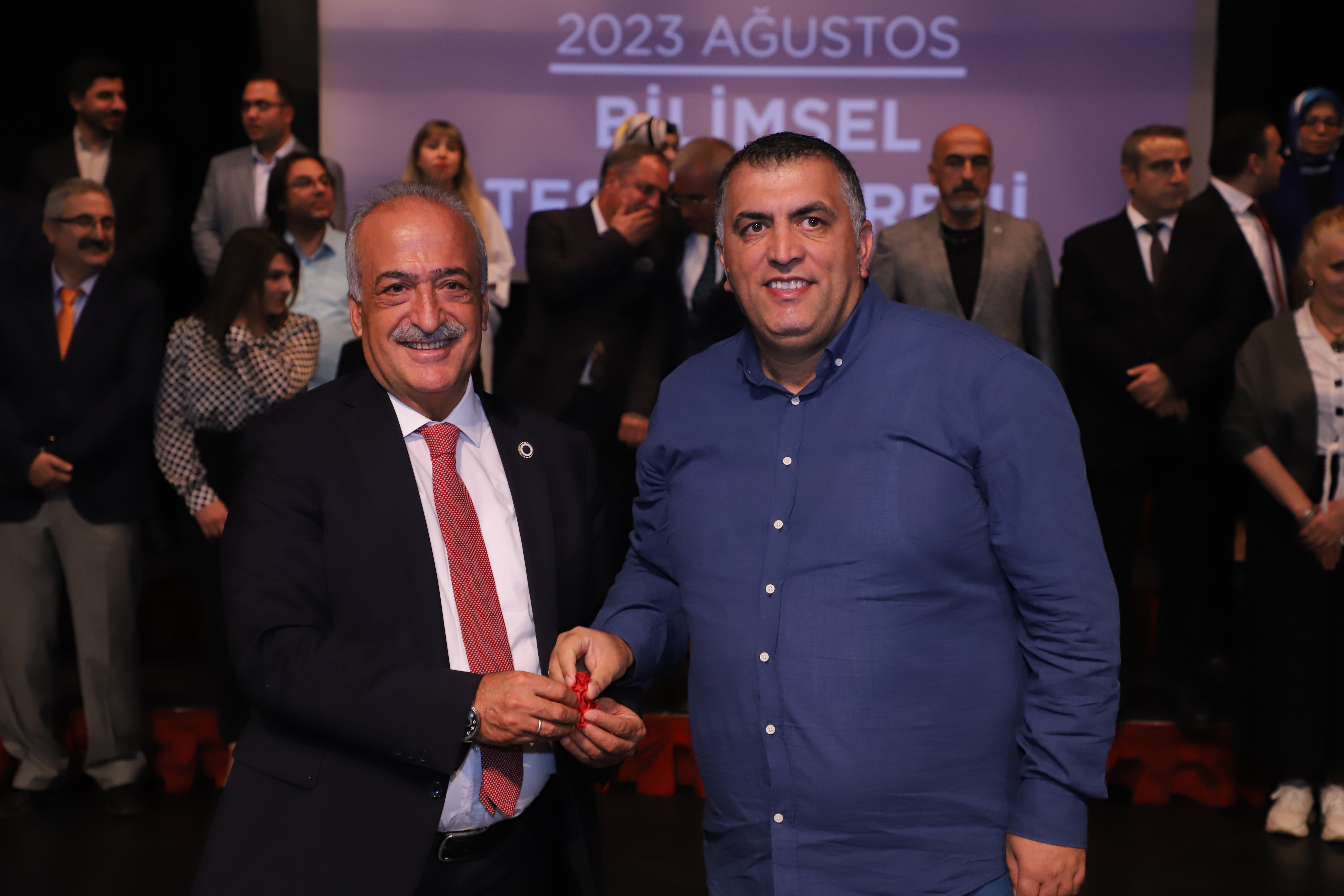 Rector Çomaklı, who presented the awards to the academicians who stand out with their publications, patents, projects, and companies at the 15 July National Will Hall, congratulated the academicians for their research-based studies and accomplishments and stated that Atatürk University should always be one step ahead with studies befitting its ancient history.