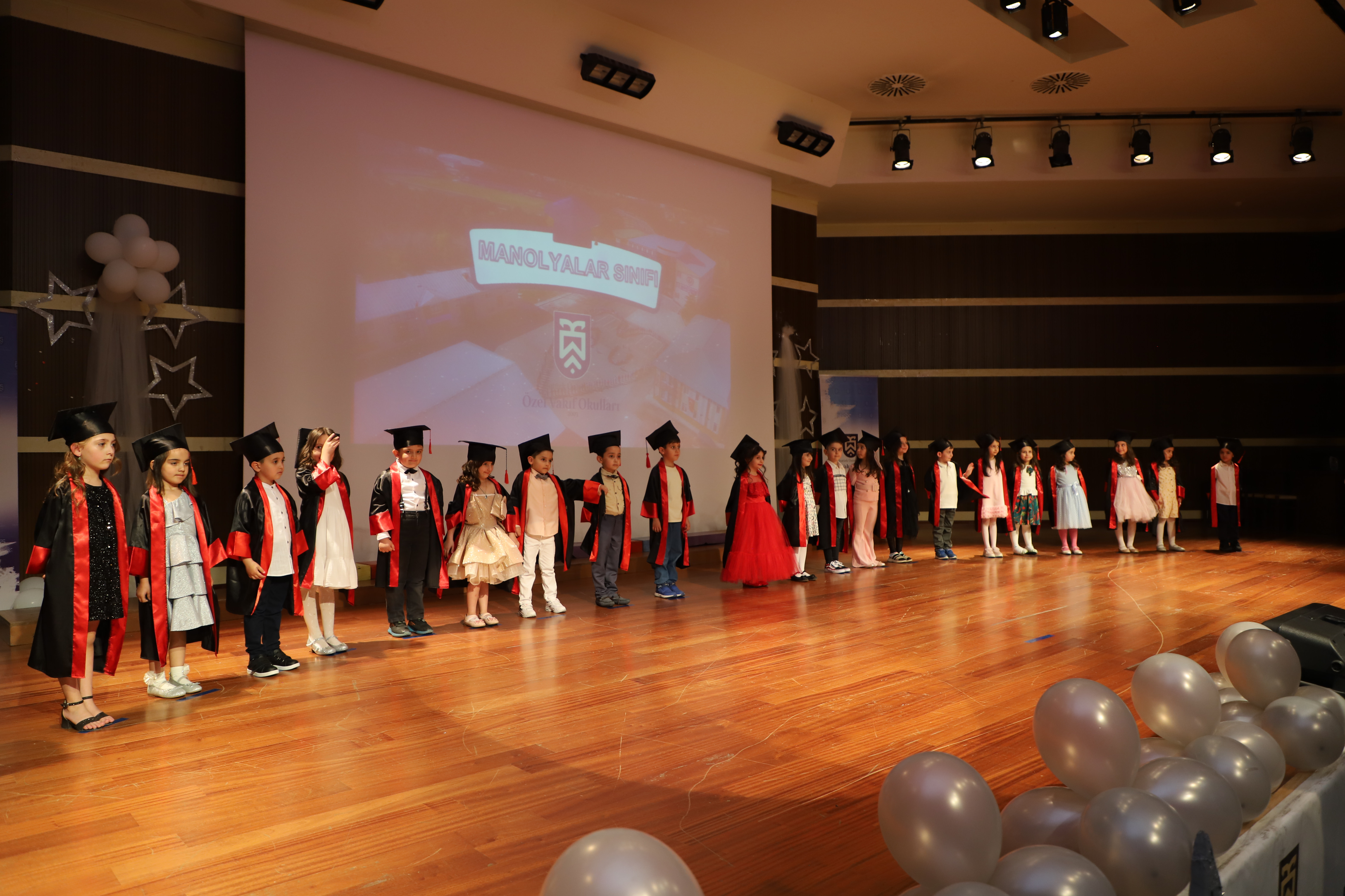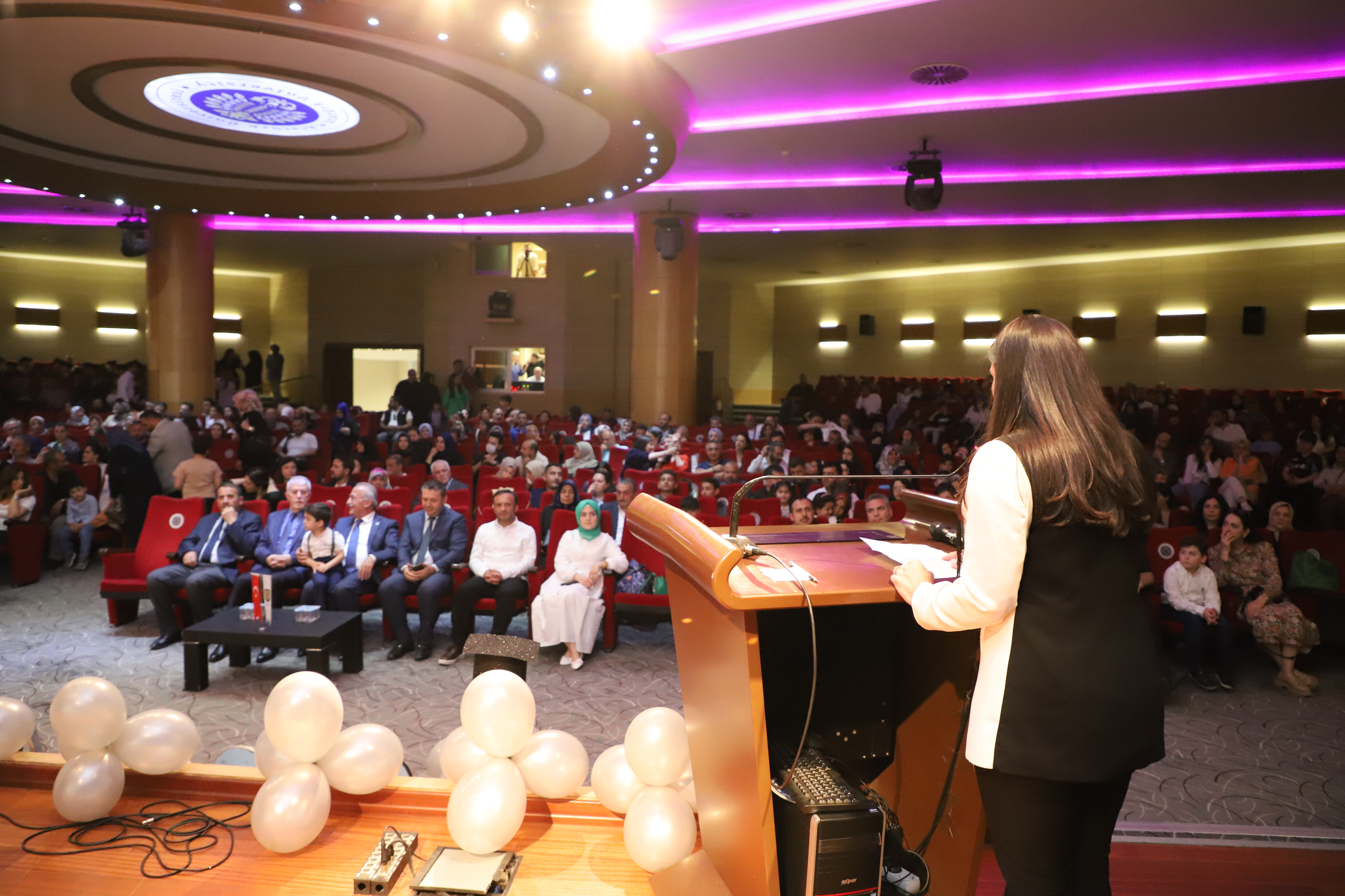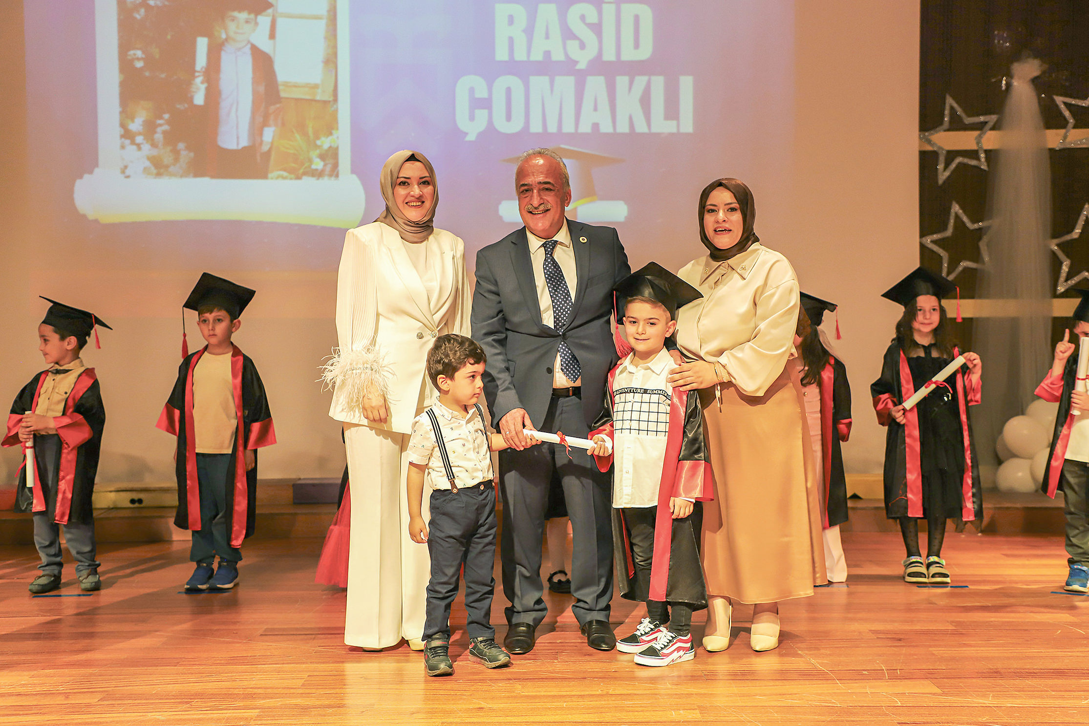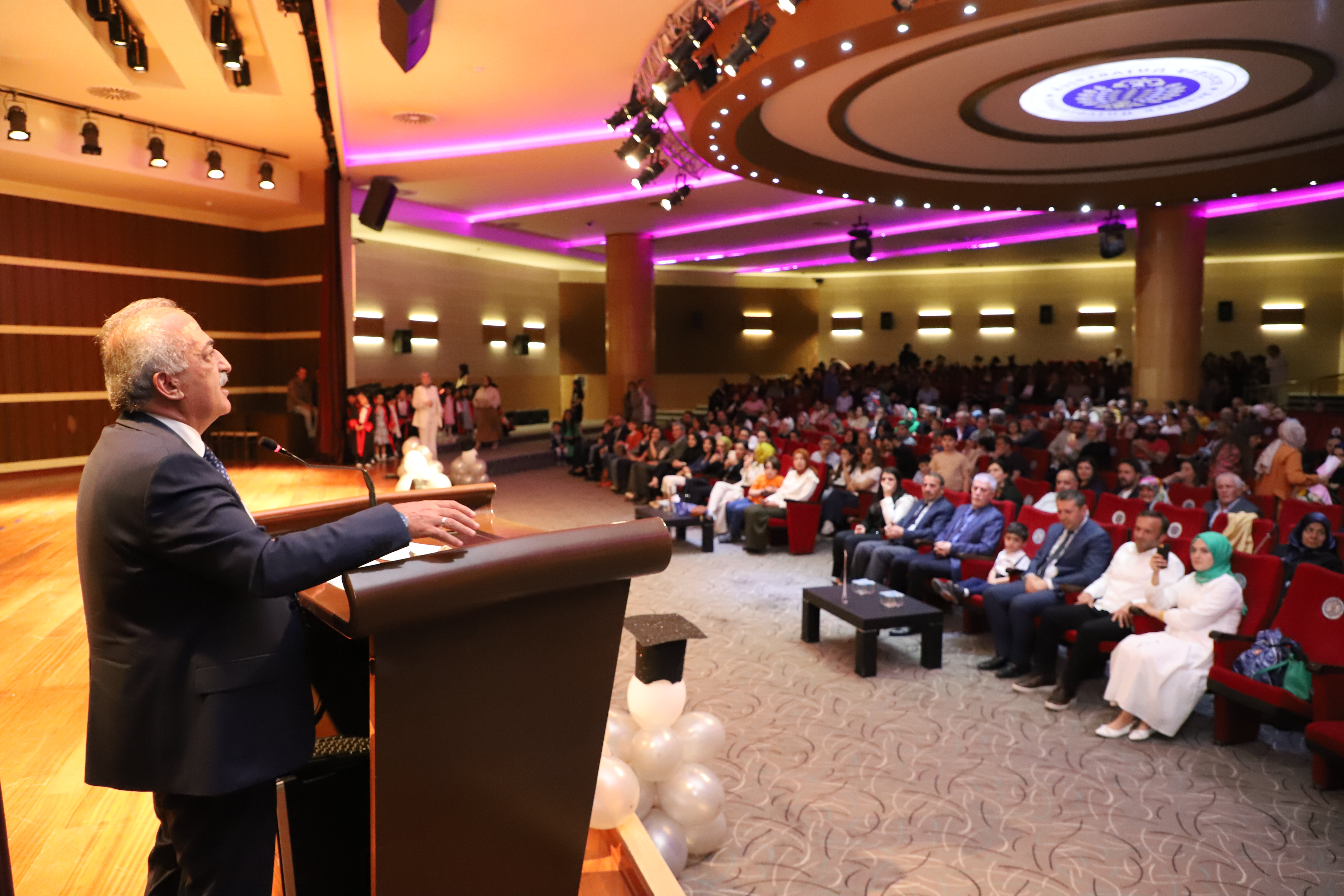 97 kindergarten students received their graduation diplomas from Rector Çomaklı during the event that took place at the Nenehatun Cultural Center, which was characterized by emotive moments. The program was attended by school principals, administrators, instructors, and parents, as well as the General Manager of Private Foundation Schools, Erdal Karagülle.