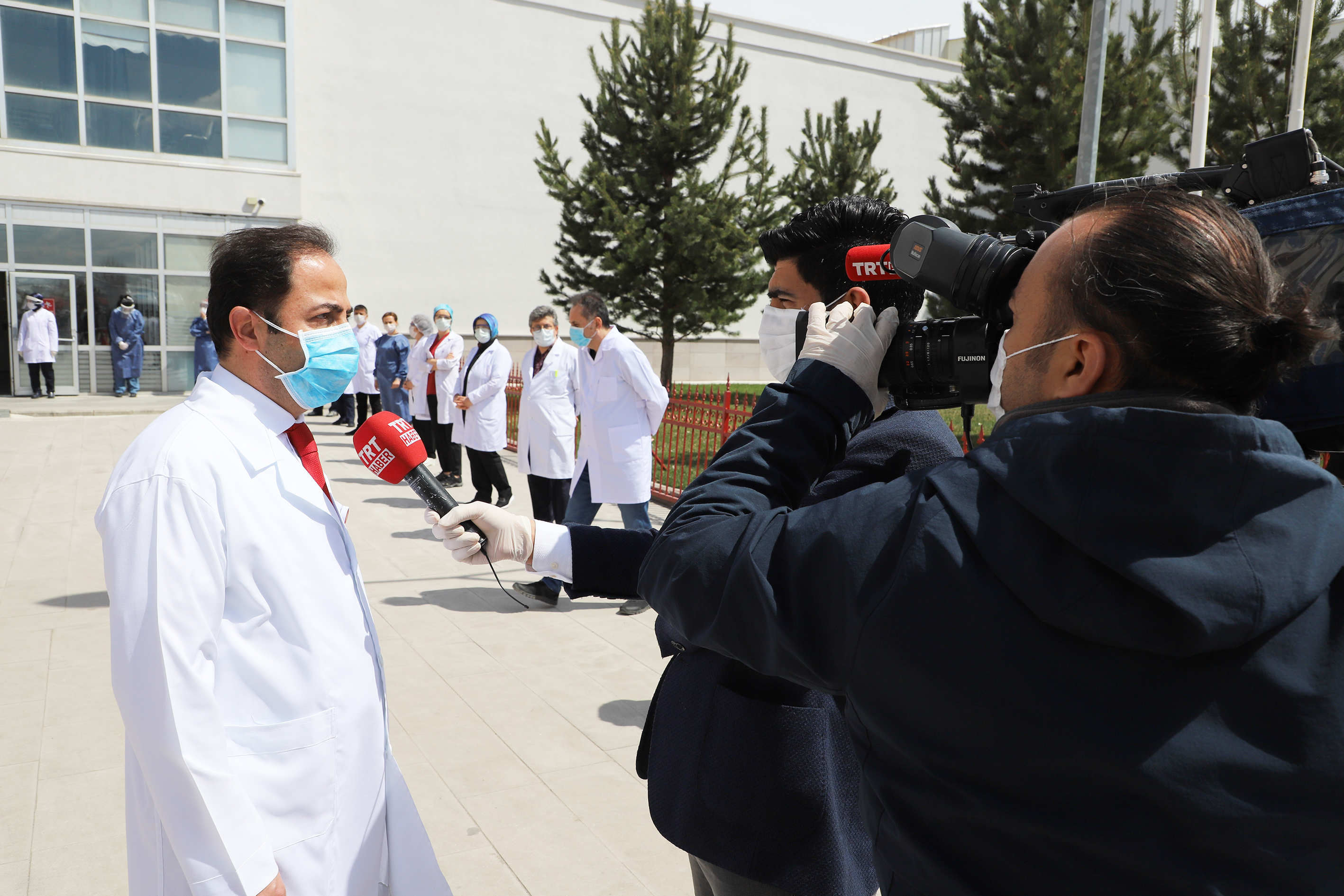 Prof. Dr. Fuat Gündoğdu, Atatürk University Research Hospital Chief Physician, gave information to the press members during the discharge of the people who defeated Kovid-19 from the hospital, and he stated that 26 more people were discharged and that the Research Hospital has made an important progess in this area.