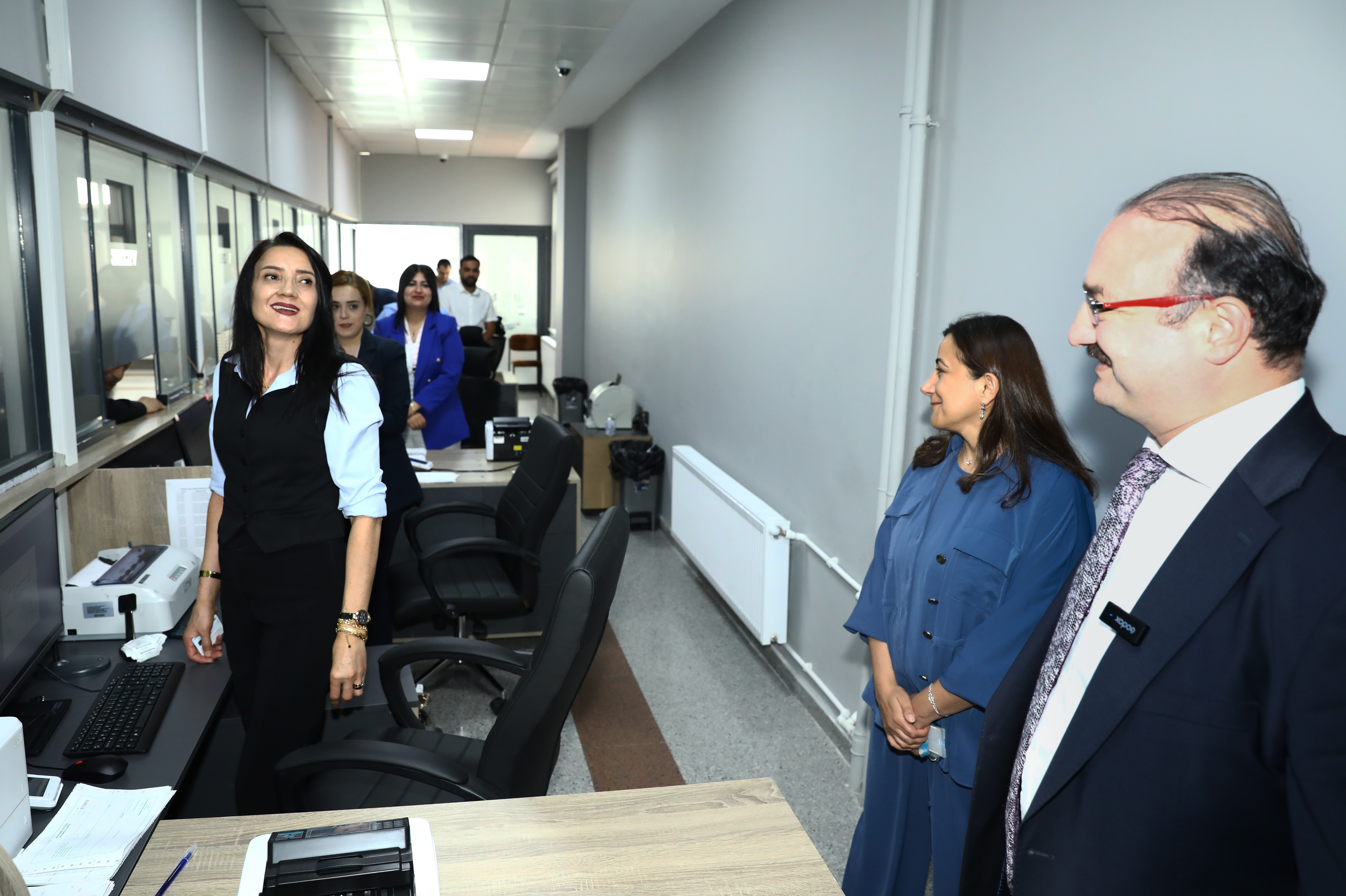 As part of the program, Rector Hacımüftüoğlu also visited the newly reorganised cashier area. The area, which was previously occupied by three cashiers and is situated on the first floor of the hospital, has been expanded to accommodate eight cashiers as a result of the work that was completed. This expansion has eliminated the waiting time that patients previously encountered during payment procedures. Rector Hacımüftüoğlu observed that the new arrangement not only expedites the process but also prevents the formation of masses in front of the intensive care unit and provides citizens with a space to meet their requirements through the newly organised canteen.