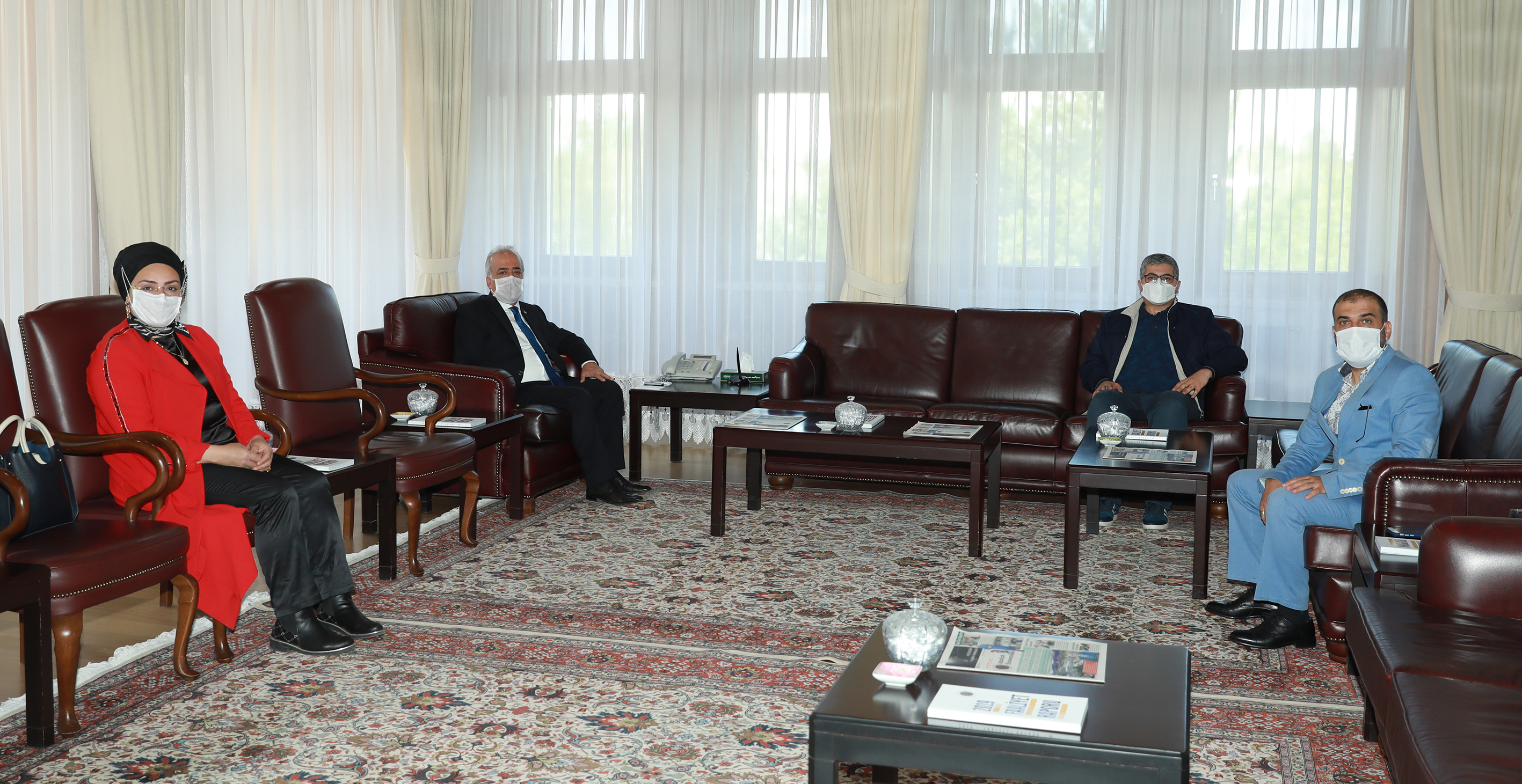 During the visit taking place at the rectorate building, Dr. Mehmet Koca was accompanied by Prof. Zekai Halıcı and Research Hospital Deputy Chief, Assoc. Prof. Mine Gürsaç Çelik.