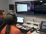 A new virtual studio was established at ATA-AÖF, where the course videos were shot with Green Box technology to make the lesson videos more understandable, interesting and instructive. The virtual studio is shot in front of a green screen. This green background, which is used for filming, is eliminated with the help of the computer in the studio regime and backgrounds of animation or videos are added instead. Thus, a three-dimensional environment is created. At the same time, graphics and animations belonging to the class materials can be also projected onto the image in real time.