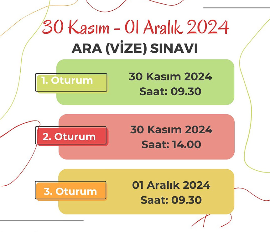 Atatürk University Open and Distance Education Faculty (ATA AÖF) students' midterm test preparations have been finished. Students are excitedly awaiting the tests, which will take place in many sessions on November 30, 2024 and December 1, 2024. The first session is scheduled for November 30 at 09:30 a.m.; the second session will take place on the same day at 14:00. The last session on December 1 will begin at 09:30 in the morning.