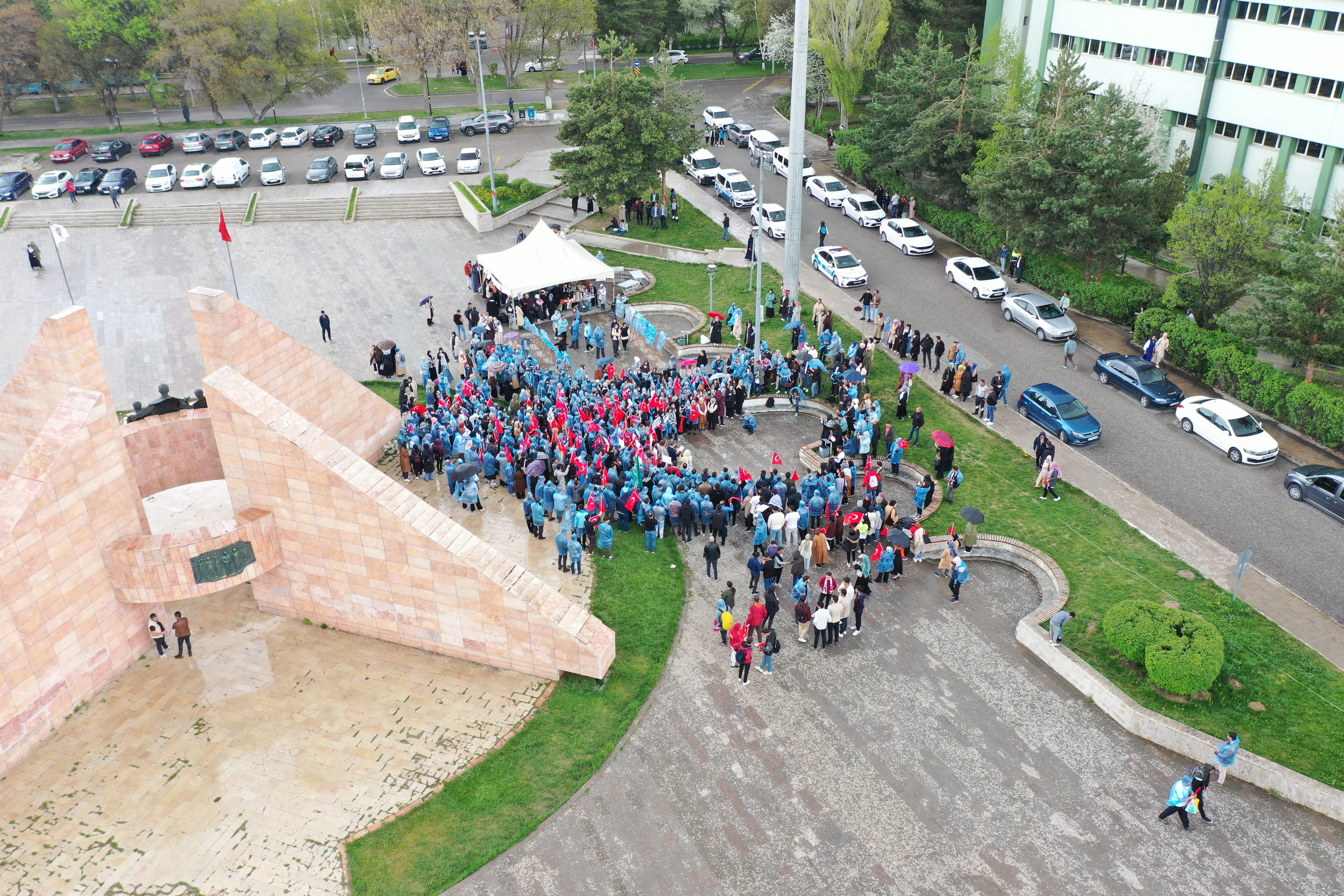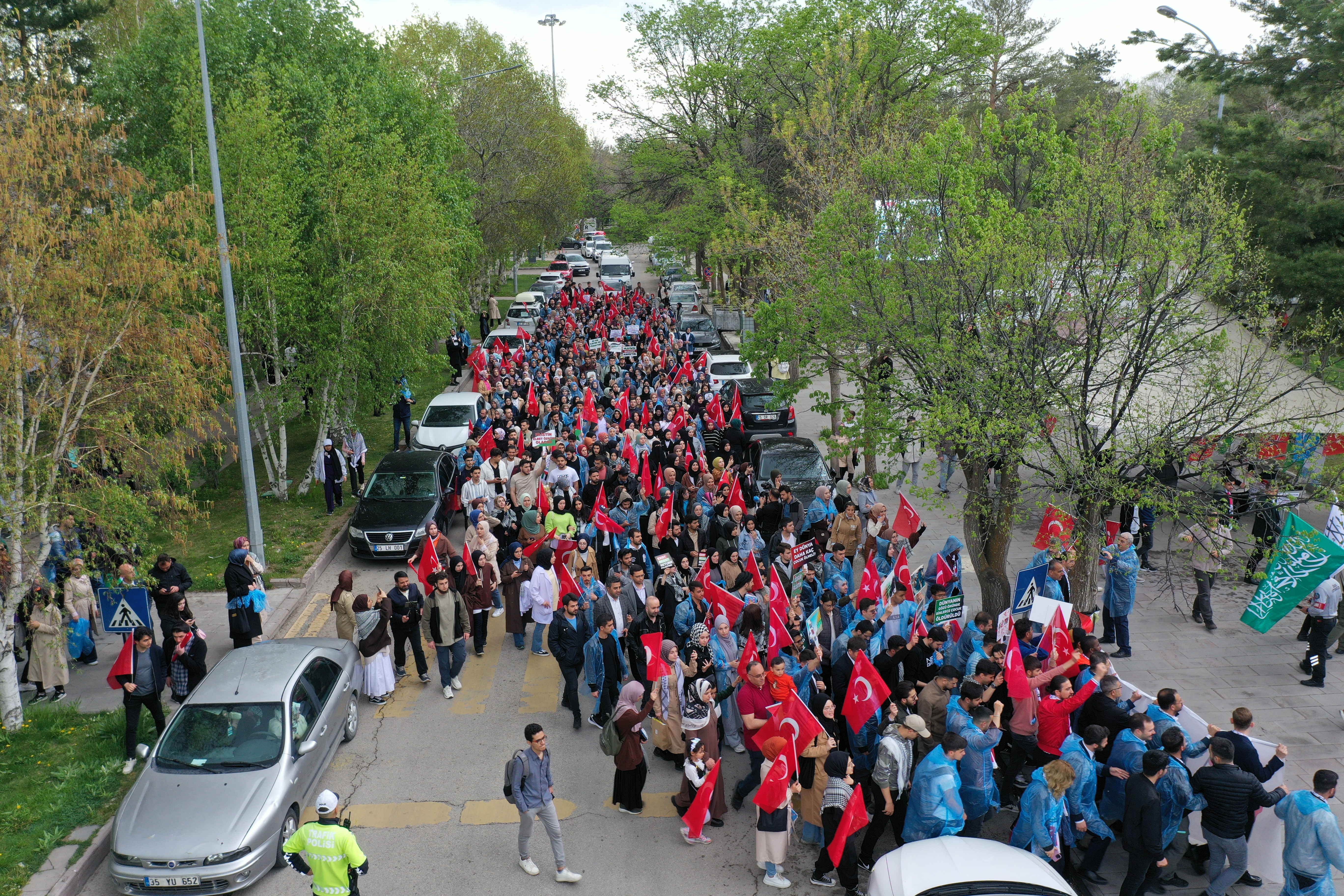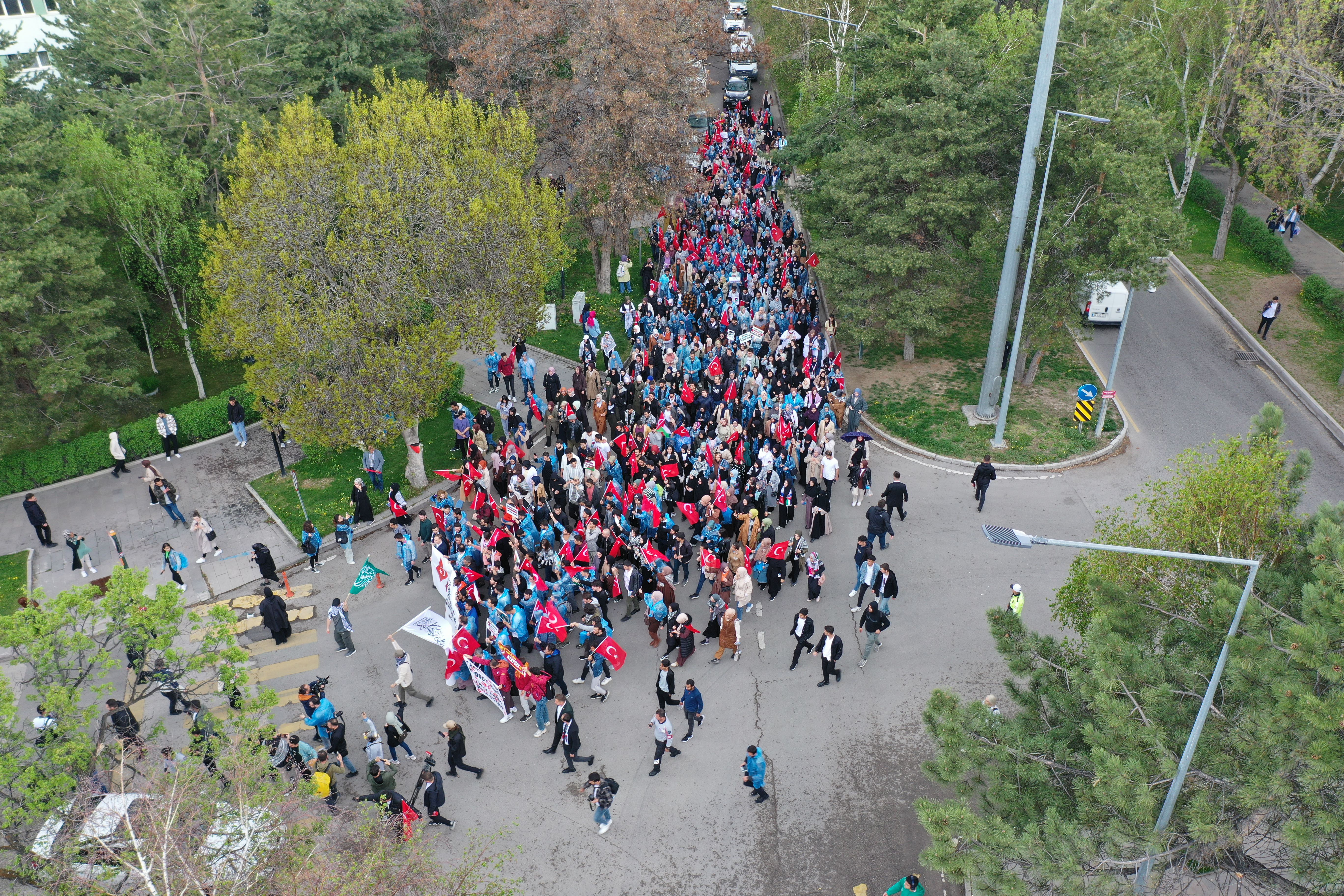 Following the statement, students marched from in front of the Atatürk Youth and Science Monument to the front of the central cafeteria, carrying banners and slogans.