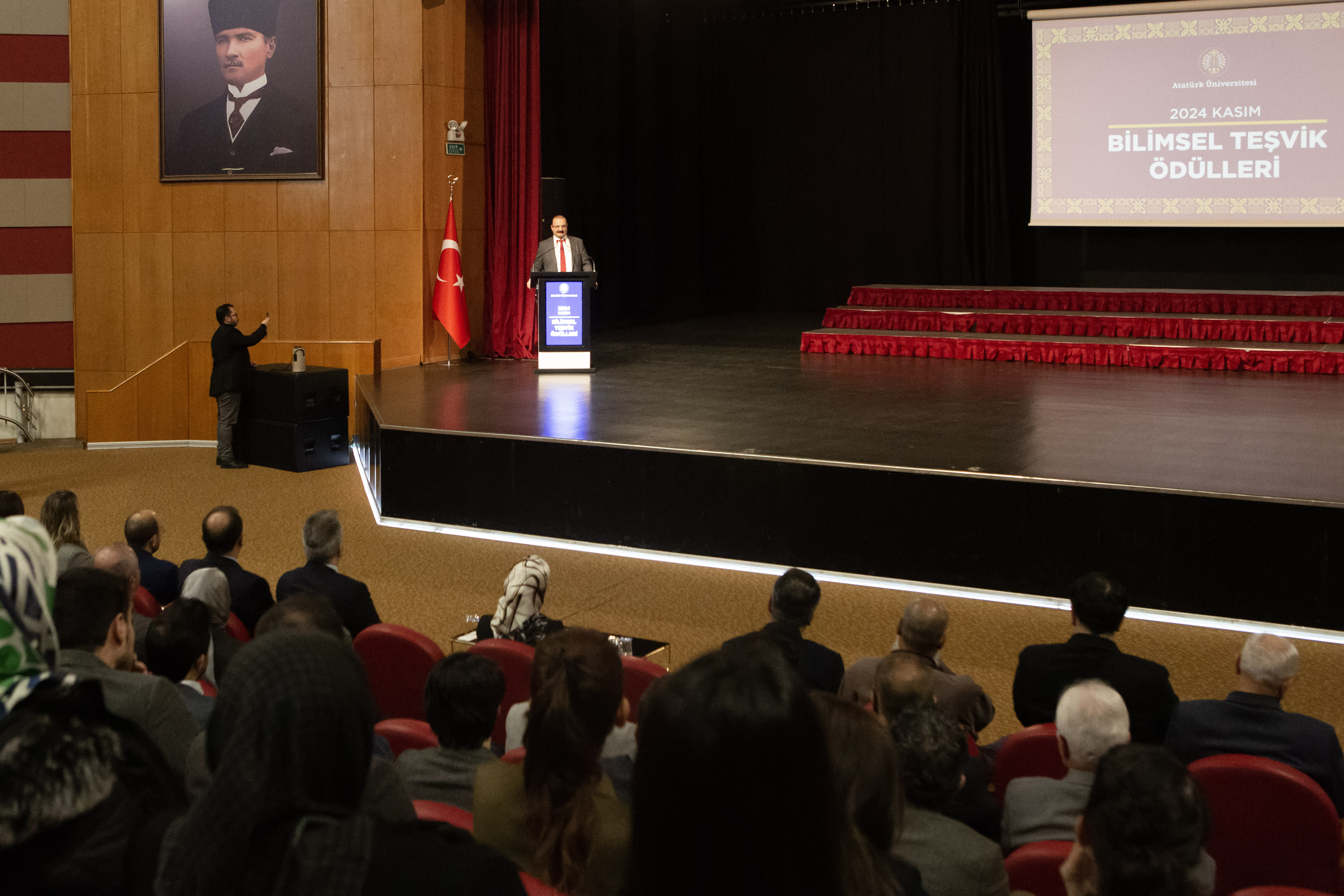 A new Scientific Incentive Ceremony was conducted by Atatürk University in order to promote academic success and support scientific studies. The university's "Rooted University, Strong Science, Bright Future" approach was once again demonstrated during the ceremony, during which faculty members who submitted applications in November were granted their awards.