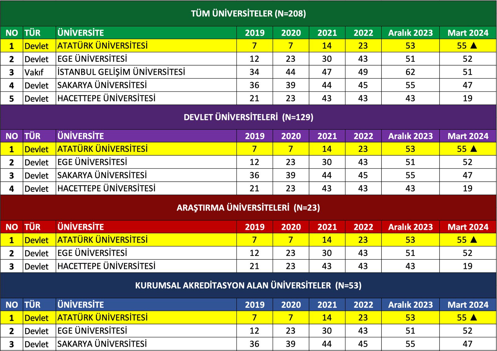 Ataturk University, which has granted accreditation to a combined 55 programs across 129 state universities, 23 research universities, and 53 universities that have obtained corporate accreditation, has established itself as the preeminent institution in Turkey, ranking first among 208 universities.